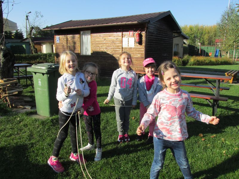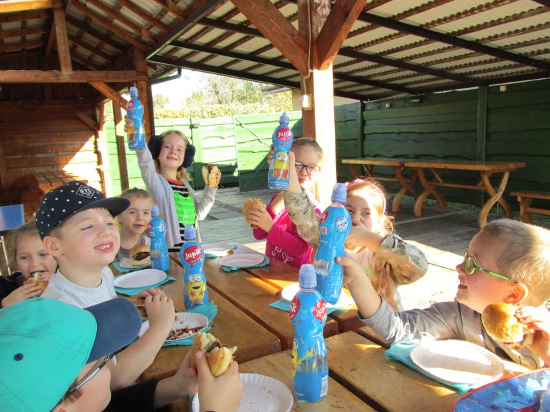 W dniu 17.10.2017 r. odbył się jesienny piknik na campingu " Pod Jabłoniami", w którym wzięły udział dzieci z gr. V i VI, najstarsze przedszkolaki. Były gry i zabawy terenowe, dużo śmiechu, pyszne grillowane kiełbaski, było super, integracja na sto dwa, a może nawet więcej... Szkoda, że to już dla niektórych dzieci ostatni rok w przedszkolu.
