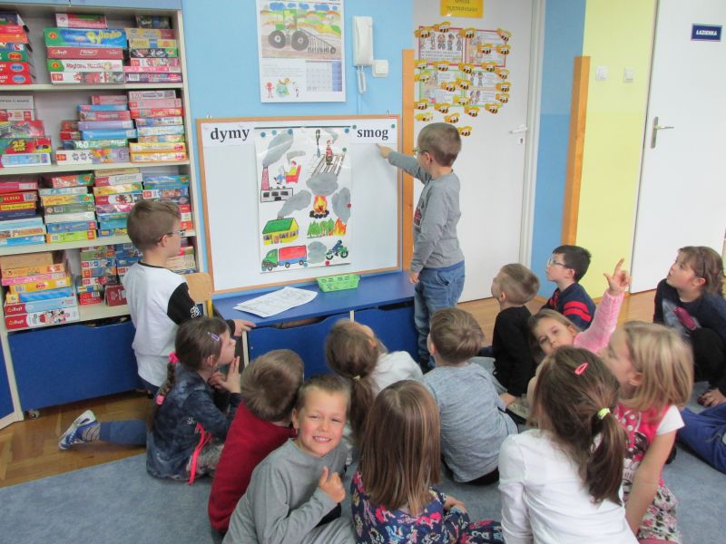 Dzieci z naszego przedszkola wzięły udział w akcji edukacyjnej dotyczącej problemu zanieczyszczenia powietrza.Przedszkolaki dowiedziały się ,że zanieczyszczone powietrze tzw.SMOG,stanowi zagrożenie dla wszystkich ludzi. Należy zatem dbać o czystość powietrza w naszym mieście, aby groźne substancje nie dostawały się do naszych organizmów.STOP-SMOG!