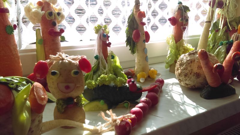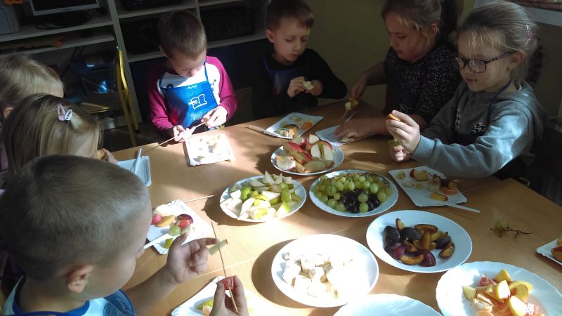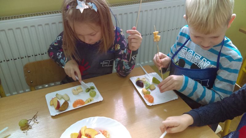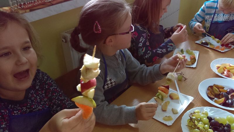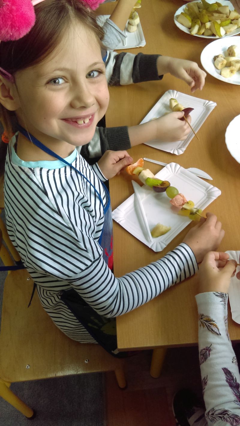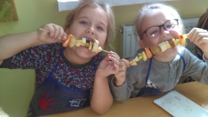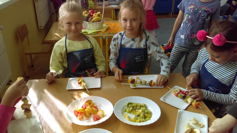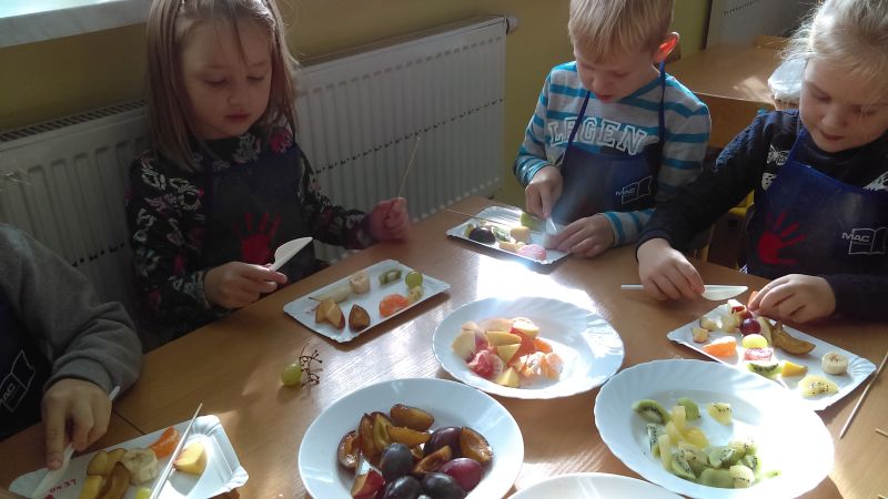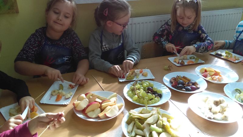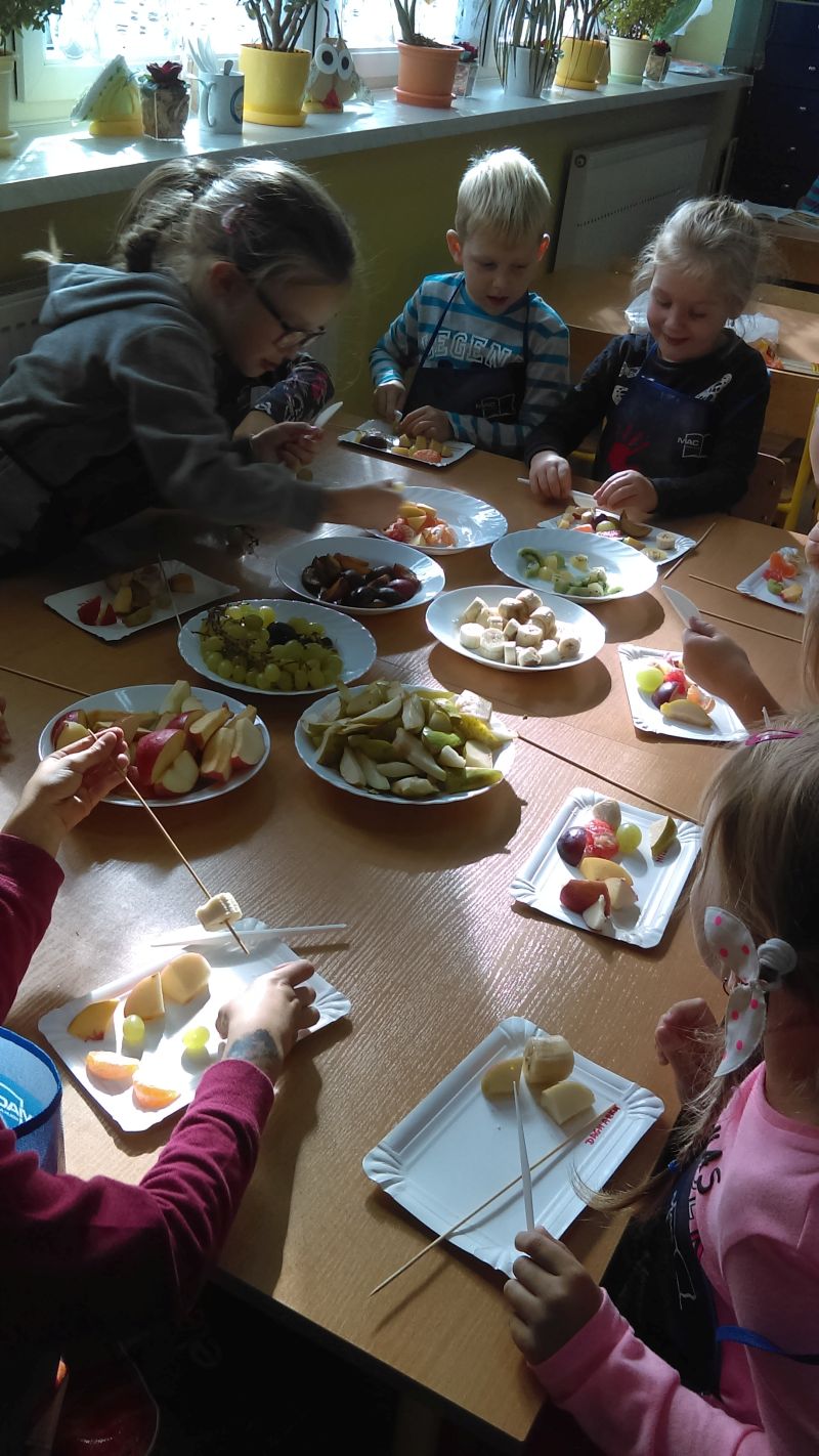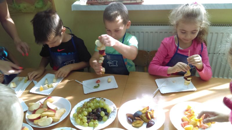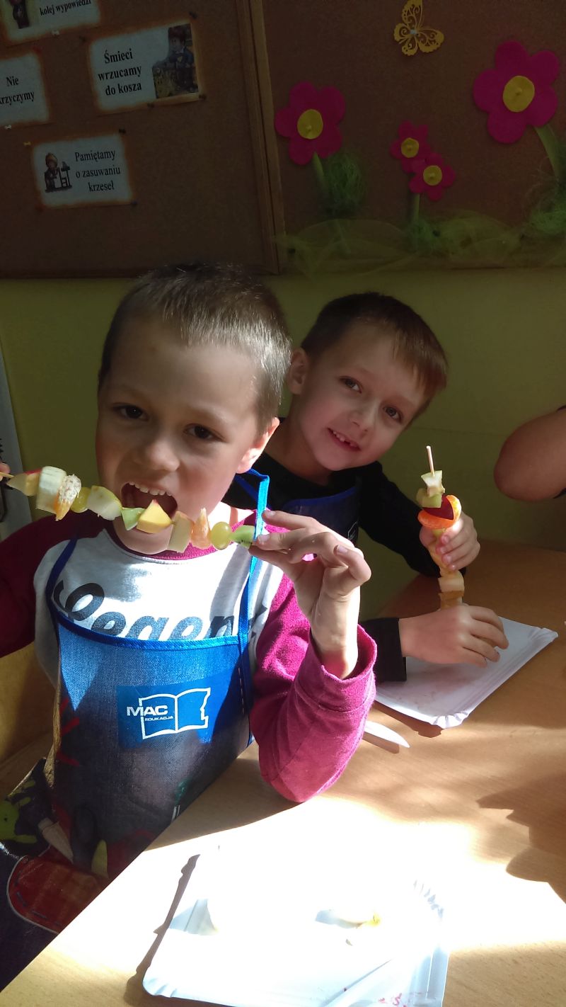 Zdrowo się odżywiamy, wszystkie owoce i warzywa znamy i bardzo chętnie w naszym przedszkolu je zjadamy.