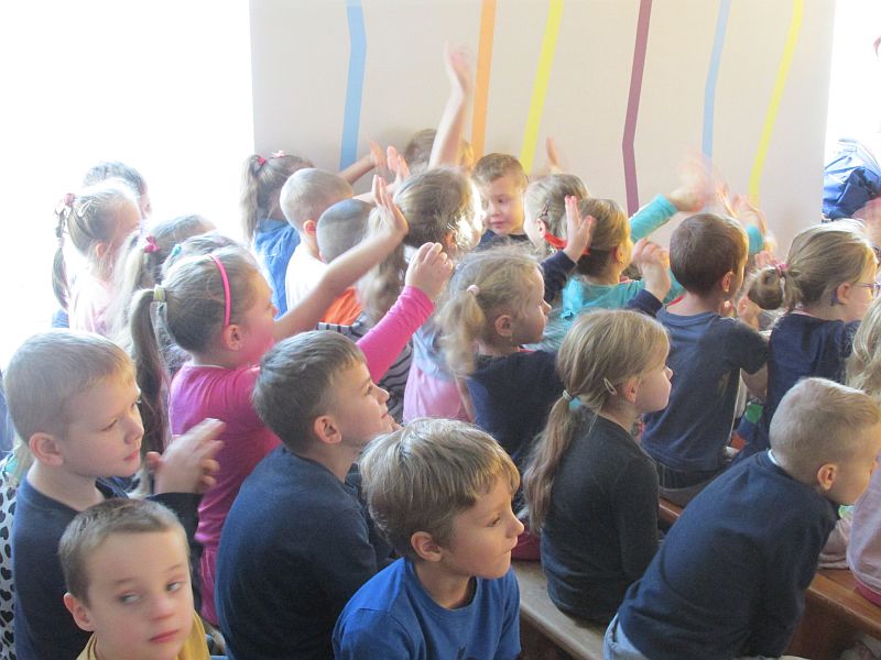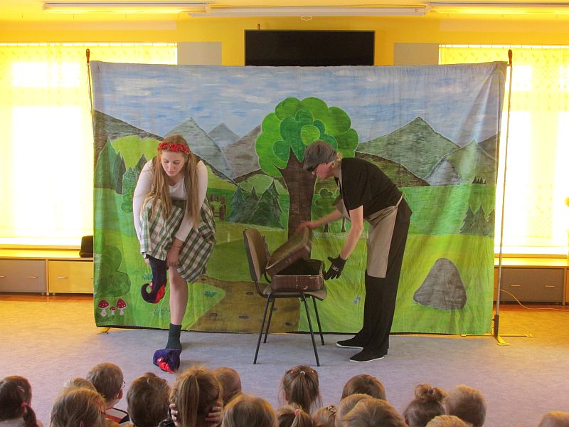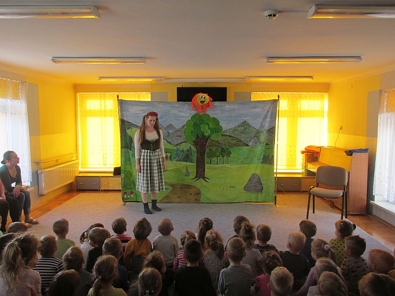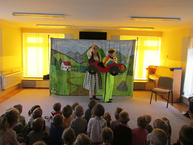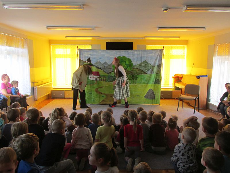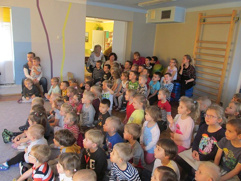 27 listopada 2019r nasze przedszkole odwiedzili aktorzy teatru krakowskiego "Skrzat" .Dzieci obejrzały przedstawienie pt. „Jak Marysia mała słonko złapać chciała".W bajkowej scenerii przedszkolaki wędrowały razem z Marysią w poszukiwaniu słonka, napotykając przy tym na różne przygody. Okazało się, że bardzo pomocne były buty podarowane Marysi przez szewca oraz pomoc pana lotnika.