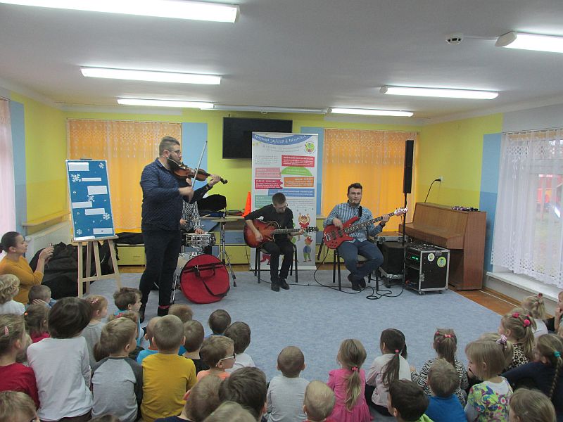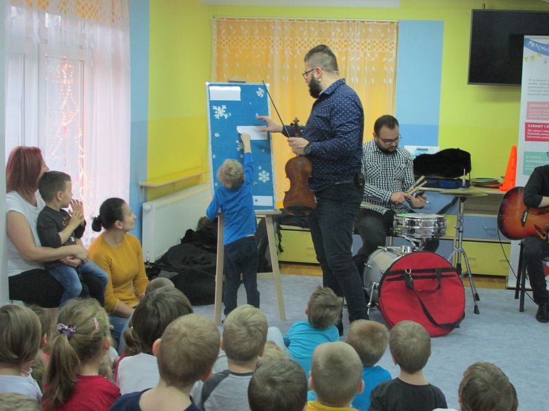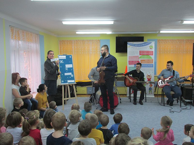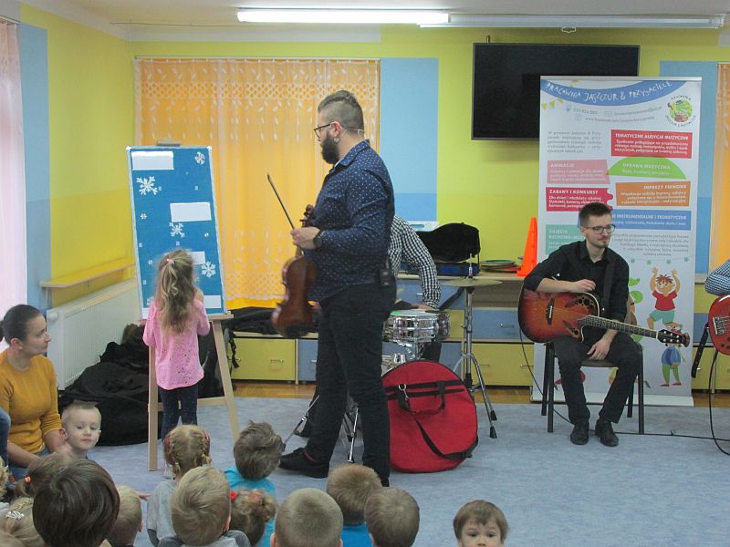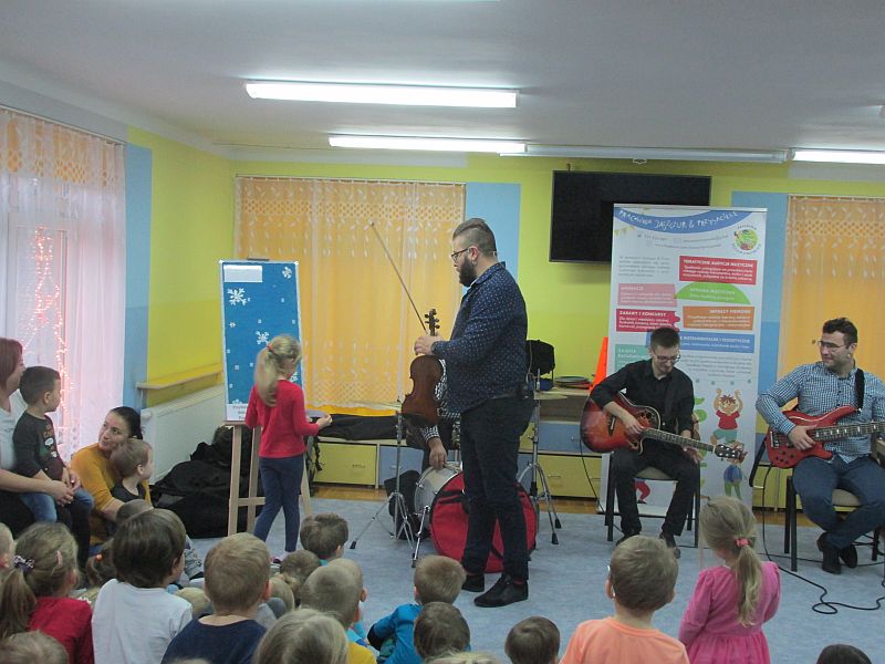 10 grudnia 2019r do naszego przedszkola przybyła grupa muzyczna Jaszczur & Przyjaciele.Przy dźwiękach instrumentów, na których akompaniowali nam wspaniale panowie muzycy ,wszyscy razem śpiewaliśmy nasze polskie kolędy i pastorałki.Ach jak zrobiło się światecznie..... : )