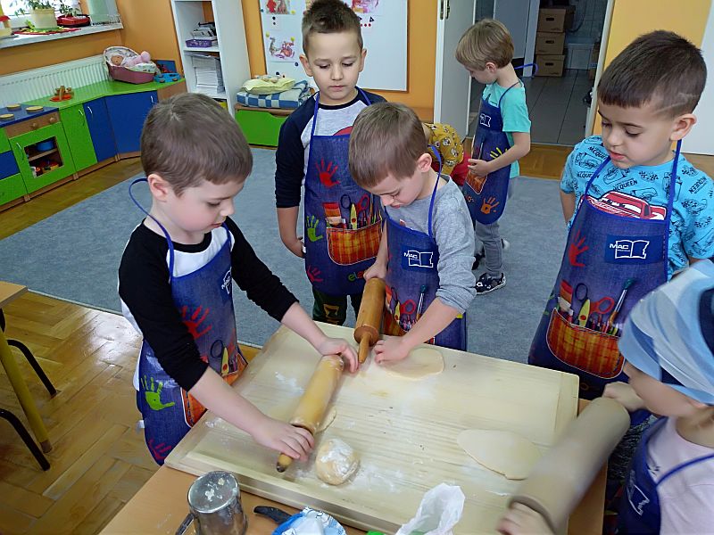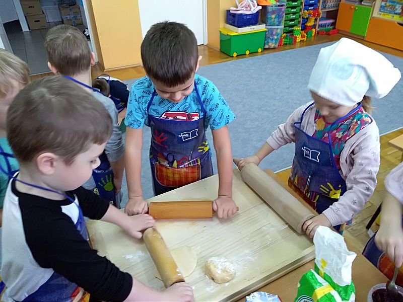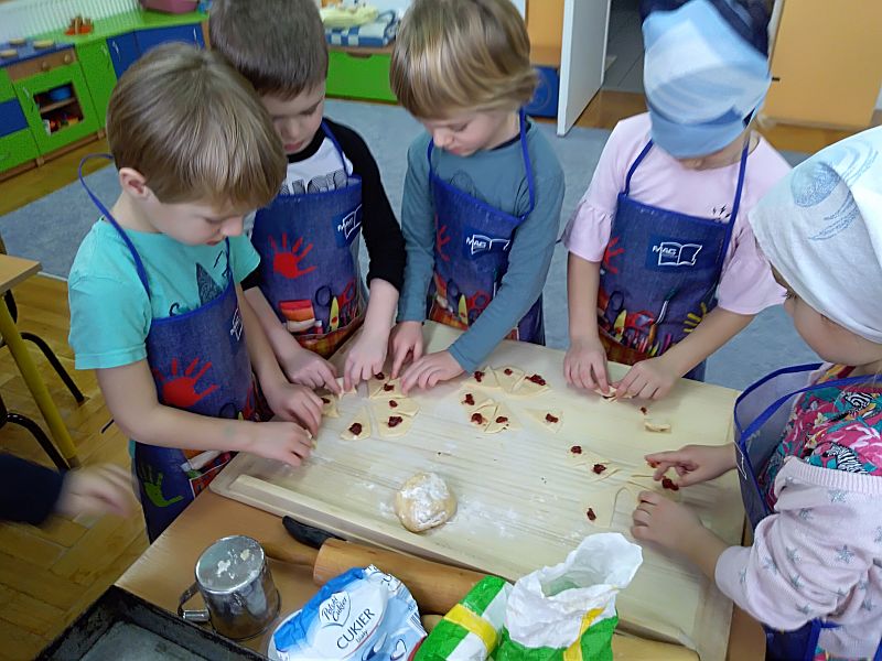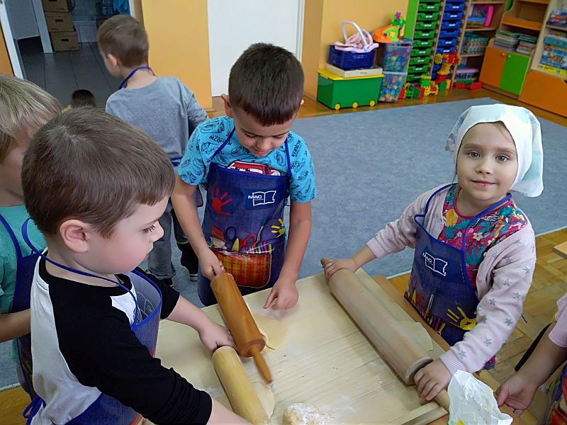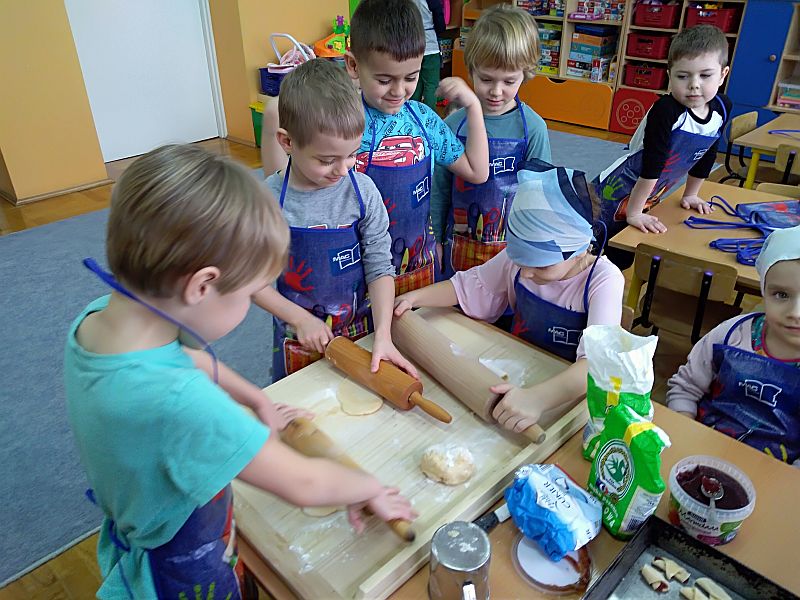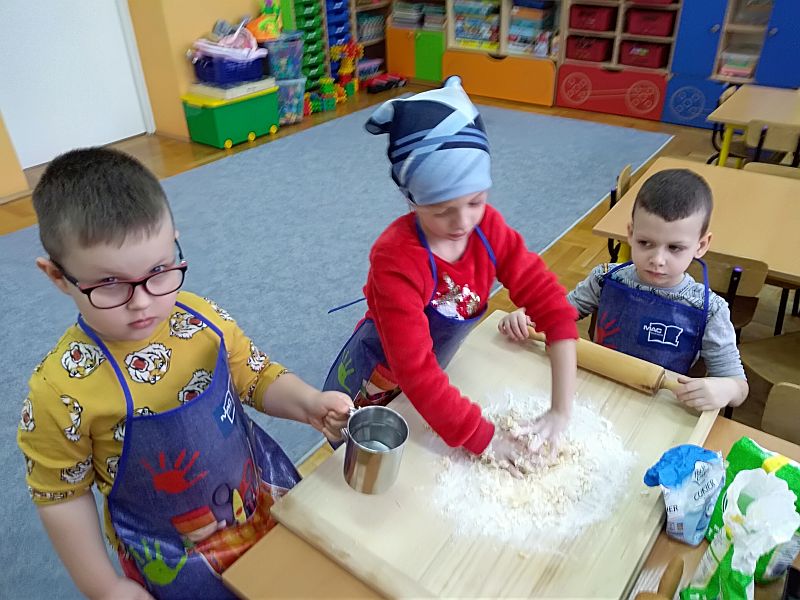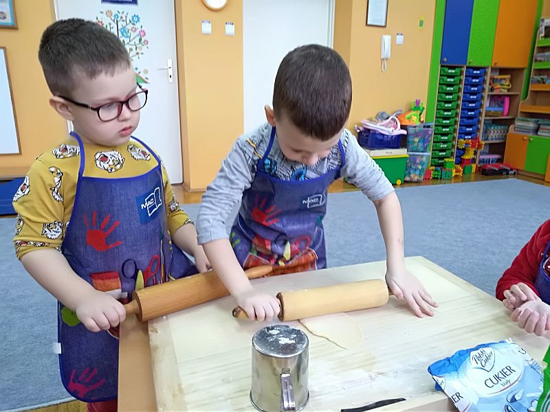 Dzieci z grupy IV „ SŁONECZKA” przygotowują się do ŚWIĘTA BABCI I DZIADZIA piekąc w przedszkolu drożdżowe rogaliki.