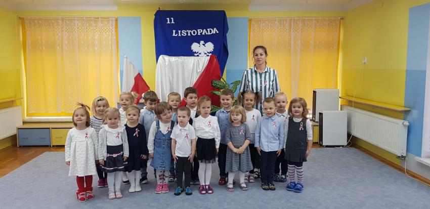 Przedszkolaki z należytym szacunkiem odśpiewały Hymn Polski.