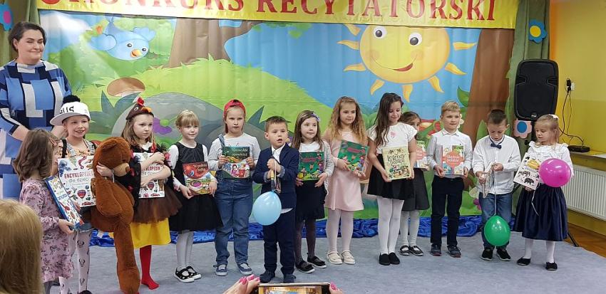 W dniu 19 kwietnia 2023 roku w naszym przedszkolu odbył się VIII Międzyprzedszkolny Konkurs  Recytatorski  -Z kulturą mi do twarzy. Celem przeglądu było zainteresowanie poezją, kształtowanie umiejętności recytatorskich i popularyzowanie poezji o tematyce społeczno - moralnej. W konkursie wzięło udział 13 dzieci z ośmiu tarnowskich przedszkoli. Wzmagania uczestników oceniła komisja ,w skład której byli dyrektorzy poszczególnych przedszkoli. Podczas występów na scenie, wszystkie dzieci wykazały się wielką odwagą , świetnym przygotowaniem oraz przedstawiły wysoki poziom artystyczny dlatego wszystkie przedszkola otrzymały dyplomy uczestnictwa, a uczestnicy otrzymali nagrody książkowe. Konkurs dostarczył dzieciom wielu wrażeń i przeżyć a przede wszystkim dobrej zabawy.