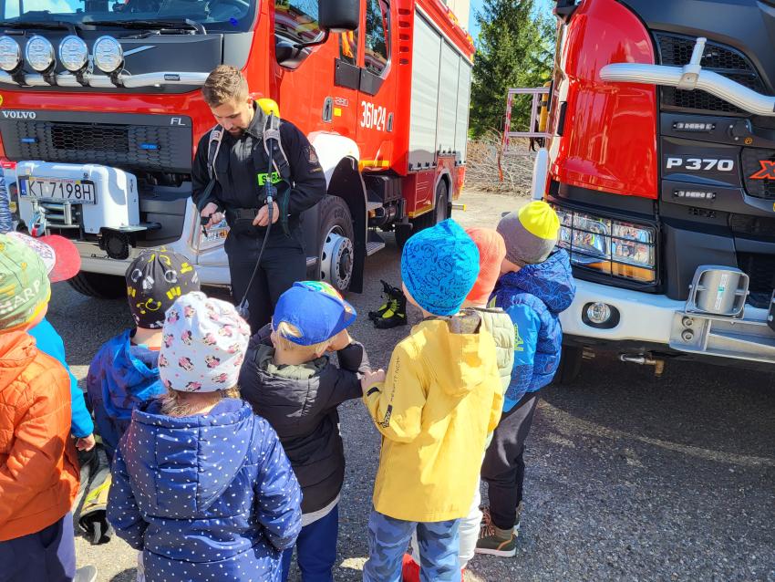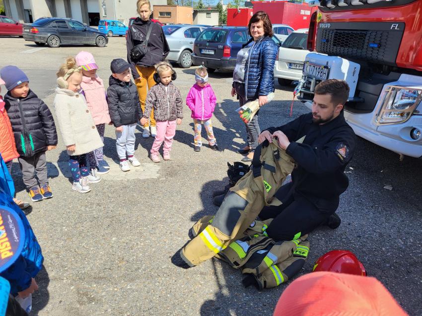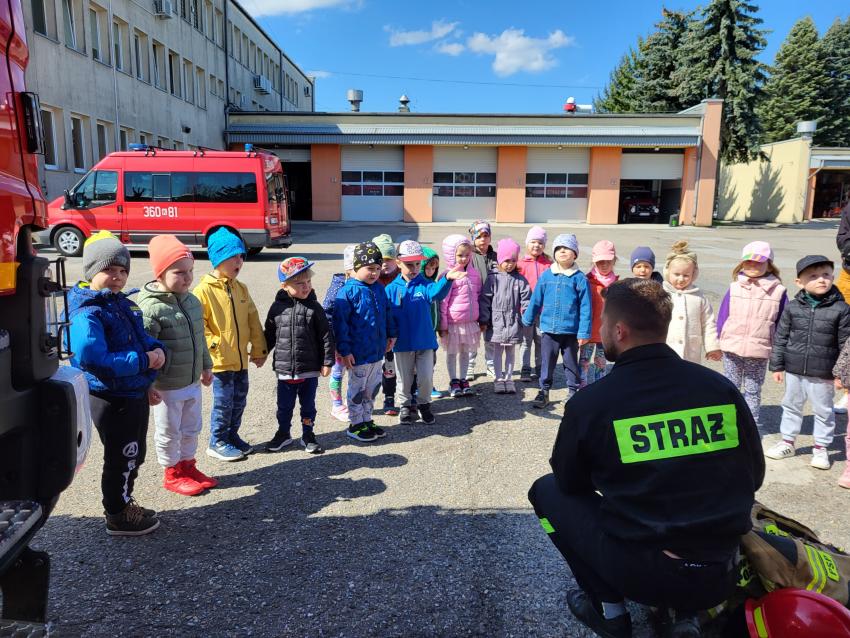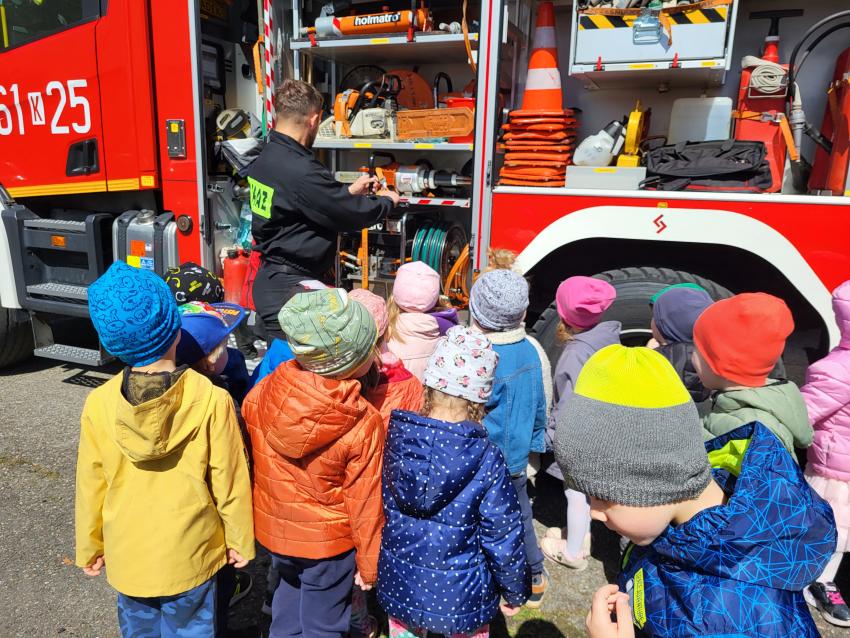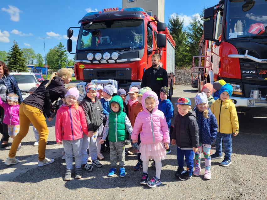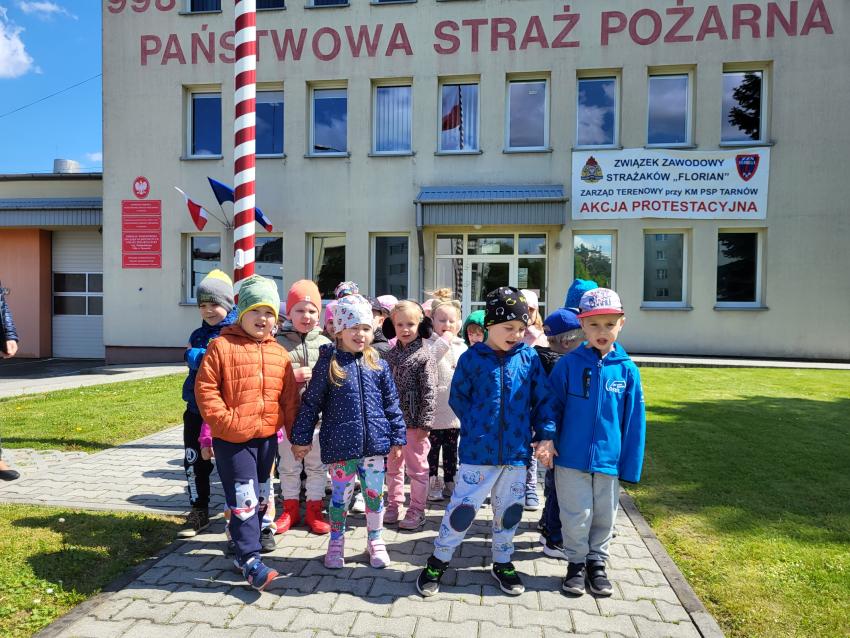 W dniu 09.05.2023 r. dzieci z grupy II -Skrzaty- były na wycieczce w Państwowej Straży Pożarnej w Tarnowie. Podczas wycieczki dzieci zapoznały się z pracą strażaka, sprzętem , pojazdami strażackimi oraz zasadami alarmowania i postępowania w przypadku niebezpiecznych zdarzeń. Na zakończenie wycieczki złożyliśmy życzenia wszystkim strażakom z okazji ich święta.