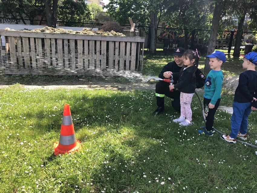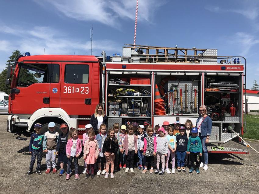 W poniedziałek 22.05.2023 r. przedszkolaki z grupy III i IV odwiedziły Jednostkę Straży Pożarnej w Tarnowie. Dzięki życzliwości Panów Strażaków przedszkolaki mogły z bliska obejrzeć samochody i sprzęt pożarniczy. W trakcie rozmowy ze strażakami dowiedziały się dużo o trudnej, odpowiedzialnej i niebezpiecznej pracy.Składamy serdeczne podziękowania Pracownikom Straży Pożarnej za umożliwienie naszym dzieciom poznania zawodu strażaka z bliska. W ramach podziękowań dzieci przygotowały laurkę za poświęcony nam czas. Tak zdobyta wiedza zachowa się na długo w ich pamięci.
