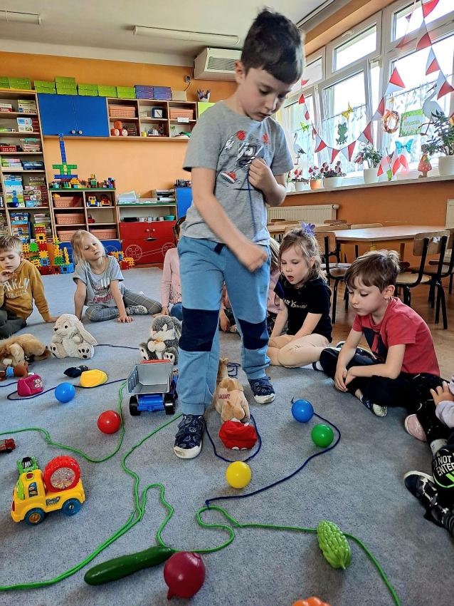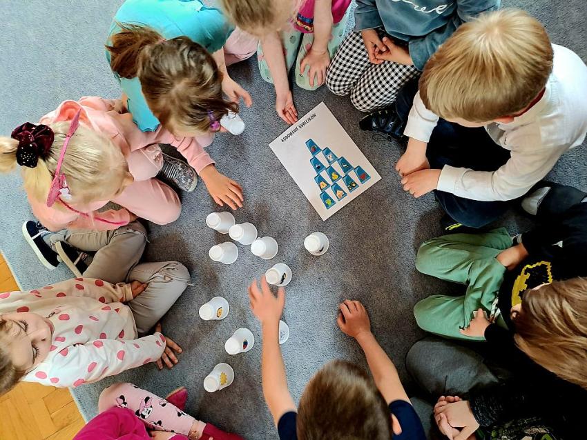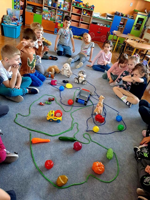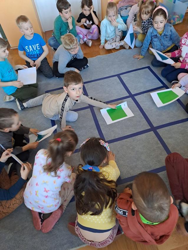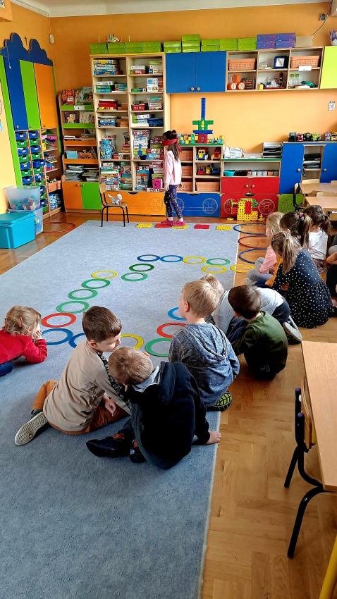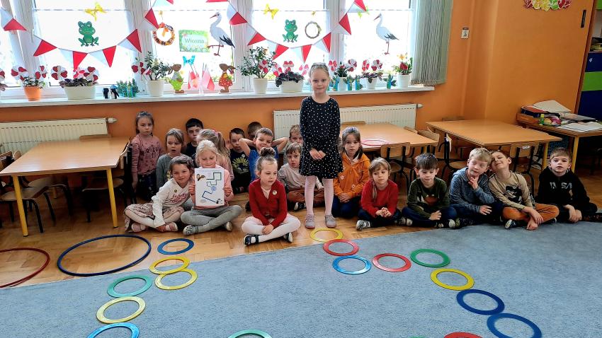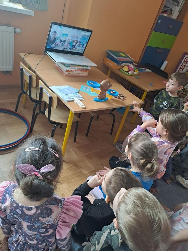 W miesiącu kwietniu grupa IV otrzymała zaproszenie z zaprzyjaźnionego przedszkola w Gałązczycach (woj. Opolskie) do wzięcia udziału w programie -Baw się razem z nami matematyką .Do wzięcia udziału w programie skłoniło nas bardzo duże zainteresowanie dzieci zagadnieniami matematycznymi. Celem programu było rozwijanie zainteresowań i nabywania umiejętności związanych z naukami ścisłymi, a także rozwijanie motywacji do nauki jako źródła wiedzy, a także: wspieranie ciekawości, aktywności i samodzielności w toku podejmowanych działań z zakresu edukacji matematycznej. Program realizowany był w grupie dzieci 5 - letnich od kwietnia do maja 2023 r. W ramach programu realizowane były zabawy i ćwiczenia z zakresu matematycznego. Każdy dzień skupiał się na innym obszarze tematycznym: orientacja przestrzenna, rozwijanie umiejętności liczenia, zbiory, wielkość, kolor, kształt ? figury geometryczne, ćwiczenie spostrzegawczości, pamięci i koncentracji uwagi, ćwiczenie logicznego myślenia i analizowania danych, gry i zabawy z wykorzystaniem komputera lub tablicy interaktywnej. Aby poznać się bliżej dzieci mogły porozmawiać ze sobą poprzez spotkania online ? prowadząc video konferencje, podczas których grupy na przemian zadawały sobie zagadki, pytania wspólnie się bawiąc i rozmawiając jak radziły sobie w potyczkach matematycznych. To był bardzo fajny czas i miłe doświadczenie.
