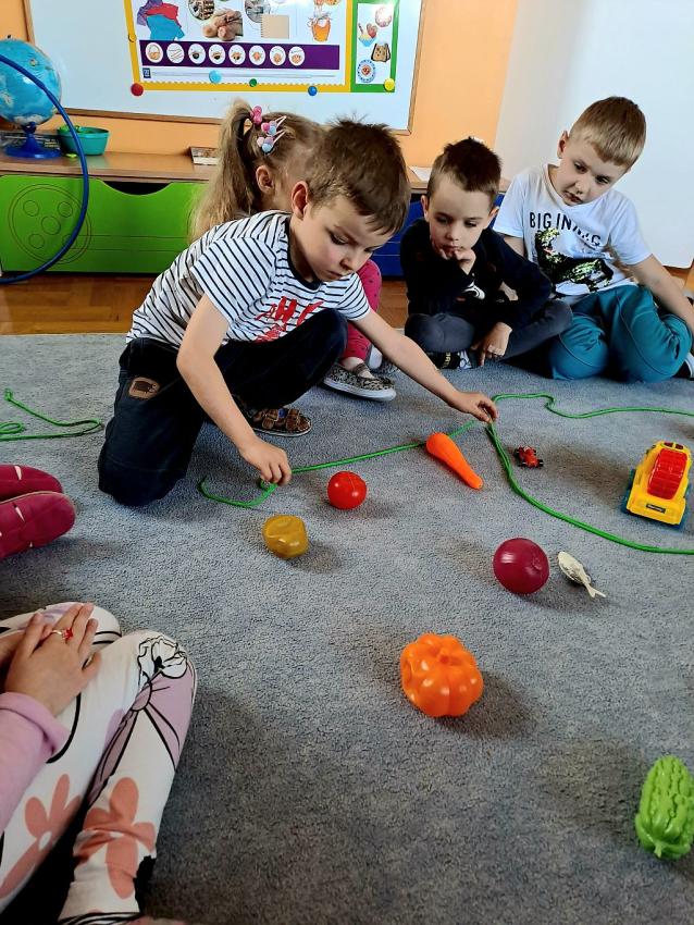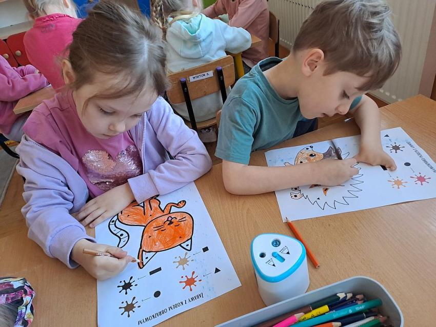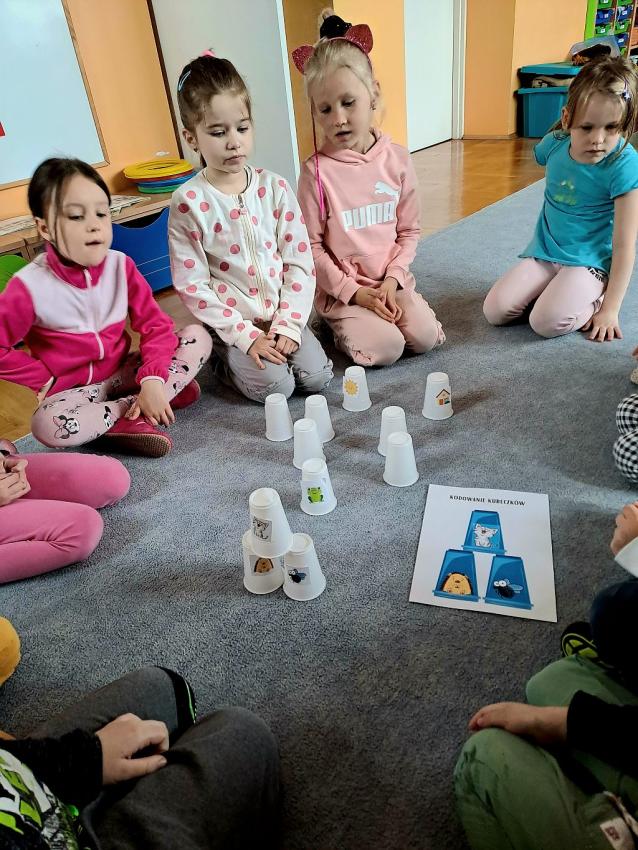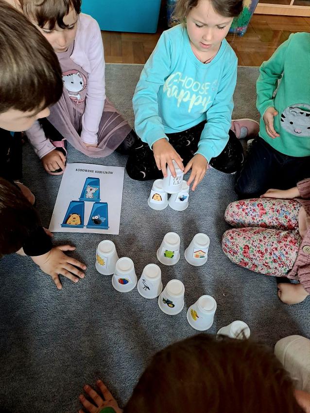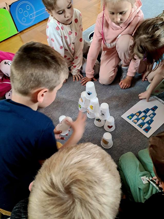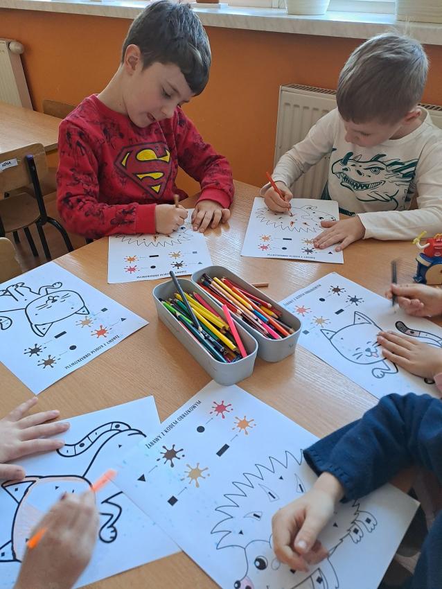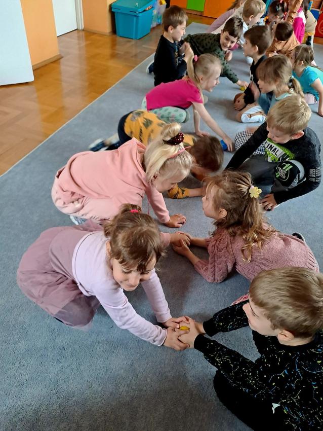 W miesiącu kwietniu grupa IV otrzymała zaproszenie z zaprzyjaźnionego przedszkola w Gałązczycach (woj. Opolskie) do wzięcia udziału w programie -Baw się razem z nami matematyką .Do wzięcia udziału w programie skłoniło nas bardzo duże zainteresowanie dzieci zagadnieniami matematycznymi. Celem programu było rozwijanie zainteresowań i nabywania umiejętności związanych z naukami ścisłymi, a także rozwijanie motywacji do nauki jako źródła wiedzy, a także: wspieranie ciekawości, aktywności i samodzielności w toku podejmowanych działań z zakresu edukacji matematycznej. Program realizowany był w grupie dzieci 5 - letnich od kwietnia do maja 2023 r. W ramach programu realizowane były zabawy i ćwiczenia z zakresu matematycznego. Każdy dzień skupiał się na innym obszarze tematycznym: orientacja przestrzenna, rozwijanie umiejętności liczenia, zbiory, wielkość, kolor, kształt ? figury geometryczne, ćwiczenie spostrzegawczości, pamięci i koncentracji uwagi, ćwiczenie logicznego myślenia i analizowania danych, gry i zabawy z wykorzystaniem komputera lub tablicy interaktywnej. Aby poznać się bliżej dzieci mogły porozmawiać ze sobą poprzez spotkania online ? prowadząc video konferencje, podczas których grupy na przemian zadawały sobie zagadki, pytania wspólnie się bawiąc i rozmawiając jak radziły sobie w potyczkach matematycznych. To był bardzo fajny czas i miłe doświadczenie.