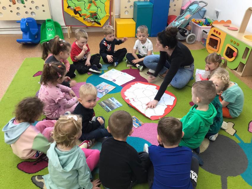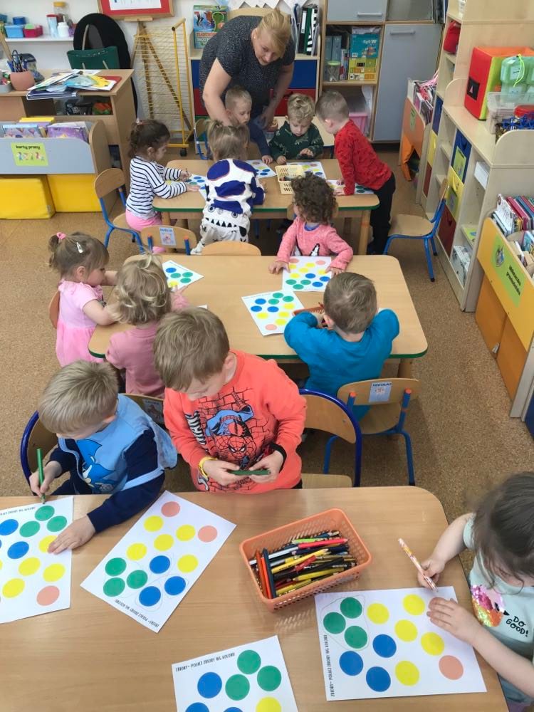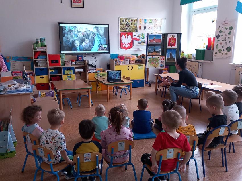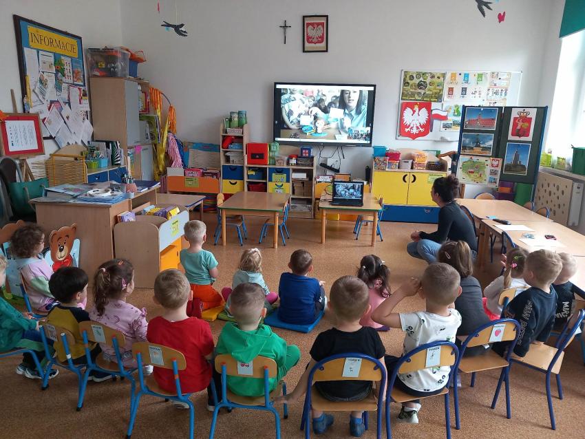 W miesiącu kwietniu grupa IV otrzymała zaproszenie z zaprzyjaźnionego przedszkola w Gałązczycach (woj. Opolskie) do wzięcia udziału w programie -Baw się razem z nami matematyką .Do wzięcia udziału w programie skłoniło nas bardzo duże zainteresowanie dzieci zagadnieniami matematycznymi. Celem programu było rozwijanie zainteresowań i nabywania umiejętności związanych z naukami ścisłymi, a także rozwijanie motywacji do nauki jako źródła wiedzy, a także: wspieranie ciekawości, aktywności i samodzielności w toku podejmowanych działań z zakresu edukacji matematycznej. Program realizowany był w grupie dzieci 5 - letnich od kwietnia do maja 2023 r. W ramach programu realizowane były zabawy i ćwiczenia z zakresu matematycznego. Każdy dzień skupiał się na innym obszarze tematycznym: orientacja przestrzenna, rozwijanie umiejętności liczenia, zbiory, wielkość, kolor, kształt ? figury geometryczne, ćwiczenie spostrzegawczości, pamięci i koncentracji uwagi, ćwiczenie logicznego myślenia i analizowania danych, gry i zabawy z wykorzystaniem komputera lub tablicy interaktywnej. Aby poznać się bliżej dzieci mogły porozmawiać ze sobą poprzez spotkania online ? prowadząc video konferencje, podczas których grupy na przemian zadawały sobie zagadki, pytania wspólnie się bawiąc i rozmawiając jak radziły sobie w potyczkach matematycznych. To był bardzo fajny czas i miłe doświadczenie.