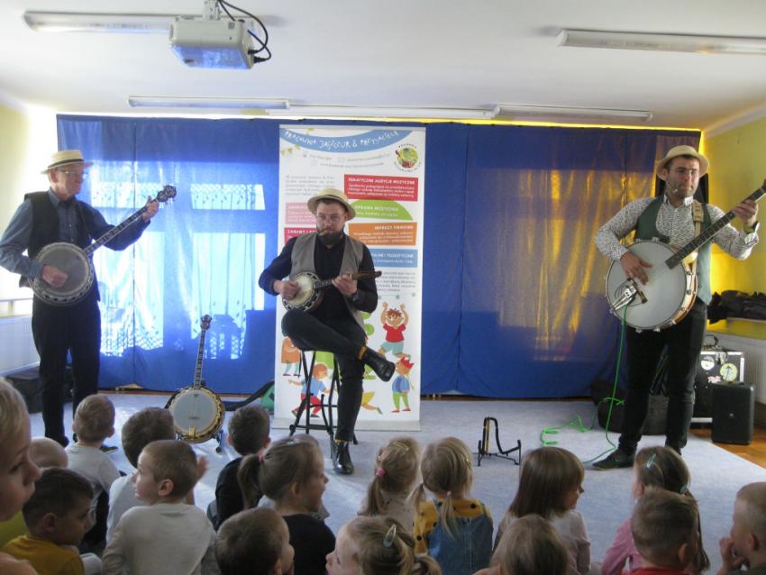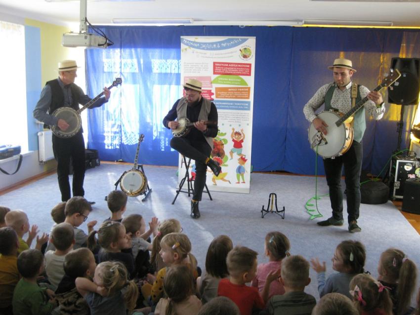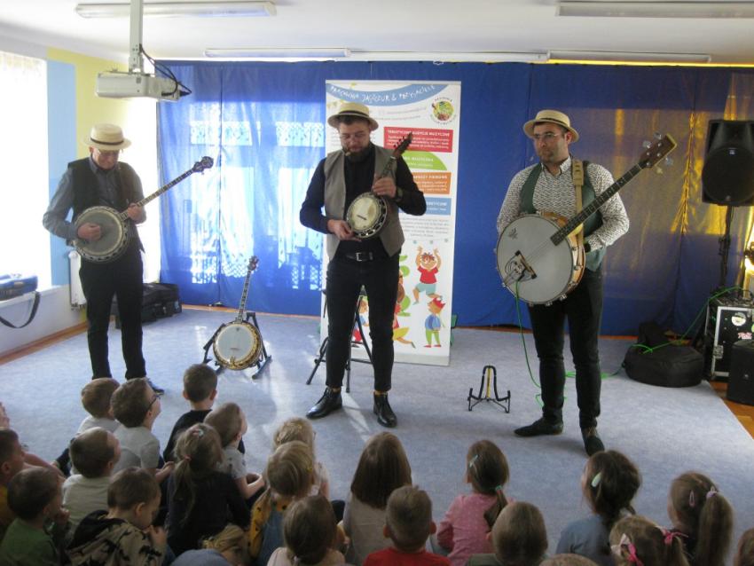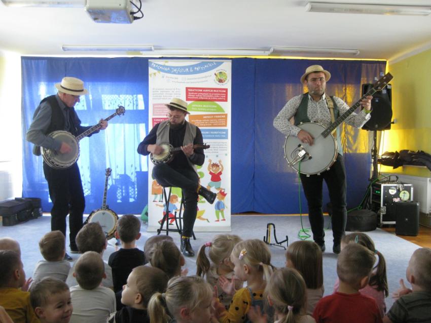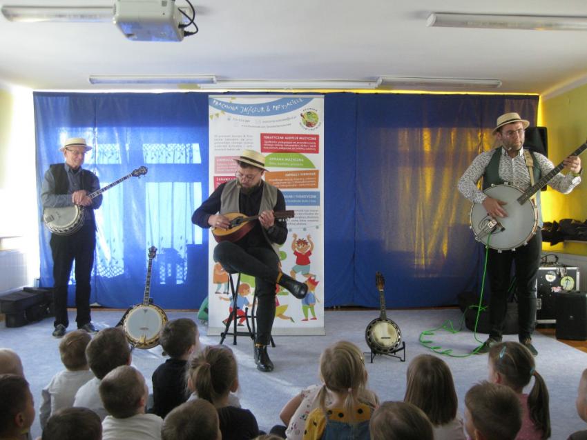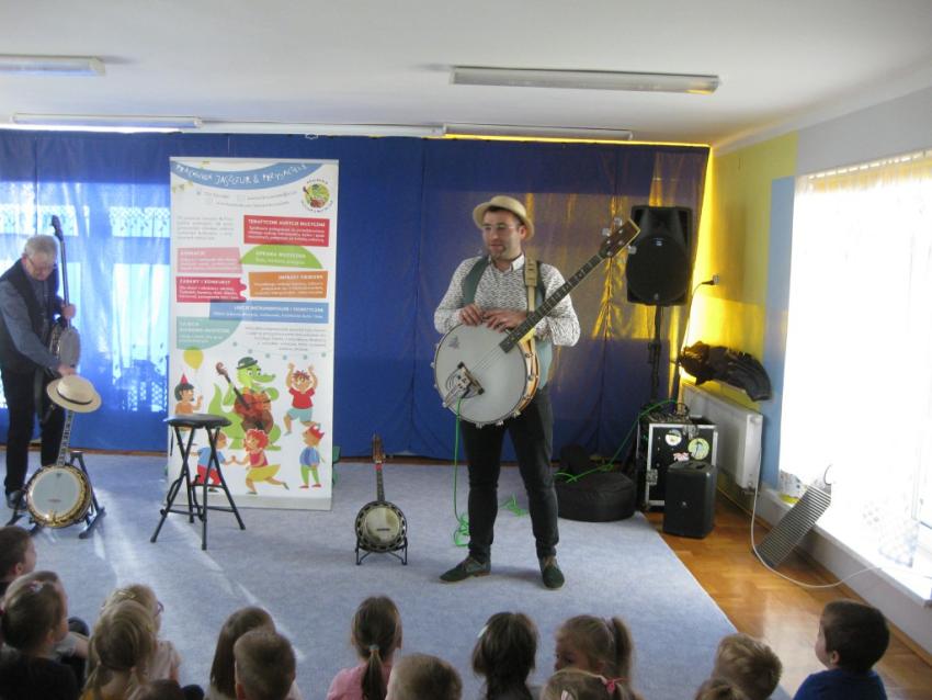 Podczas listopadowej audycji muzycznej z Pracownią Jaszczur & Przyjaciele, przedszkolaki poznały nowy instrument muzyczny, jakim jest banjo. Banjo swoim wyglądem przypomina gitarę, ale nie ma z nią nic wspólnego, gdyż tak naprawdę jest to bęben. Muzycy zaprezentowali różne rodzaje instrumentu, jak np. banjo basowe, banjolę czy mandolinę. Dzieci mogły usłyszeć brzmienie tych instrumentów, słuchając fragmentów różnych utworów.