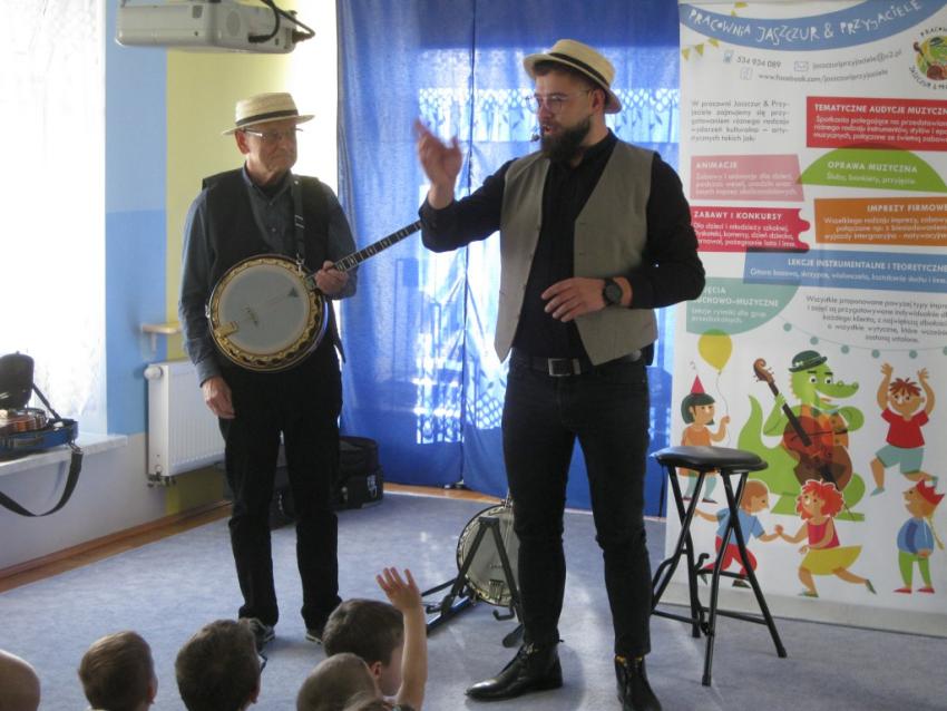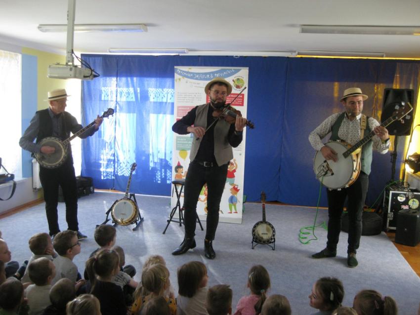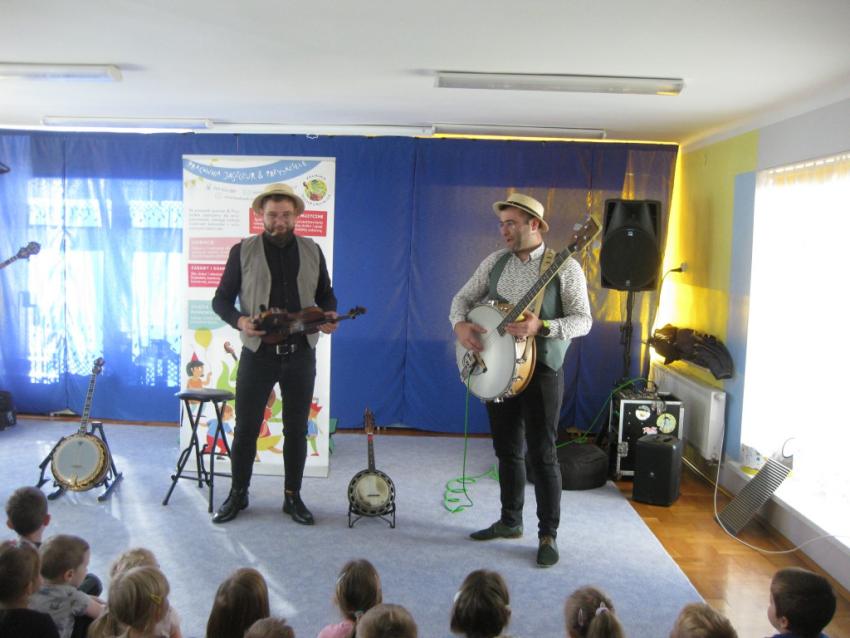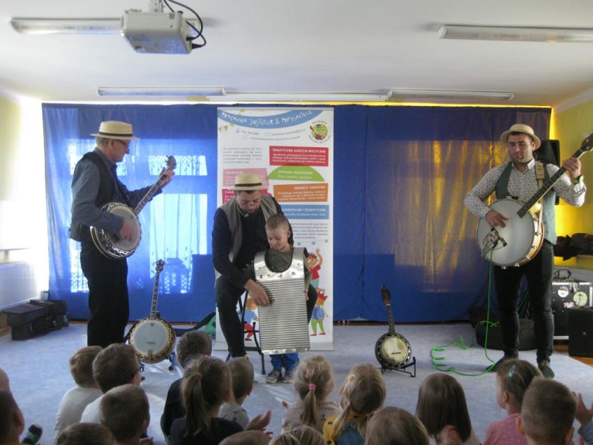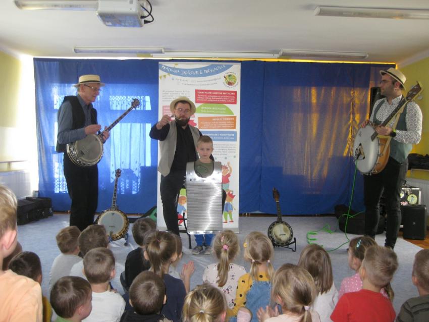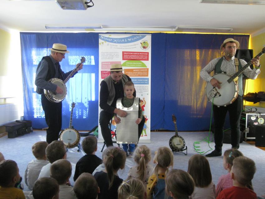 Podczas listopadowej audycji muzycznej z Pracownią Jaszczur & Przyjaciele, przedszkolaki poznały nowy instrument muzyczny, jakim jest banjo. Banjo swoim wyglądem przypomina gitarę, ale nie ma z nią nic wspólnego, gdyż tak naprawdę jest to bęben. Muzycy zaprezentowali różne rodzaje instrumentu, jak np. banjo basowe, banjolę czy mandolinę. Dzieci mogły usłyszeć brzmienie tych instrumentów, słuchając fragmentów różnych utworów.