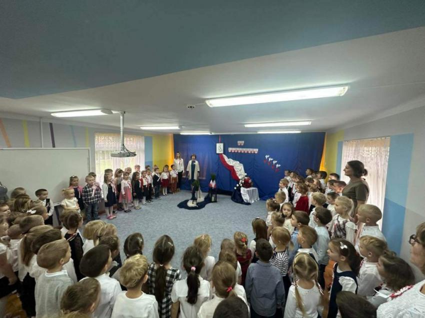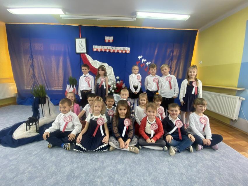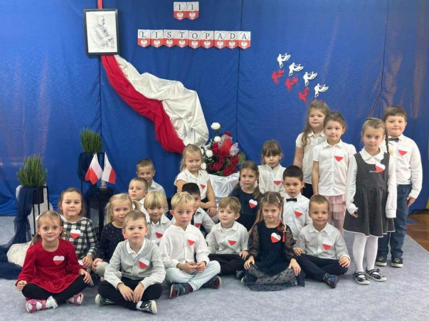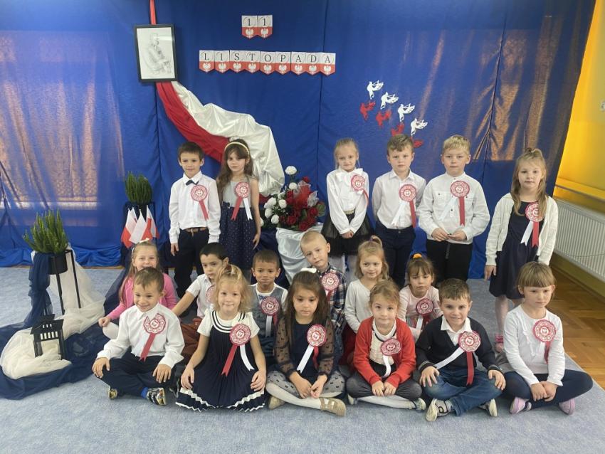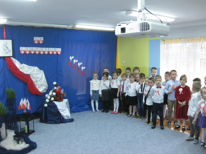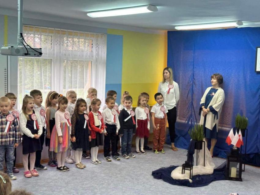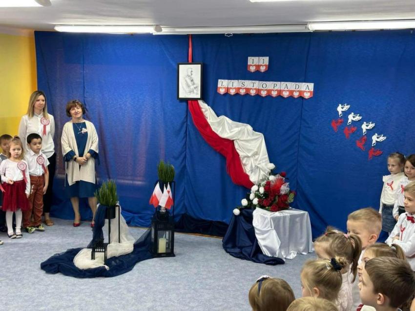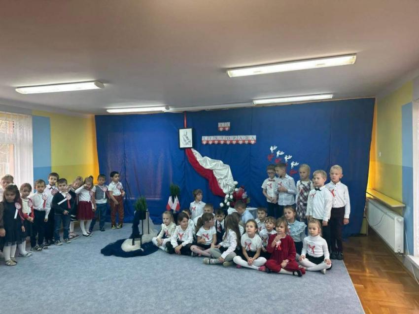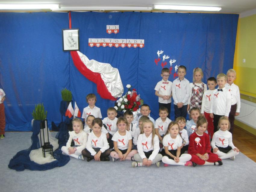 10 listopada bieżącego roku w naszym przedszkolu odbyła się uroczystość upamiętniająca rocznicę Odzyskania Niepodległości przez Polskę. Z tej okazji dzieci z wszystkich grup oraz pracownicy przedszkola zebrali się, aby uroczyście świętować ten wyjątkowy dla Polaków czas.Pielęgnując polską kulturę i tradycję dzieci z grup starszych śpiewały pieśni patriotyczne, a na zakończenie wszyscy wspólnie z należytym szacunkiem zaśpiewaliśmy Mazurek Dąbrowskiego - nasz hymn narodowy.