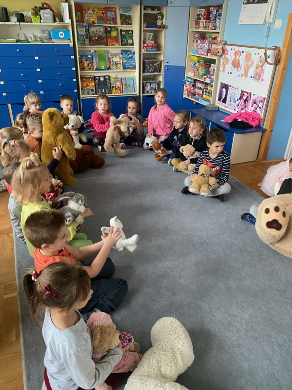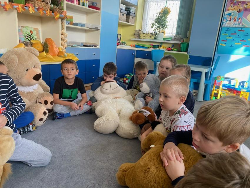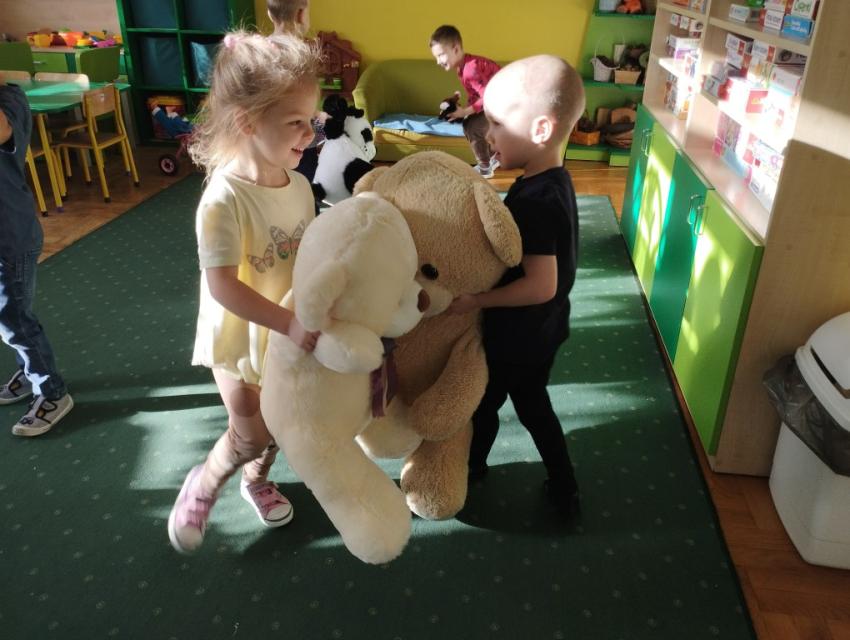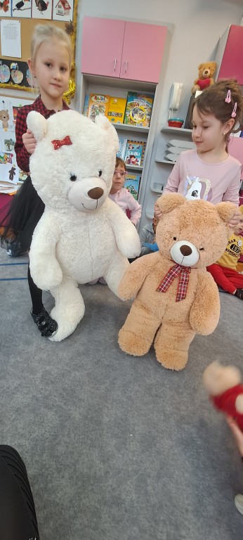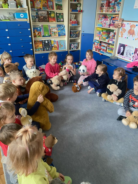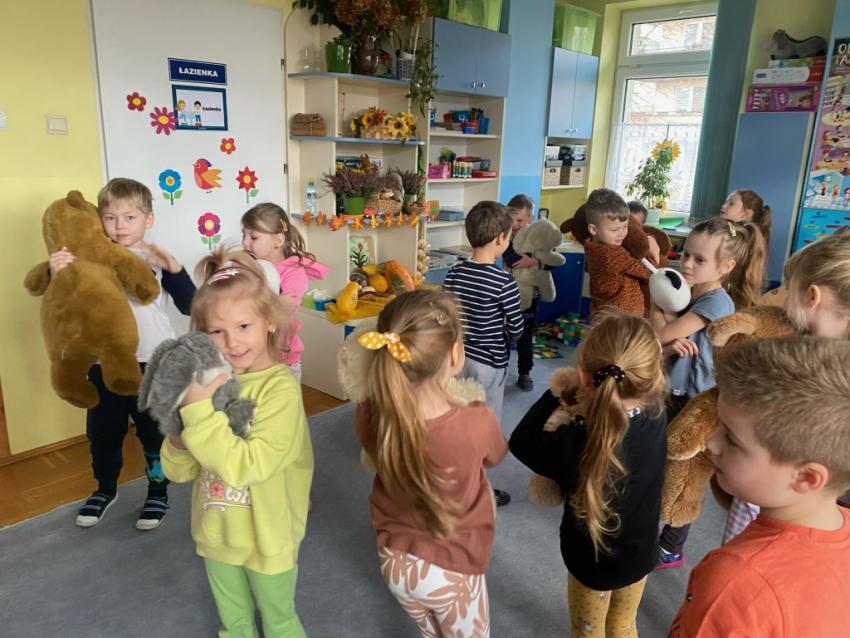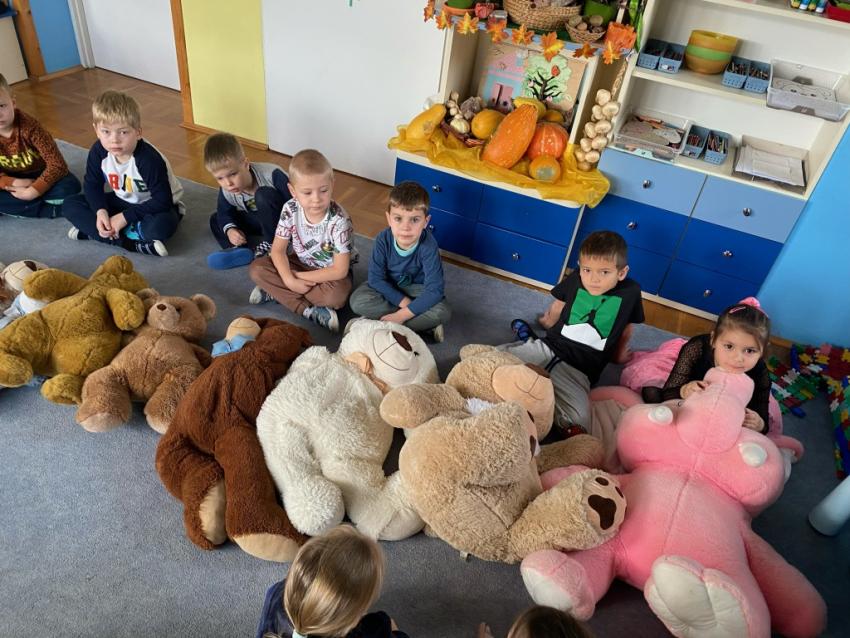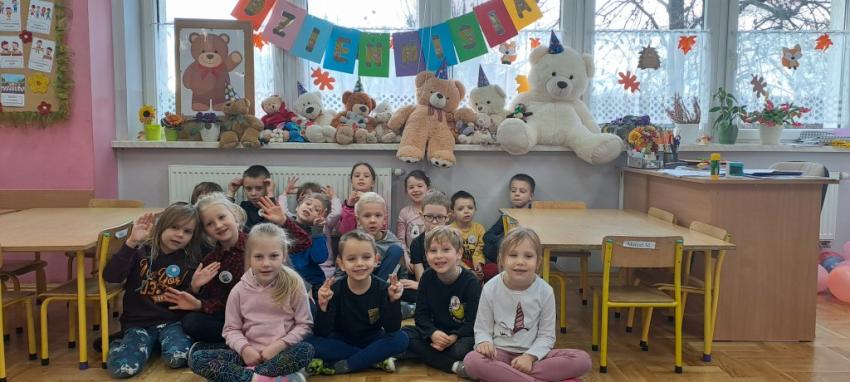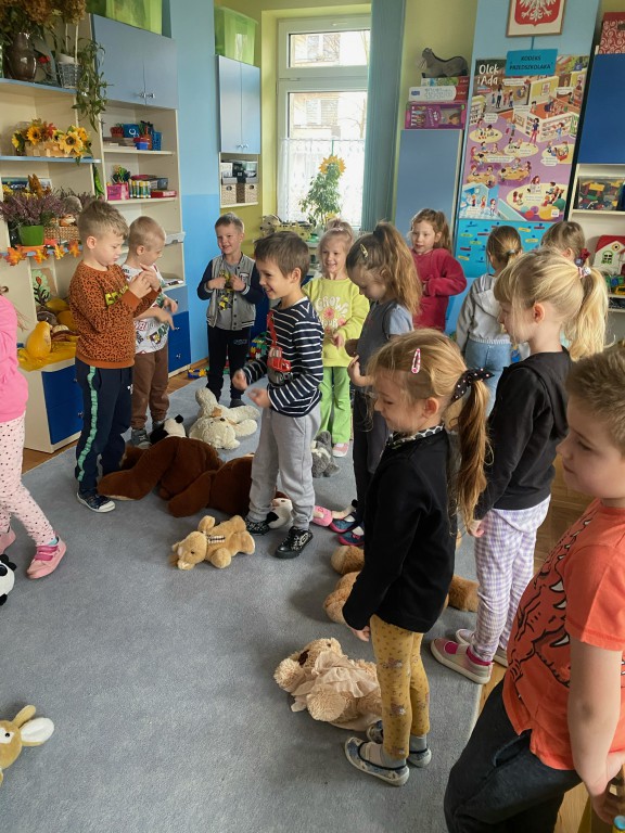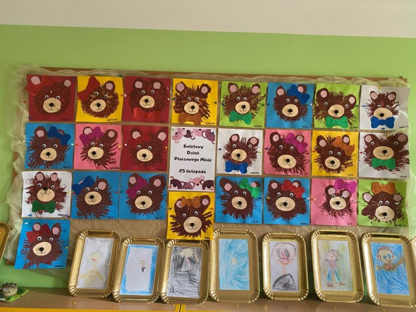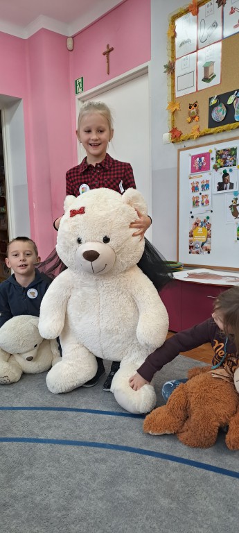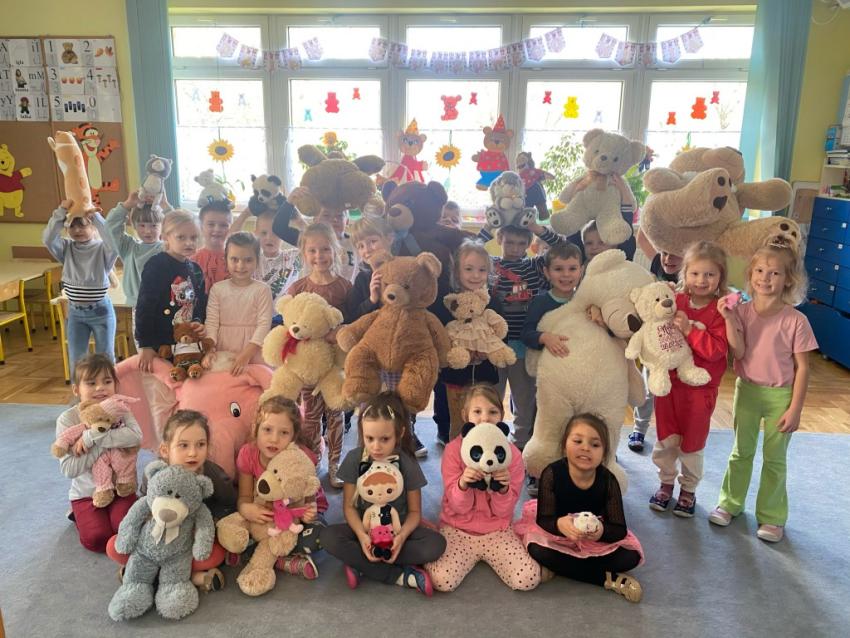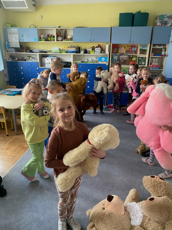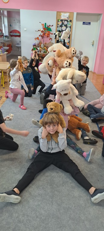 W dniu 24 listopada wszystkie dzieci z naszego przedszkola uroczyście obchodziły Światowy Dzień Pluszowego Misia. Zgodnie z tradycją ,tego dnia dzieci przyszły do przedszkola ze swoimi ulubionymi misiami pluszakami. Przedszkolaki opowiadały o swoich maskotkach,porównywały ich wielkości, słuchały czytanych przez panie fragmentów książek o niedźwiadkach, oglądały bajki o misiach, rozwiązywały zagadki, wykonały pracę plastyczną - portret misia, tańczyły z misiami w rytm misiowych piosenek. Ten dzień wywołał u dzieci wiele uśmiechów i radości.