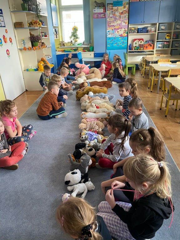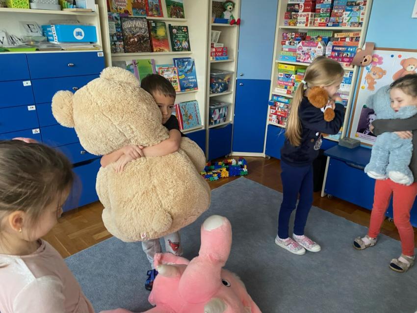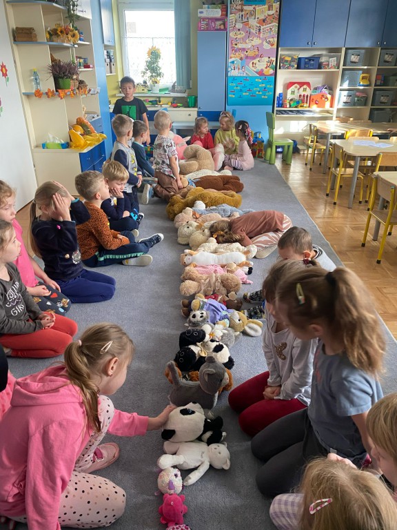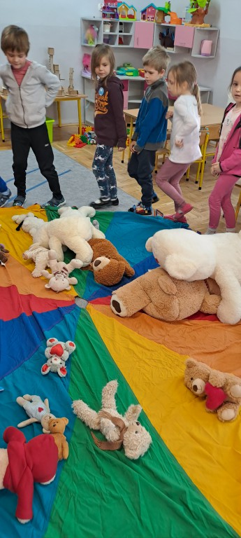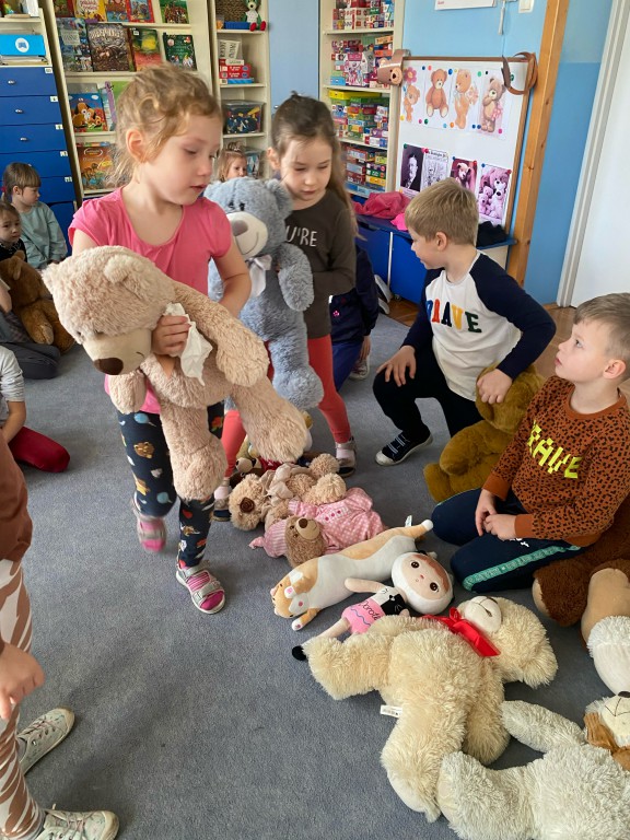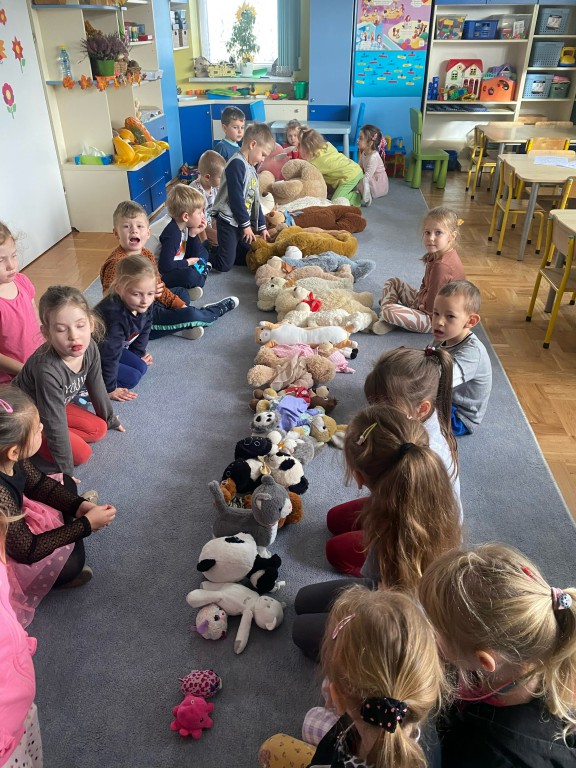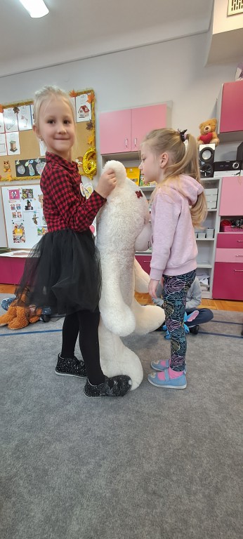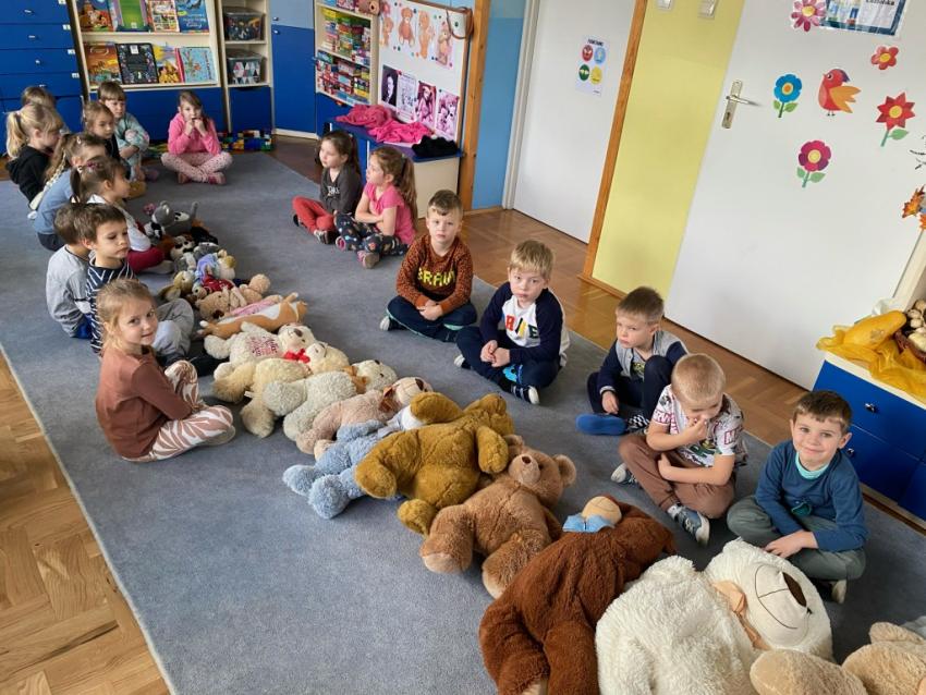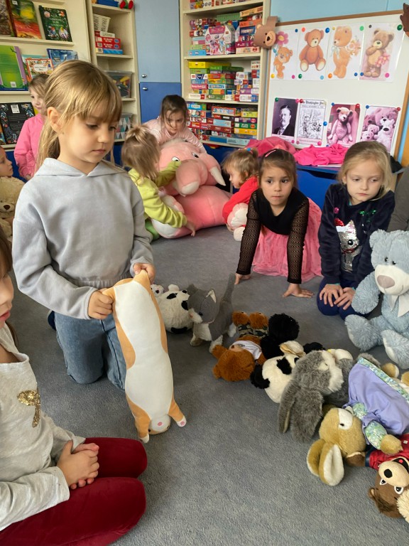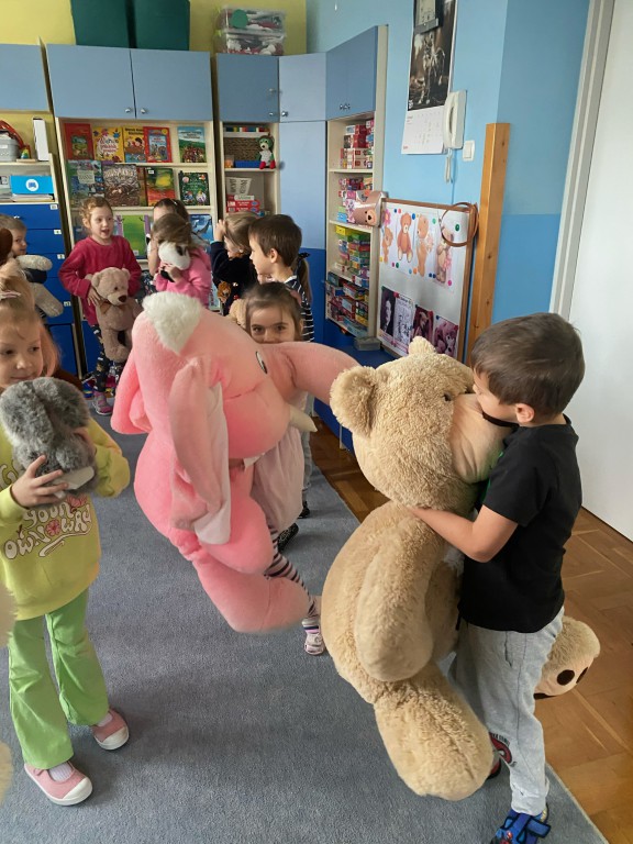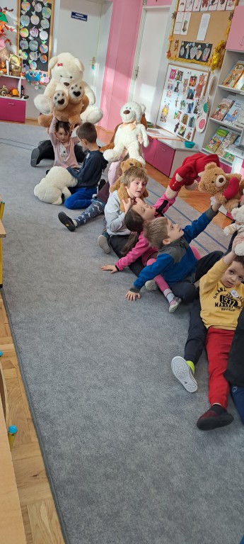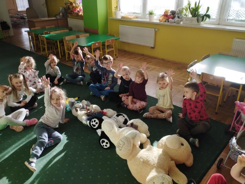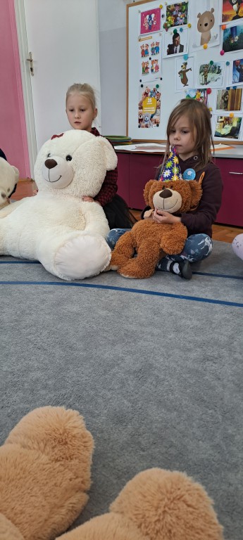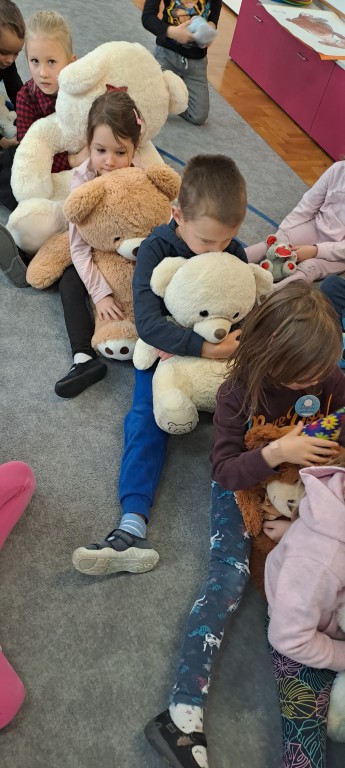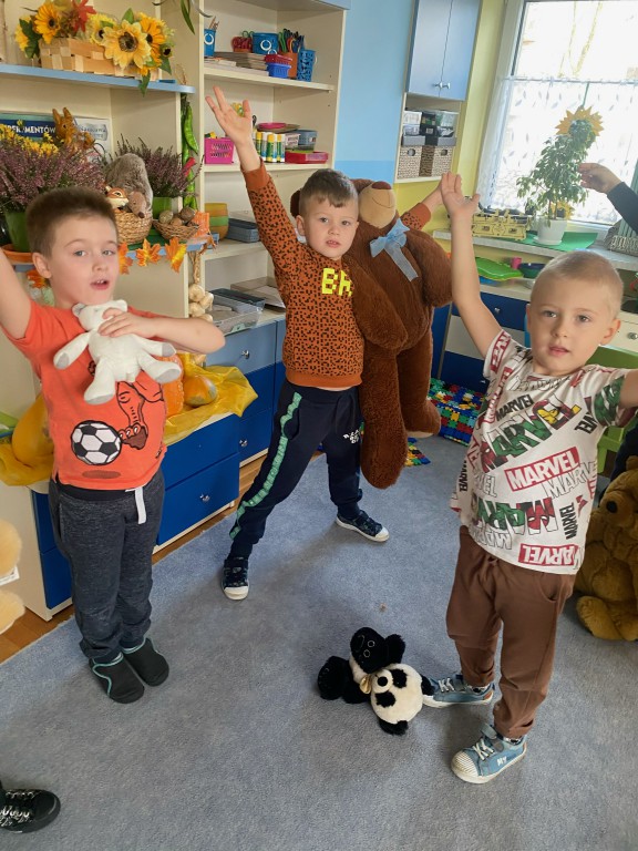 W dniu 24 listopada wszystkie dzieci z naszego przedszkola uroczyście obchodziły Światowy Dzień Pluszowego Misia. Zgodnie z tradycją ,tego dnia dzieci przyszły do przedszkola ze swoimi ulubionymi misiami pluszakami. Przedszkolaki opowiadały o swoich maskotkach,porównywały ich wielkości, słuchały czytanych przez panie fragmentów książek o niedźwiadkach, oglądały bajki o misiach, rozwiązywały zagadki, wykonały pracę plastyczną - portret misia, tańczyły z misiami w rytm misiowych piosenek. Ten dzień wywołał u dzieci wiele uśmiechów i radości.