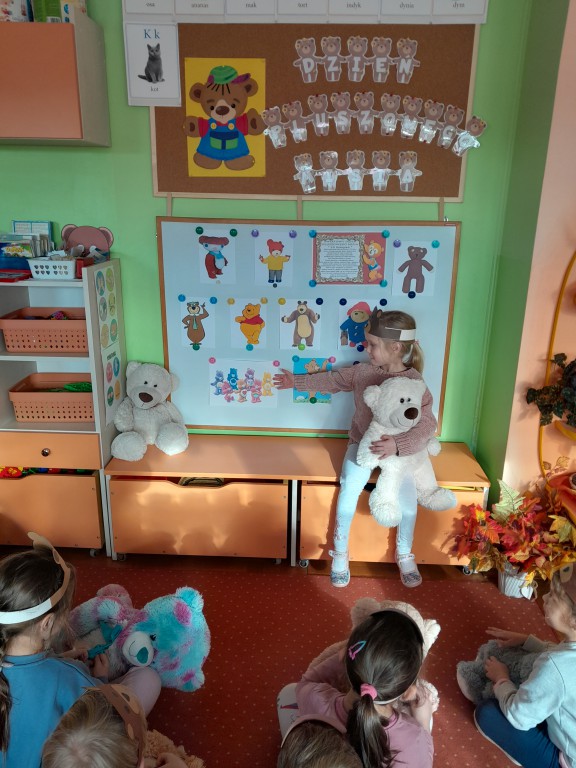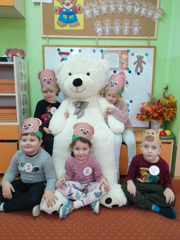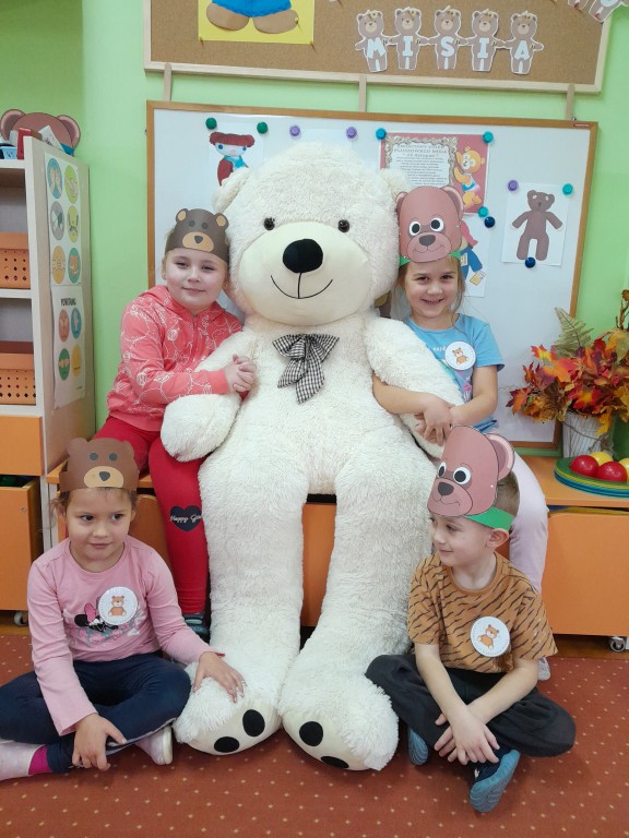 W dniu 24 listopada wszystkie dzieci z naszego przedszkola uroczyście obchodziły Światowy Dzień Pluszowego Misia. Zgodnie z tradycją ,tego dnia dzieci przyszły do przedszkola ze swoimi ulubionymi misiami pluszakami. Przedszkolaki opowiadały o swoich maskotkach,porównywały ich wielkości, słuchały czytanych przez panie fragmentów książek o niedźwiadkach, oglądały bajki o misiach, rozwiązywały zagadki, wykonały pracę plastyczną - portret misia, tańczyły z misiami w rytm misiowych piosenek. Ten dzień wywołał u dzieci wiele uśmiechów i radości.