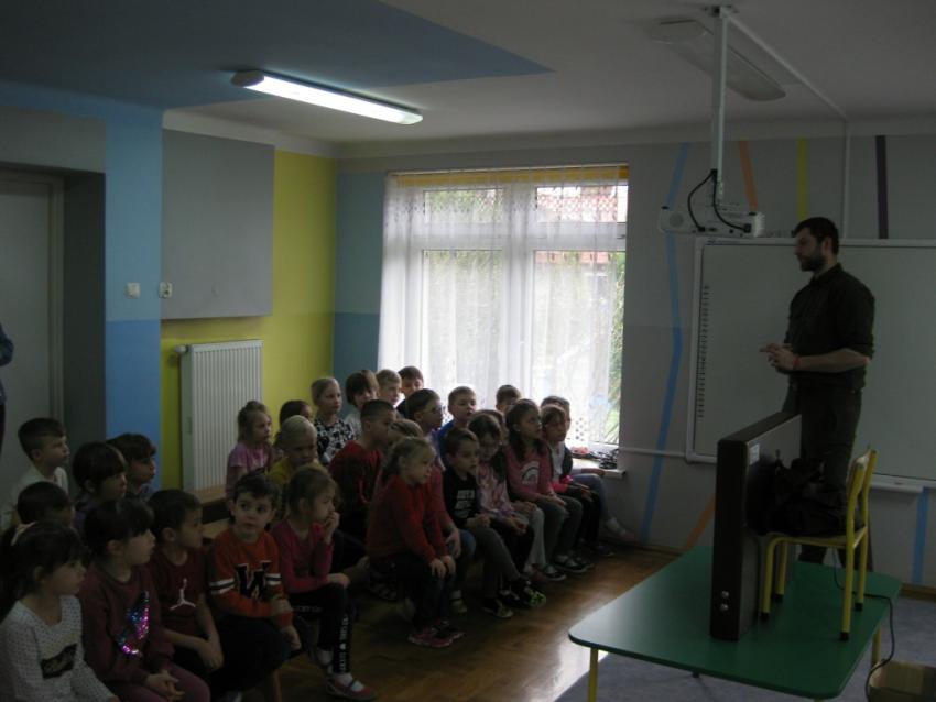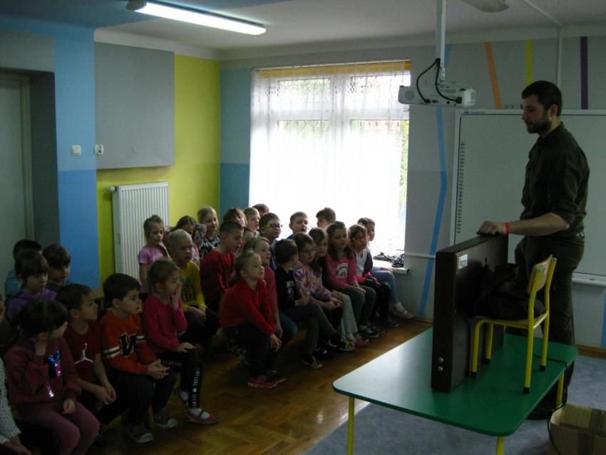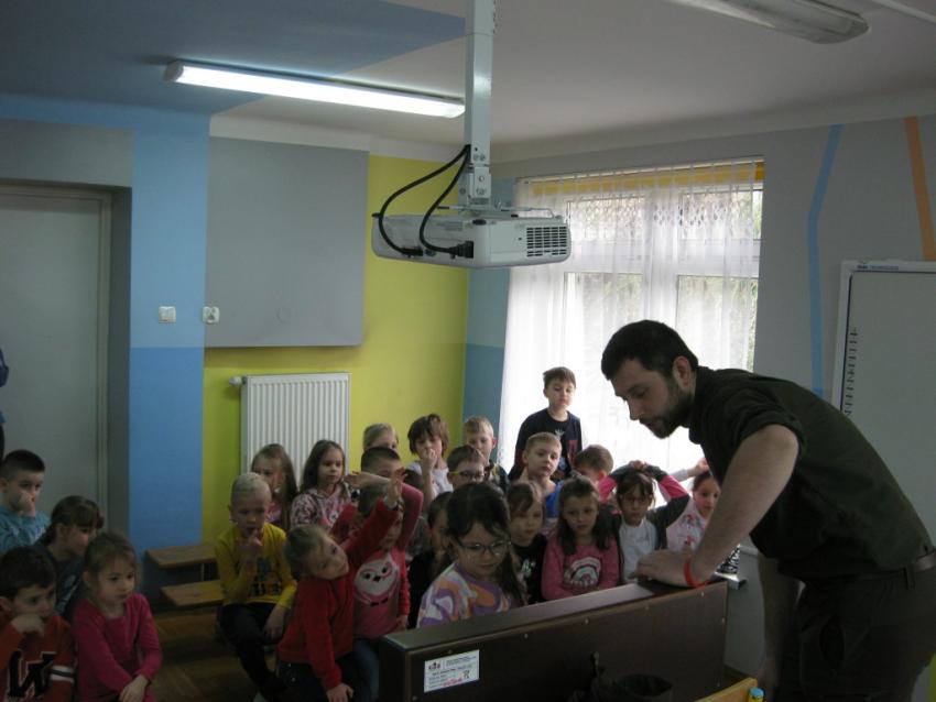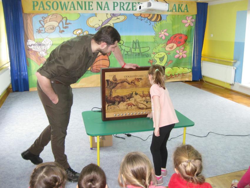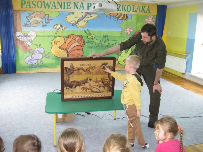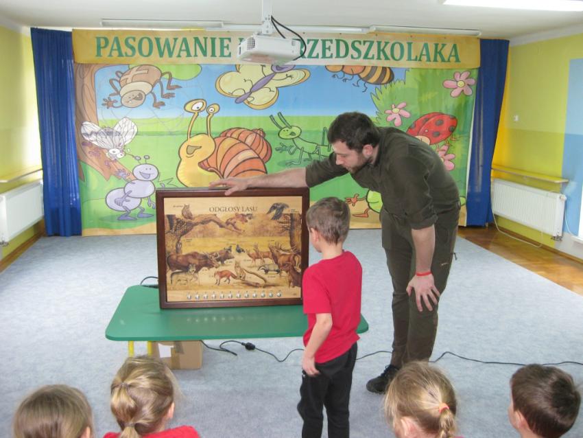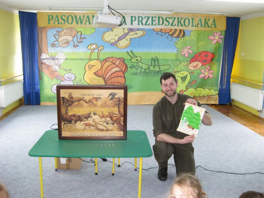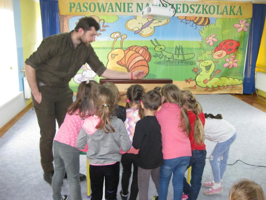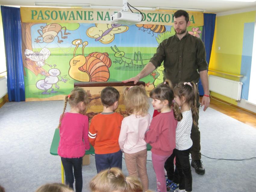 14 marca 2024r nasze przedszkole odwiedził Pan Leśniczy z Nadleśnictwa Gromnik.Nasz gość opowiedział, a zarazem przypomniał dzieciom o niektórych zwierzętach leśnych, o ich zwyczajach i miejscach gdzie zamieszkują.Dzieci mogły także posłuchać odgłosów jakie wydają np:wilki, lisy, łosie, sowy, borsuki, jelenie, sokoły itp. Leśniczy przypomniał także, jak należy zachowywać się w lesie. Dzieci z dużym zainteresowaniem słuchały tych opowieści, a na zakończenie spotkania otrzymały pamiątkowe notatniki. Spotkanie upłynęło w miłej atmosferze. Wysłuchane ciekawostki i wiadomości poszerzyły wiedzę przyrodniczą przedszkolaków,za którą podziękowaliśmy naszemu gościowi pamiątkowym dyplomem.