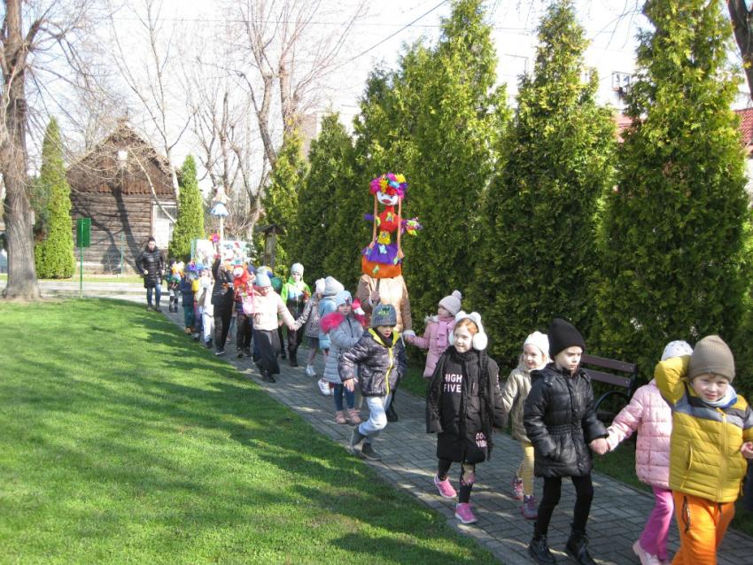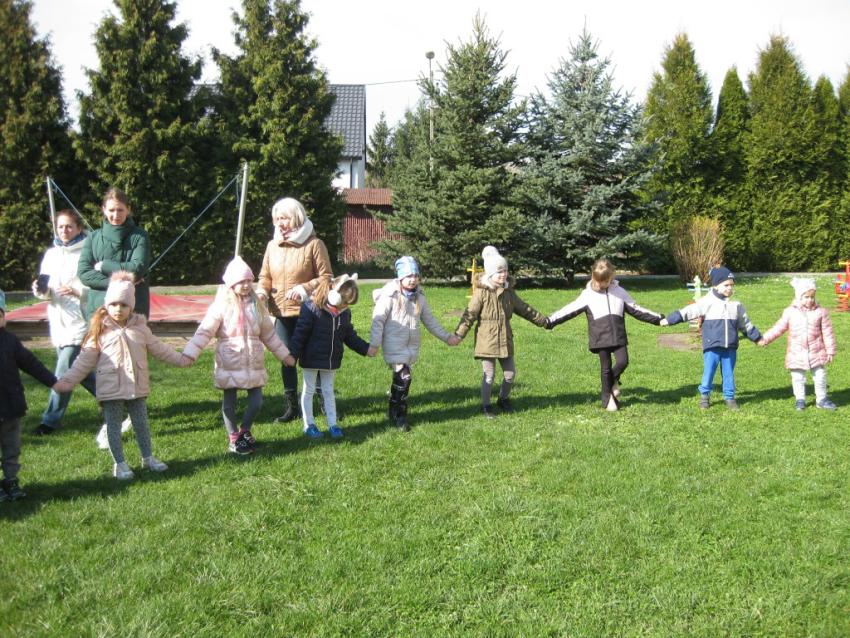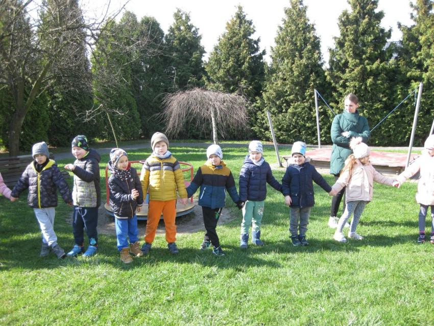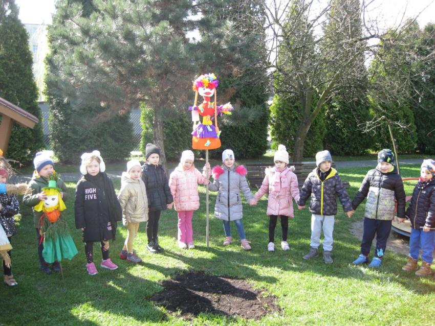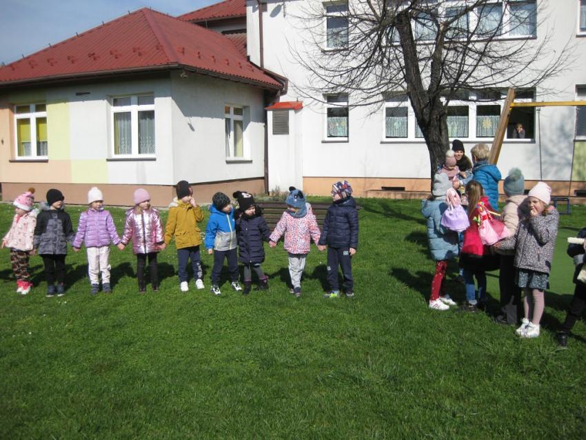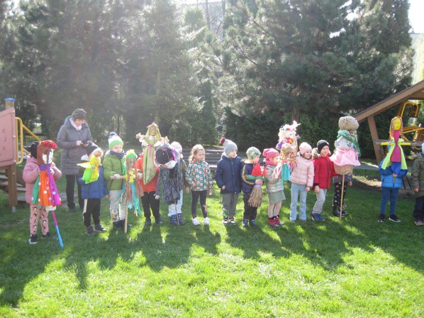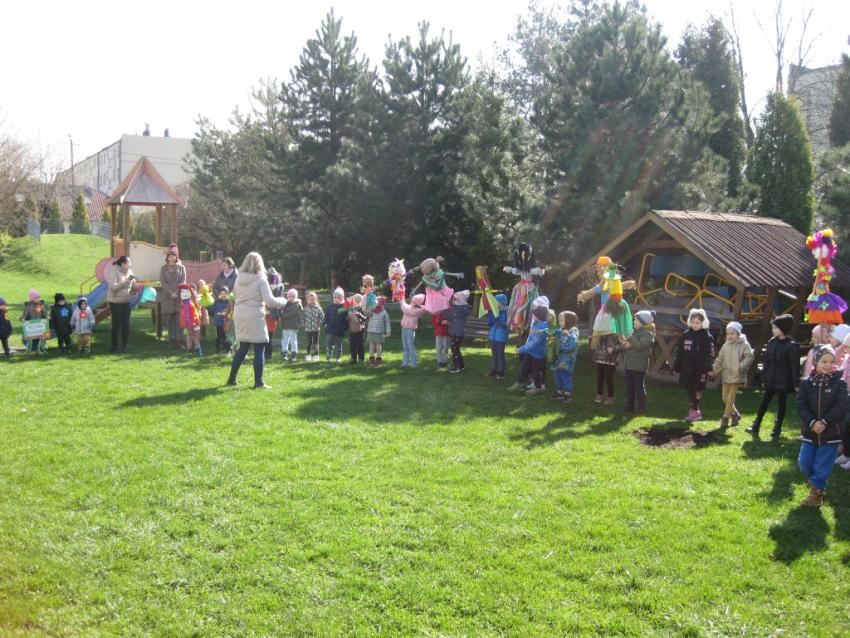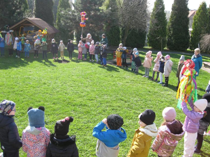 Pierwszy dzień wiosny w przedszkolu był szczególnie radosny i kolorowy. Żegnanie zimy i powitanie wiosny związane jest bowiem z miłymi przeżyciami wszystkich przedszkolaków.Nie zapominając o starym zwyczaju,przedszkolaki przygotowały swoje kukły symbolizujące porę roku zimę.Radosnym korowodem ,piosenką i okrzykami pożegnaliśmy zimę i przywitaliśmy wiosnę.