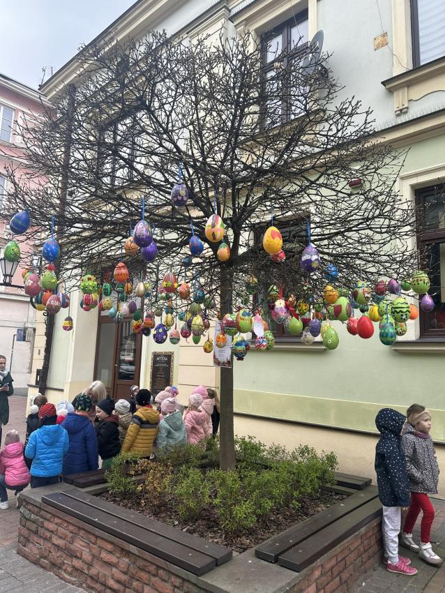 Przedszkolaki z grup V i VI własnoręcznie dekorowały styropianowe pisanki, którymi wystroiły drzewka rosnące przy ulicy Wałowej w Tarnowie. Do udziału w corocznym, przedświątecznym wydarzeniu, które stało się wizytówką Tarnowa, zaproszone zostały dzieci ze wszystkich tarnowskich przedszkoli oraz uczniowie klas pierwszych, drugich i trzecich szkół podstawowych.