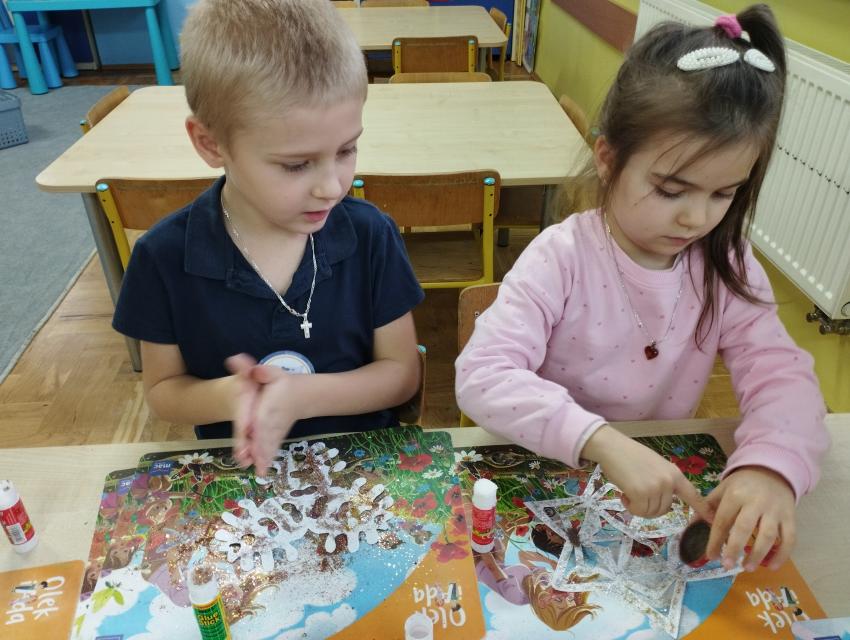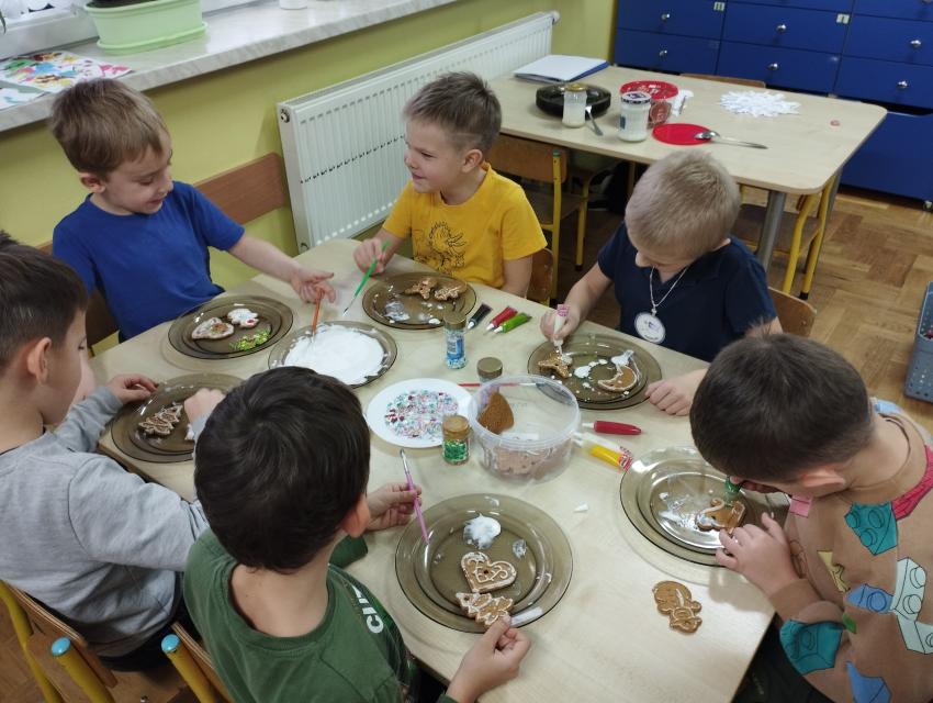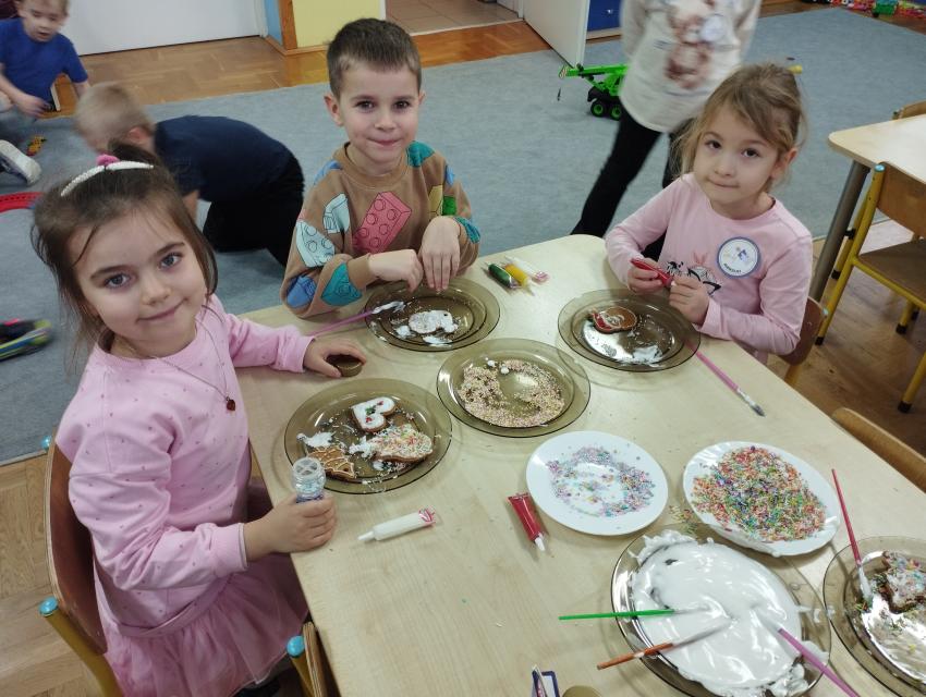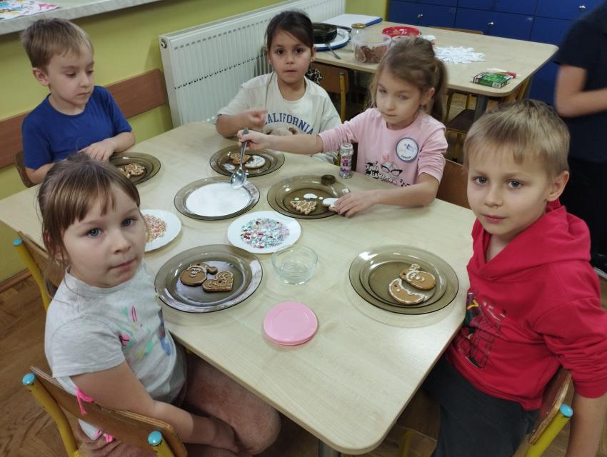 Przyszedł grudzień a wraz z nim przygotowania na spotkanie ze Świętym Mikołajem ,który już niebawem do nas przyjedzie. Na tę okazję dzieci przygotowały piękne śnieżynki. Nie zabrakło również dekorowania pierniczków.