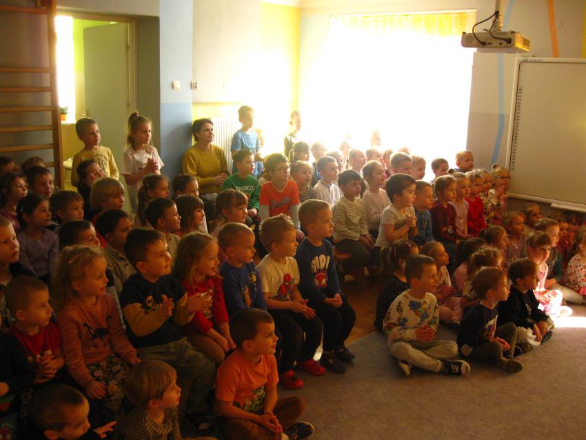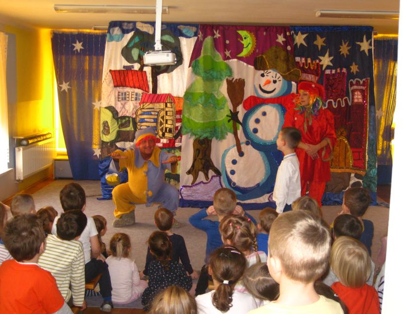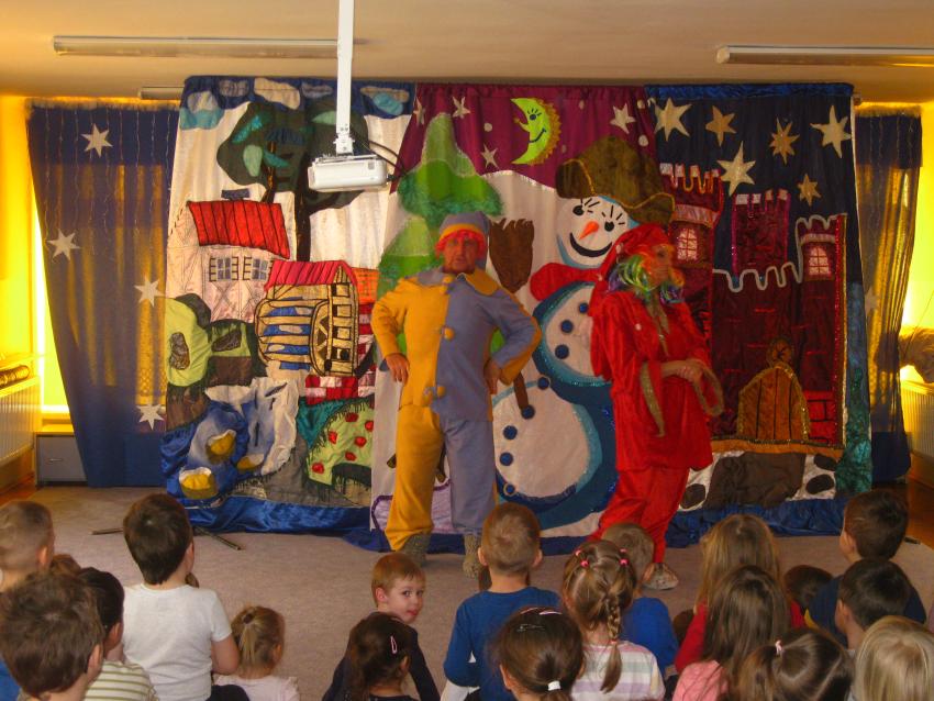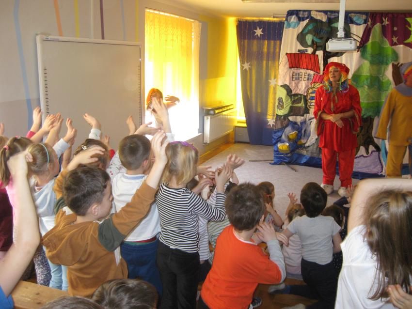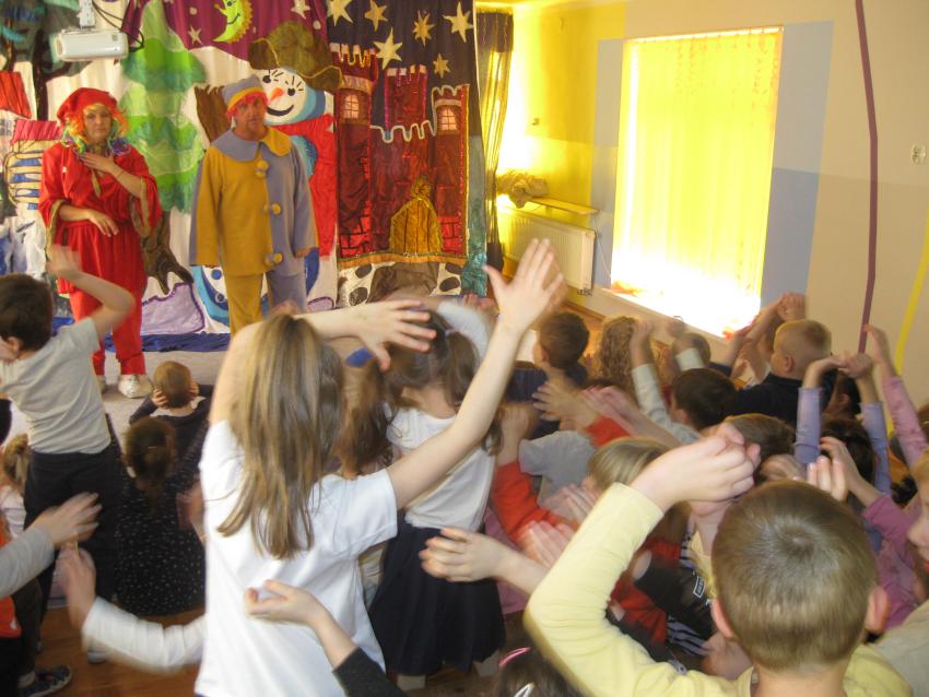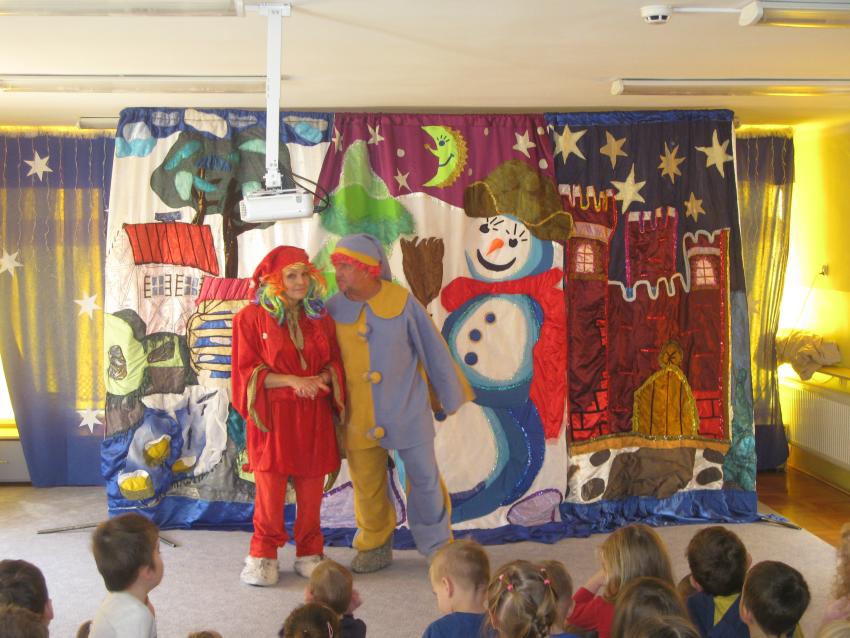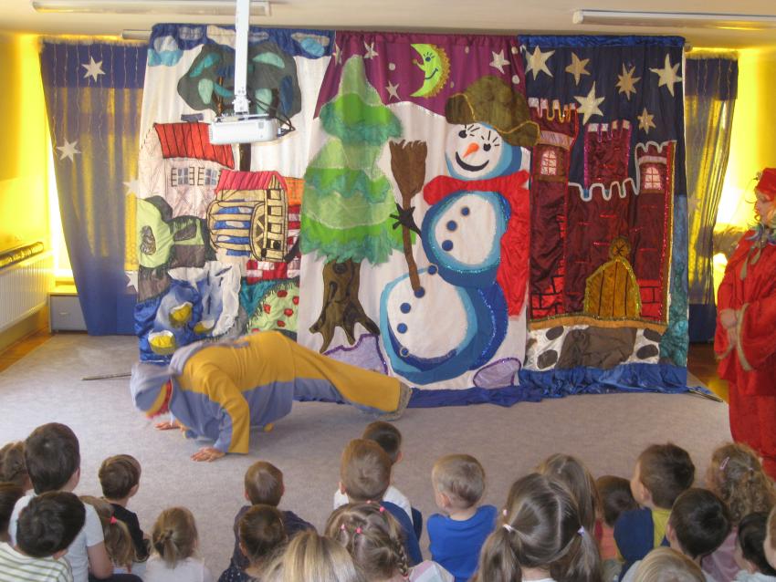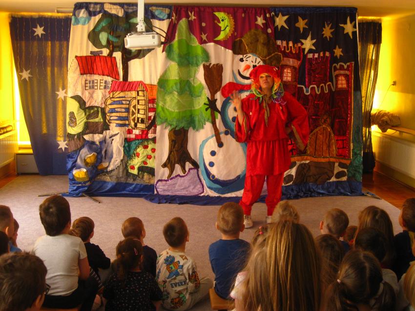 12 lutego w naszym przedszkolu oglądaliśmy spektakl inscenizowany przez aktorów teatru CANON-PRZYGODY KRASNALA PĄCZKA.Główny bohater był wielkim łakomczuchem,który uwielbiał zjadać wszelkiego rodzaju słodycze. W niedługim czasie stał się gruby i bardzo leniwy.Na szczęście jego przyjaciółka Skromnisia i król Felek pomogli mu zerwać ze złą dietą. Pączek zaczął się zdrowo odżywiać i uprawiać gimnastykę.Bajkowa scenografia, barwne stroje i zabawne dialogi sprawiły, że dzieci z wielkim zainteresowaniem i uśmiechem śledziły historię krasnala.