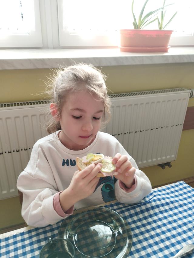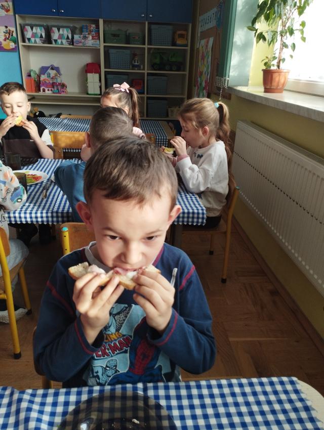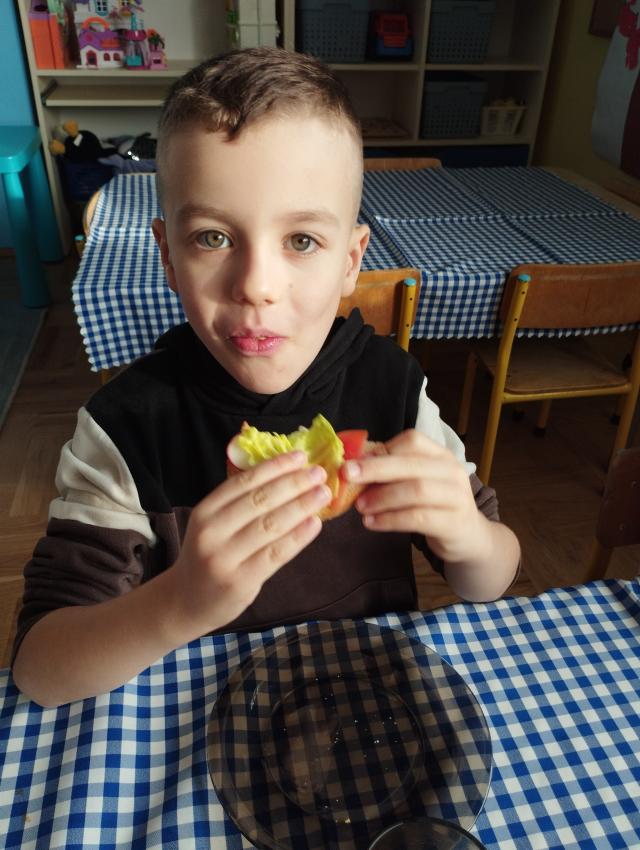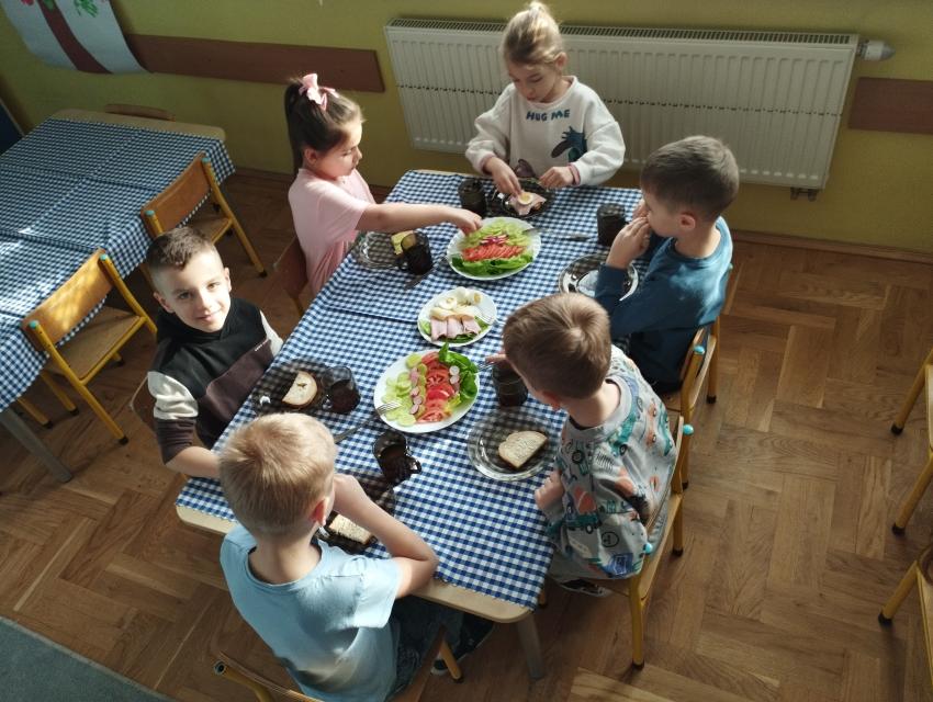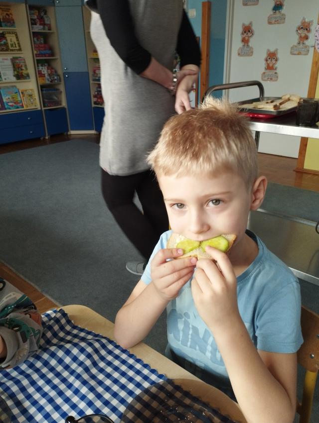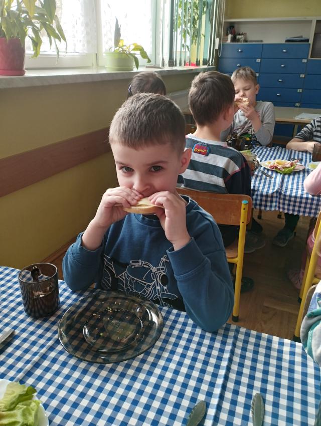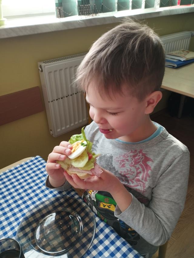 Przedszkolaki miały okazję po raz kolejny samodzielnie przygotować śniadanie. Dzieci same zdecydowały o tym, co znajdzie się na ich kanapkach. Samodzielnie przygotowane kolorowe kanapki,pełne witamin, smakowały najlepiej ! Śniadanie było smaczne i wesołe. :)