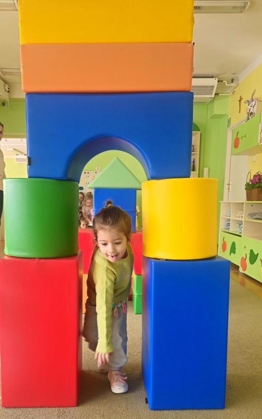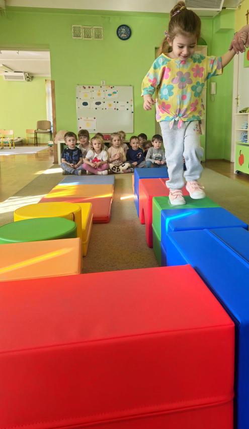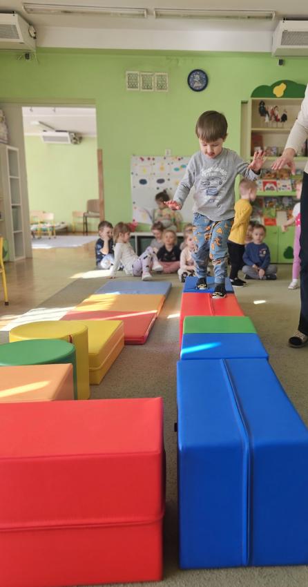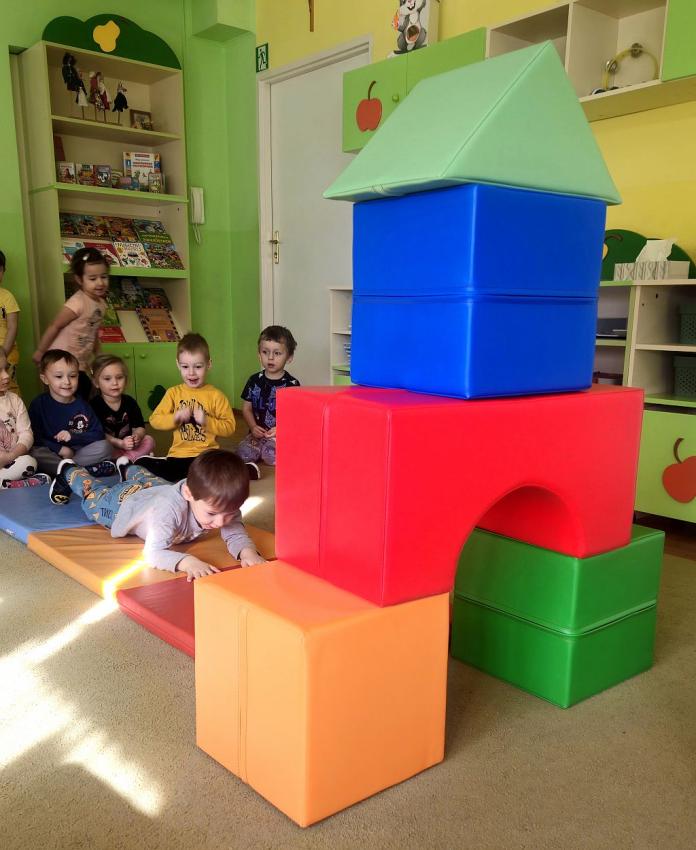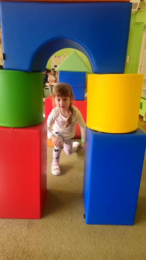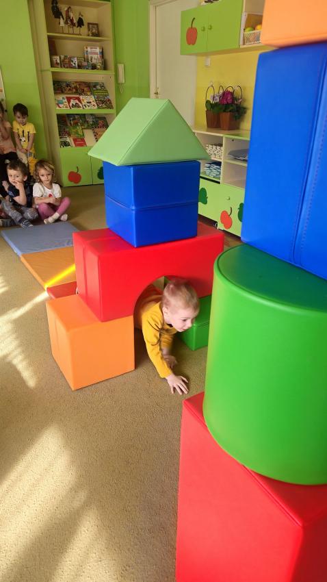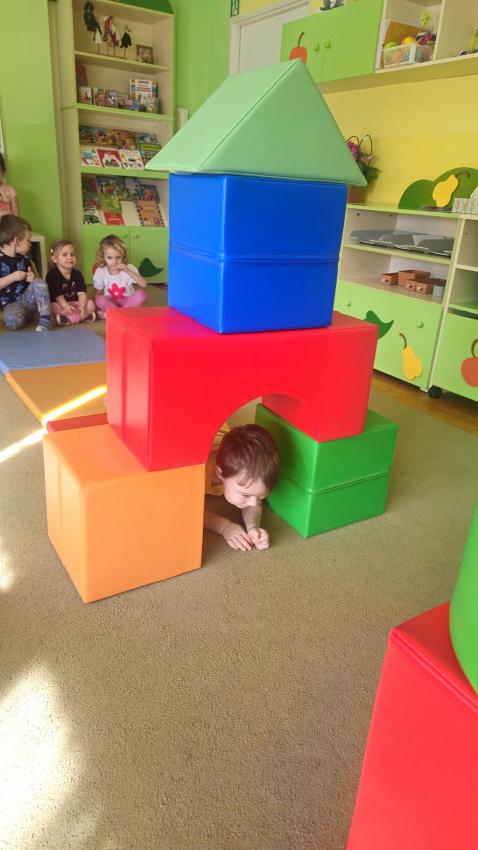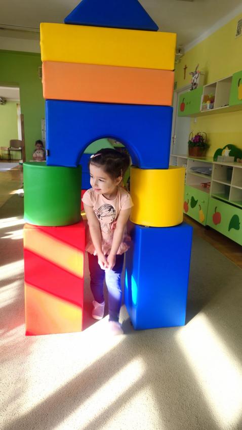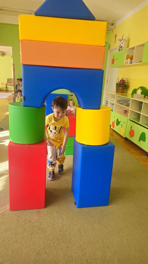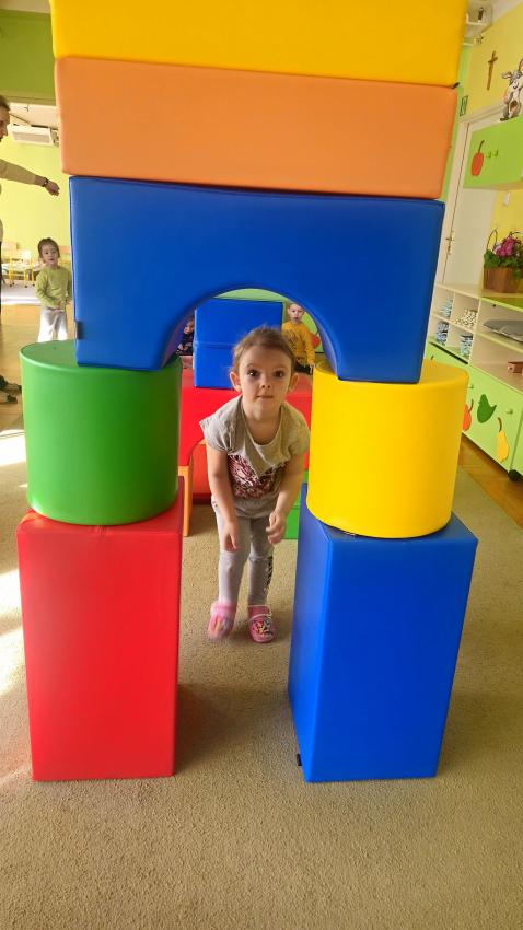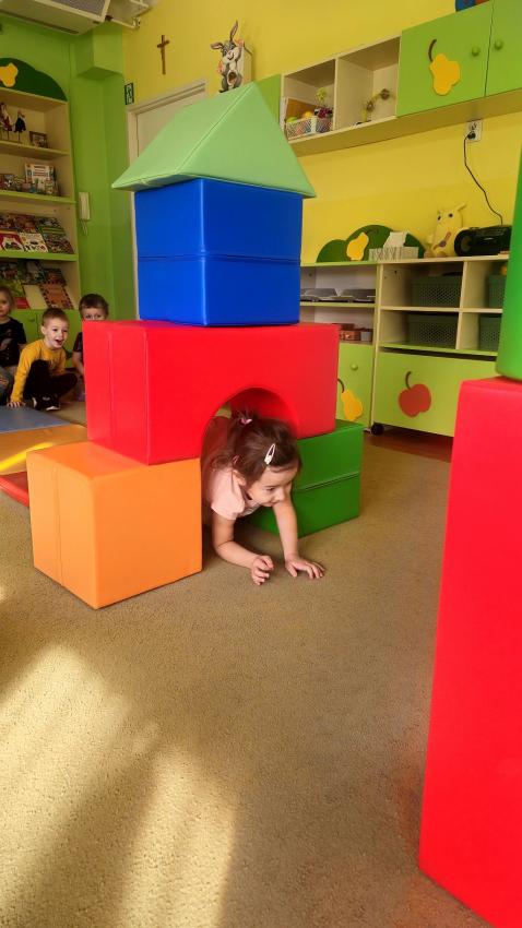 "Jeżyki" bardzo lubią zabawy konstrukcyjne.Z ogromnych klocków piankowych zbudowaliśmy zamek,który wprowadzał nas do królestwa bajek.Droga do zamku nie była łatwa,ale wszystkim, z uśmiechem na twarzy udało się dotrzeć do bajkowego królestwa!