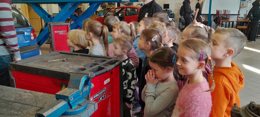 Wizyta dzieci przedszkolnych w warsztatach Technikum Mechaniczno – Elektrycznego przy ulicy Szujskiego była wyjątkową okazją do zapoznania się z fascynującym światem motoryzacji. W trakcie wizyty dzieci miały szansę poznać z bliska jak wyglądają prawdziwe warsztaty, w których odbywa się nauka naprawy i konserwacji pojazdów. Pod okiem instruktorów i nauczycieli, dzieci mogły zobaczyć, jak mechanicy zajmują się samochodami, poznawały różne narzędzia i urządzenia, a także dowiedziały się, jak ważna jest odpowiednia dbałość o pojazdy. Oprócz tego, dzieci brały udział w zabawnych i edukacyjnych zadaniach, które sprawiły, że wizyta była nie tylko pouczająca, ale także pełna radości i emocji.