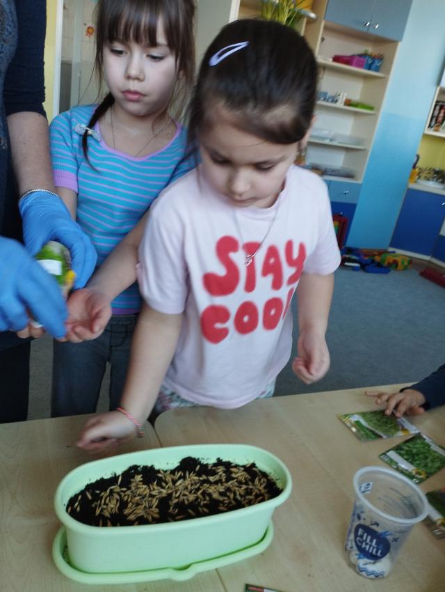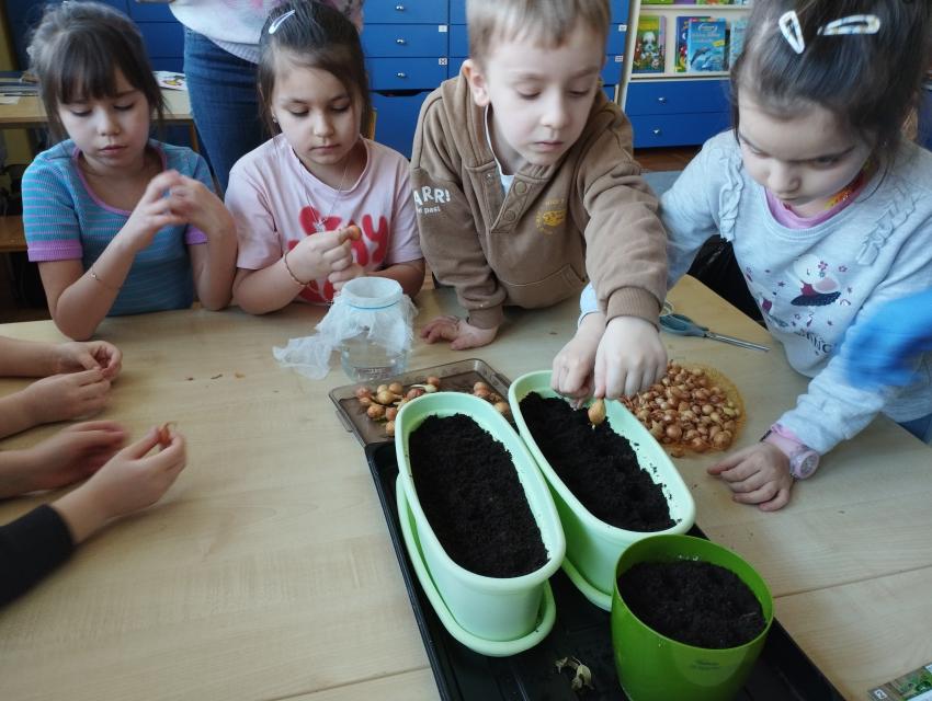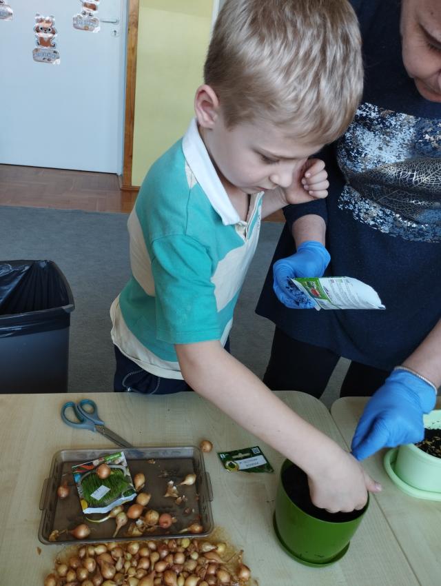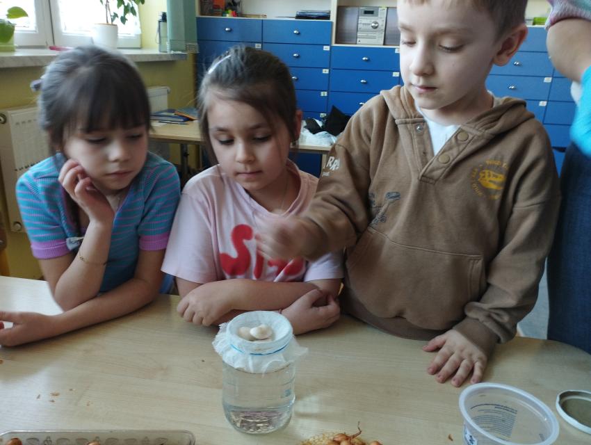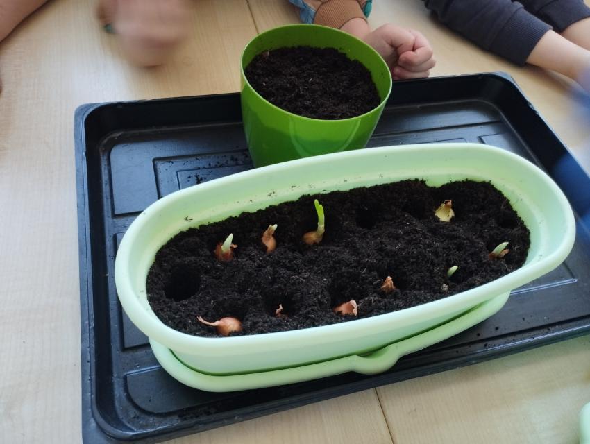 Wiosna zbliża się dużymi krokami, dlatego dzieci z grupy V założyły w sali hodowlę szczypiorku i rzeżuchy. Przedszkolaki opiekowały sie hodowlą każdego dnia:z cebulek wyrósł piekny szczypior,a z nasion dorodna rzeżucha.Wychodowane pyszności "Liski"skonsumowały jako dodatek do kanapek.