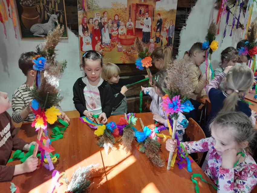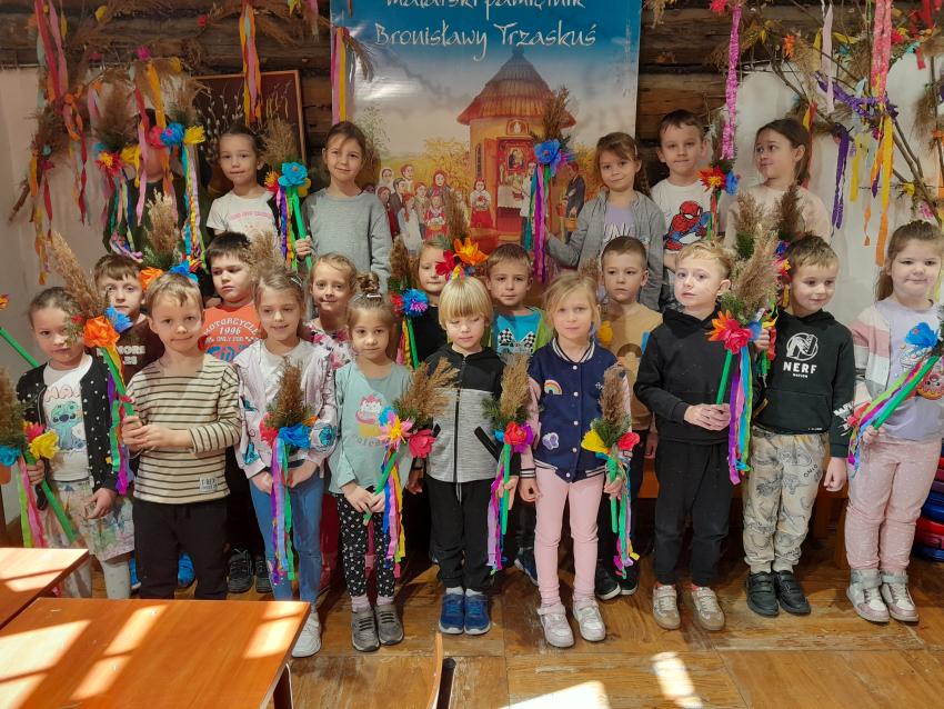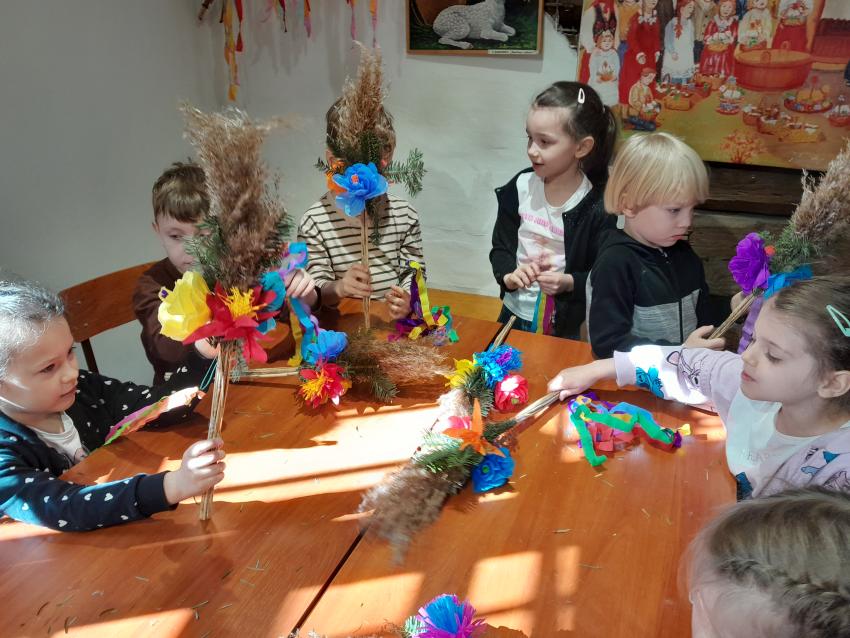 4 kwietnia dzieci z grupy „Skrzaty” uczestniczyły w warsztatach wielkanocnych, które odbyły się w Regionalnym Muzeum Etnograficznym w Tarnowie. W trakcie zajęć przedszkolaki poznały tradycje związane z obchodami Świąt Wielkanocnych a także mogły spróbować swoich sił w tworzeniu palm wielkanocnych. Każde dziecko stworzyło własną kolorową palmę, którą zabrało