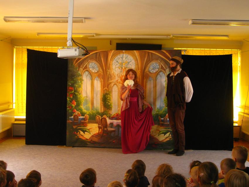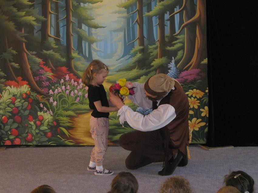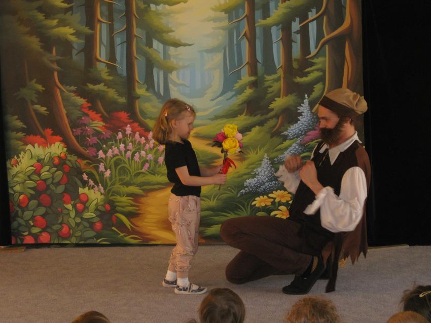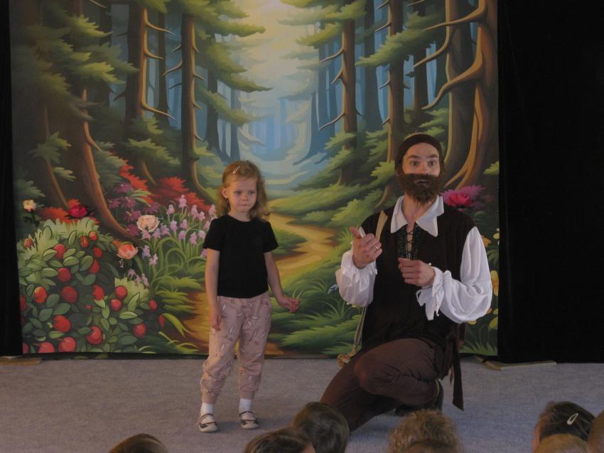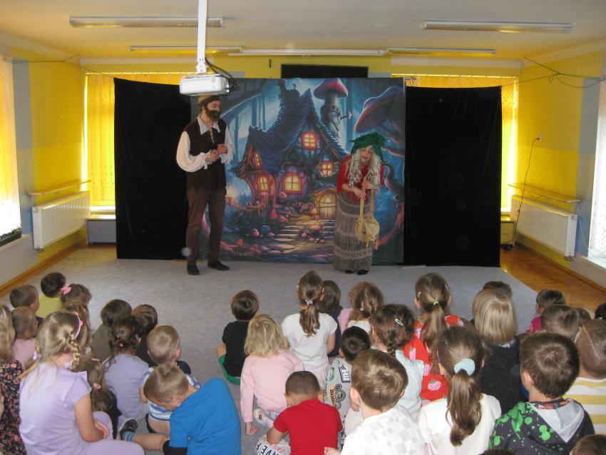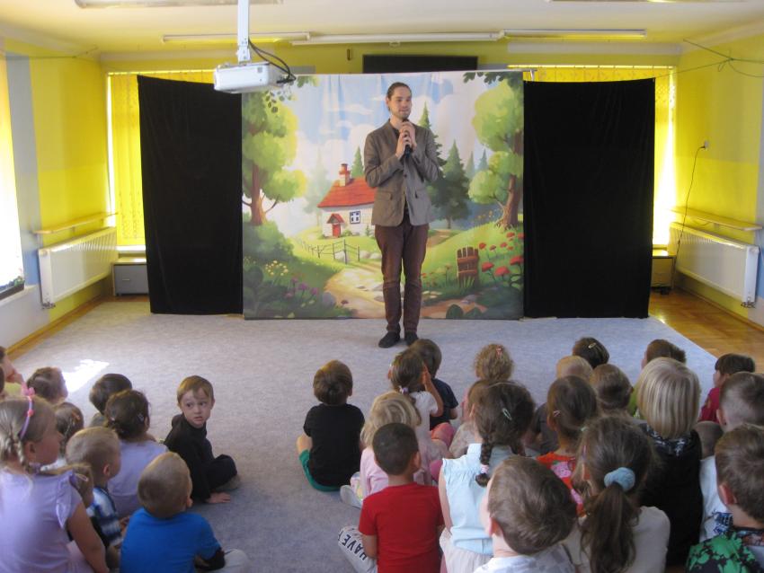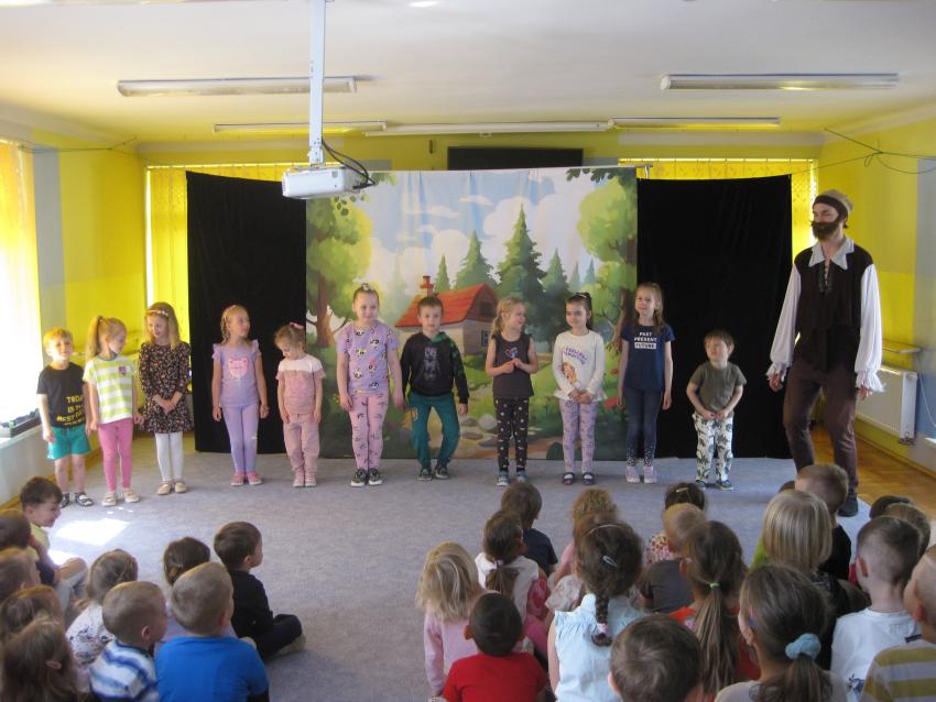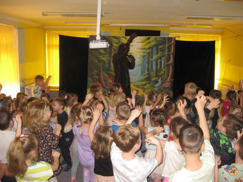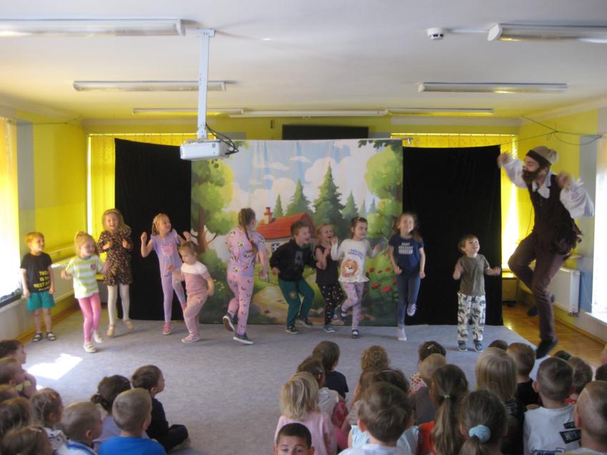 23 kwietnia 2025r dzieci obejrzały przedstawienie teatralne pt. "Trzy życzenia" w wykonaniu artystów z Teatru "Kokon".Dzieci dowiedziały się, że warto mieć dobre serce i dzielić się tym co mamy. Przedszkolaki miały okazję brać czynny udział w przedstawieniu i stać się na chwilę prawdziwymi aktorami. Teatrzyk wzbudził ogromne zainteresowanie wśród dzieci, które z entuzjazmem i ciekawością oglądały występ artystów, nagradzając ich gromkimi brawami.