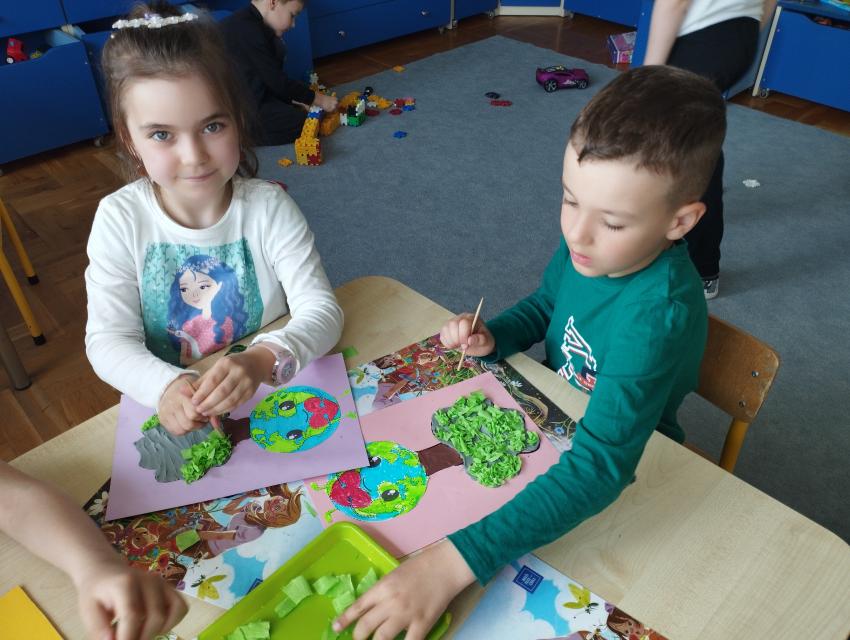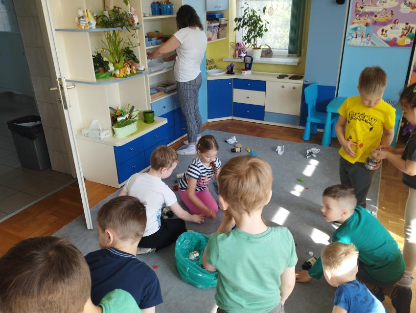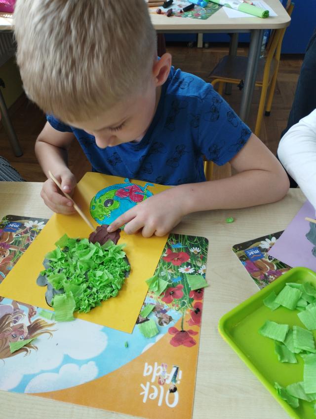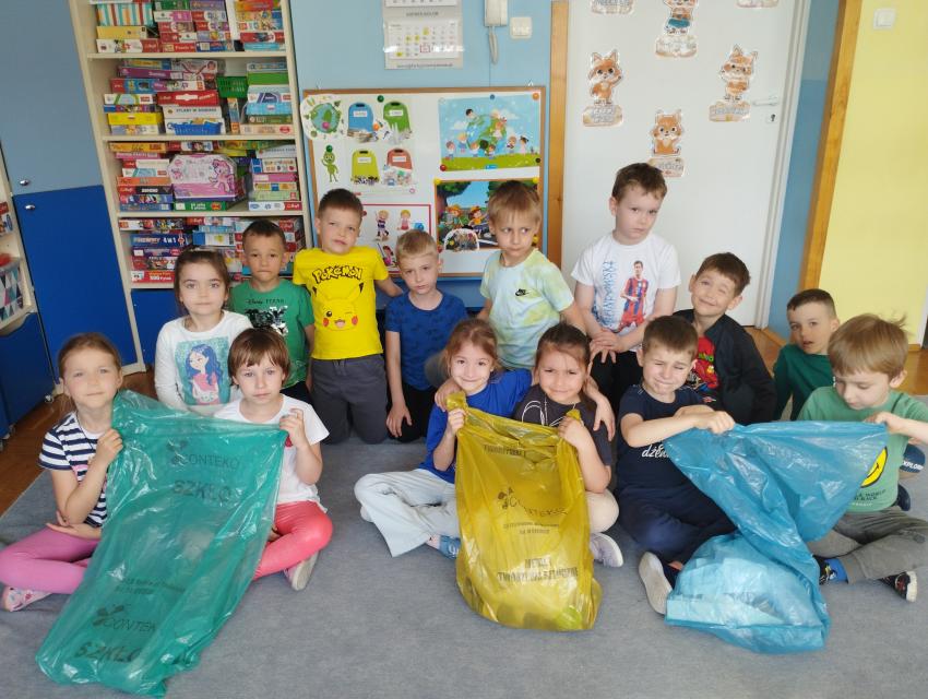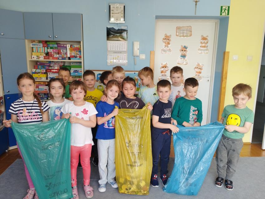 Realizując temat " Jestem małym ekologiem " grupa V uczyła się jakie są potrzeby naszej ziemi oraz jak chronić przyrodę przed zanieczyszczeniami. "Liski"  wykonały piękne prace plastyczne oraz segregowały śmieci do odpowiednich worków.