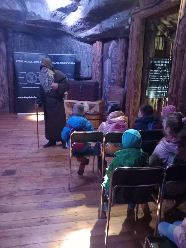 W dniu 16.05 2025 roku grupa „Skrzaty” uczestniczyła w wycieczce autokarowej do Kopalni soli w Bochni. Przedszkolaki spotkały się ze Skarbnikiem - Duchem bocheńskiej kopalni, który opowiedział skąd się wzięła sól na ziemiach polskich oraz podarował każdemu woreczek soli.Dzieci odkrywały magiczny świat kopalni. Podziwiały solne komory z podziemną ekspozycją multimedialną, która przeniosła przedszkolaków w fascynującą podróż przez historię kopalni. Rozpoczęliśmy w średniowieczu, by dotrzeć aż do współczesności, spotykając polskich królów, żupników genueńskich oraz ducha Cystersa. Część trasy pokonaliśmy górniczą kolejką. Zwiedzając kopalnię spędziliśmy również czas w Komorze Ważyn – największej z bocheńskich komór, gdzie znajduje się boisko sportowe oraz plac zabaw dla dzieci. Wróciliśmy bezpiecznie do przedszkola zmęczeni, ale bardzo zadowoleni.