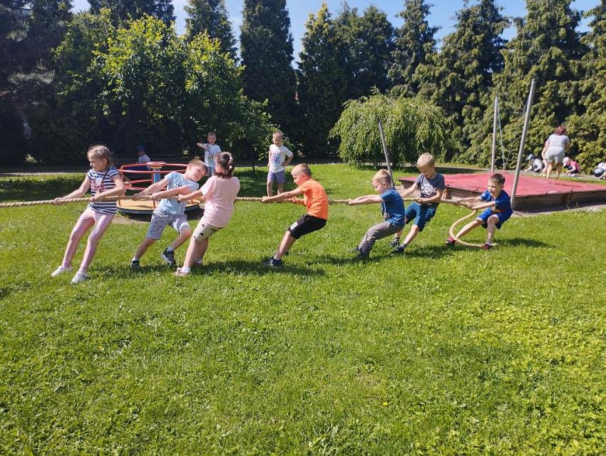 Z okazji Dnia Dziecka w naszym w ogrodzie przedszkolnym zorganizowano różnego rodzaju zabawy dla wszystkich przedszkolaków.Przy dźwiękach wesołej muzyki maluszki i starszaki brały udział w zawodach sportowych, zabawach plastycznych,zręcznościowych i tanecznych.W tym dniu wszystkim dopisywał świetny humor!