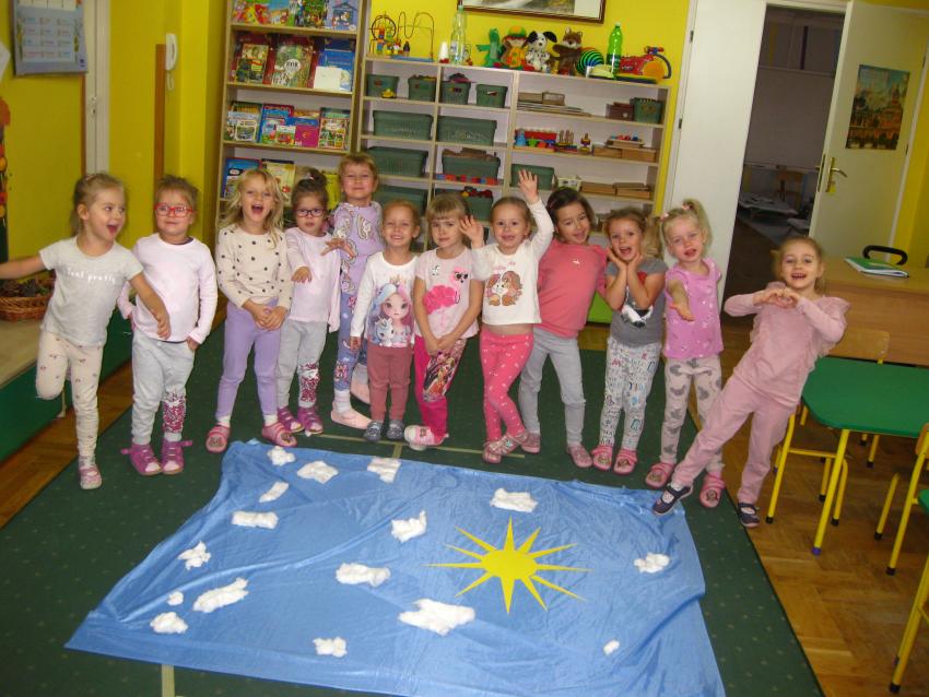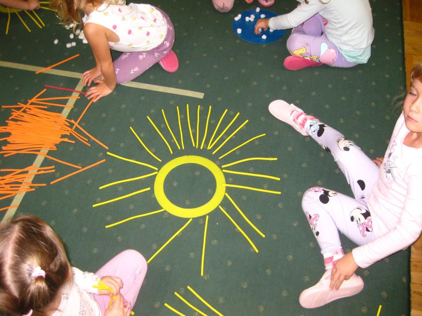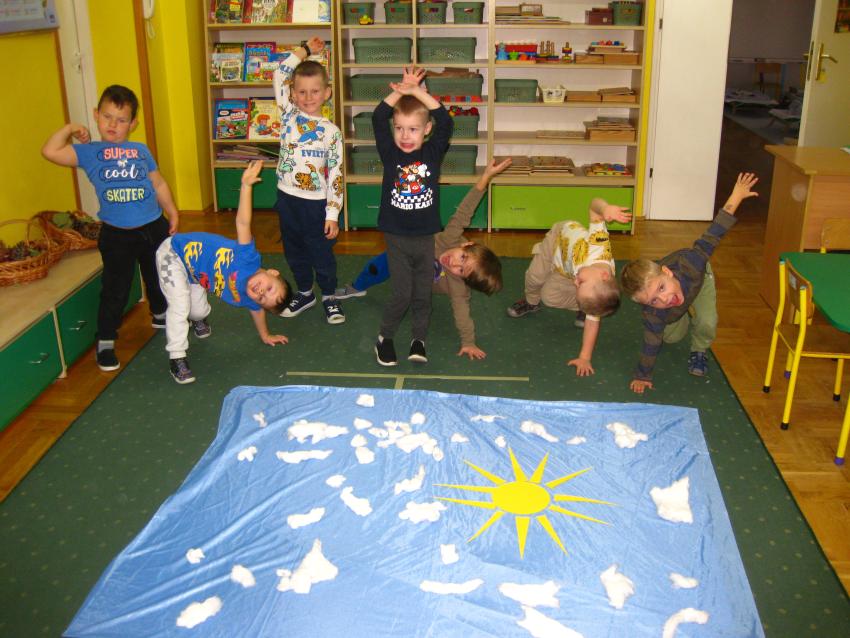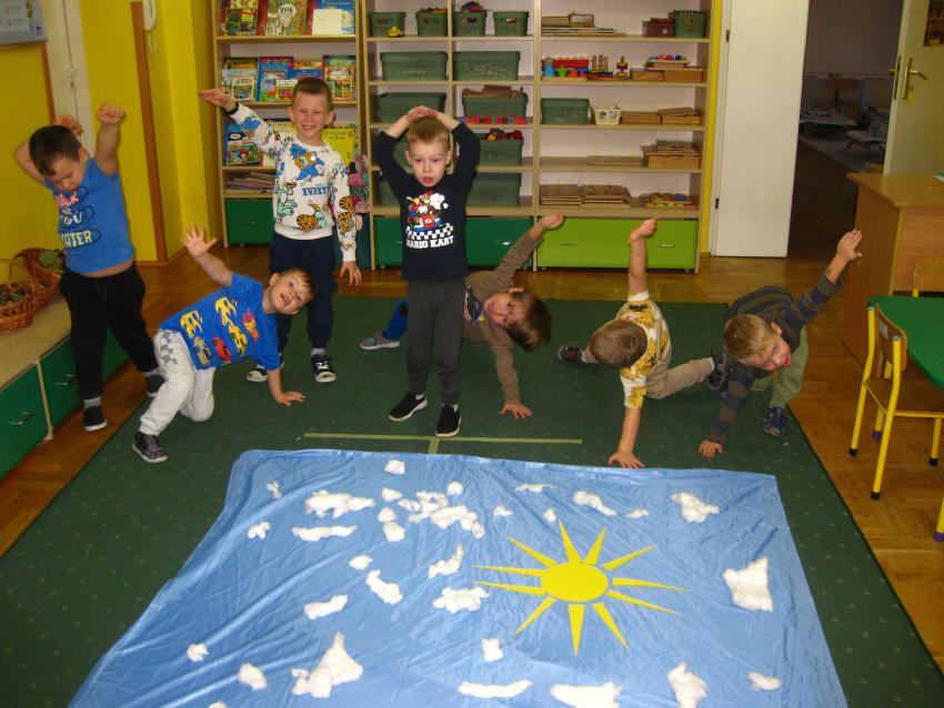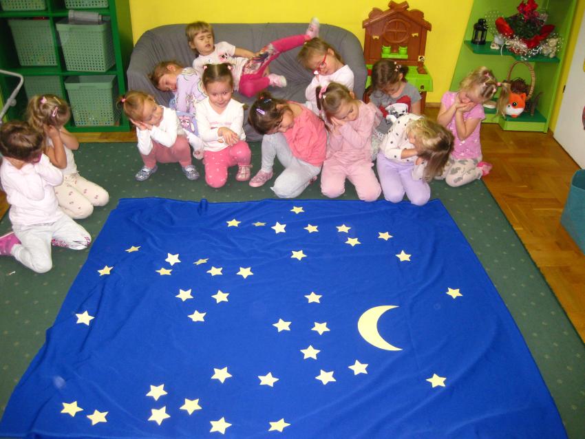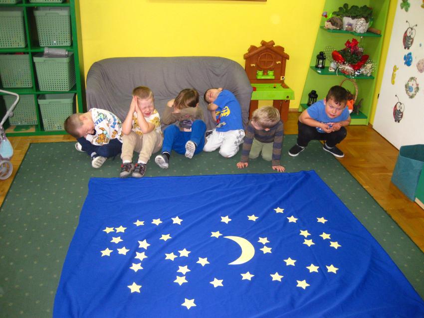 Grupa "Jeżyków"przypominała sobie jak wyglądają symbole dnia i nocy,dowiadywała się co możemy robić w dzień , a co w nocy ,a także poznawała sposoby odmierzania czasu.