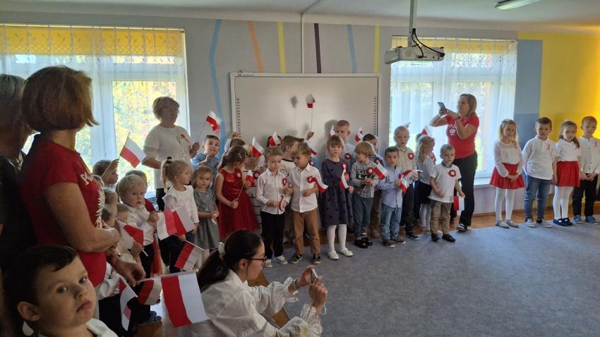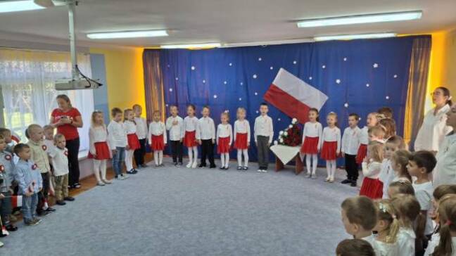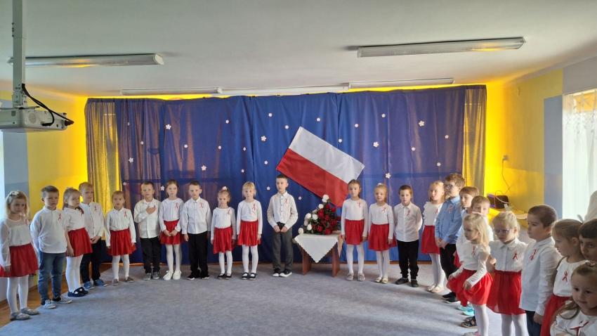 Z okazji Święta Niepodległości Polski w naszym przedszkolu odbyła się uroczysta akademia.Wszystkie przedszkolaki zaśpiewały hymn Polski ,a starszaki zaprezentowały piękne pieśni patriotyczne.Dzięki udziałowi w tego typu uroczystościach dzieci od najmłodszych lat uczą się patriotyzmu i przywiązania do kraju ojczystego, jego kultury i tradycji.