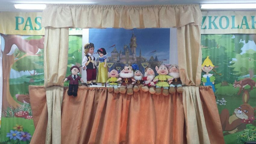 9 listopada 2016 roku do naszego przedszkola przyjechali aktorzy lalkowi z przedstawieniem pt."Królewna Śnieżka i siedmiu krasnoludków".