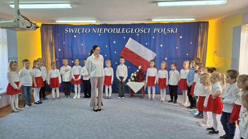Z okazji Święta Niepodległości Polski w naszym przedszkolu odbyła się uroczysta akademia.Wszystkie przedszkolaki zaśpiewały hymn Polski ,a starszaki zaprezentowały piękne pieśni patriotyczne.Dzięki udziałowi w tego typu uroczystościach dzieci od najmłodszych lat uczą się patriotyzmu i przywiązania do kraju ojczystego, jego kultury i tradycji.