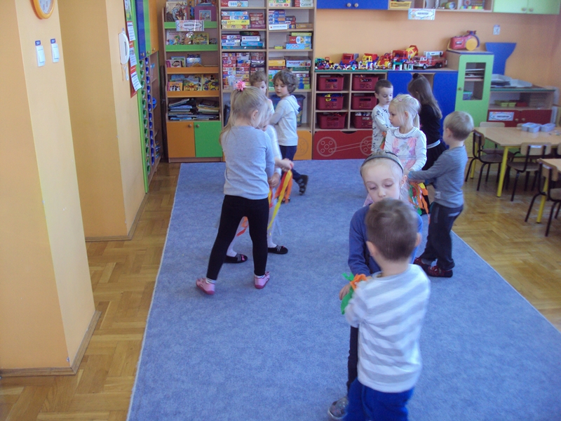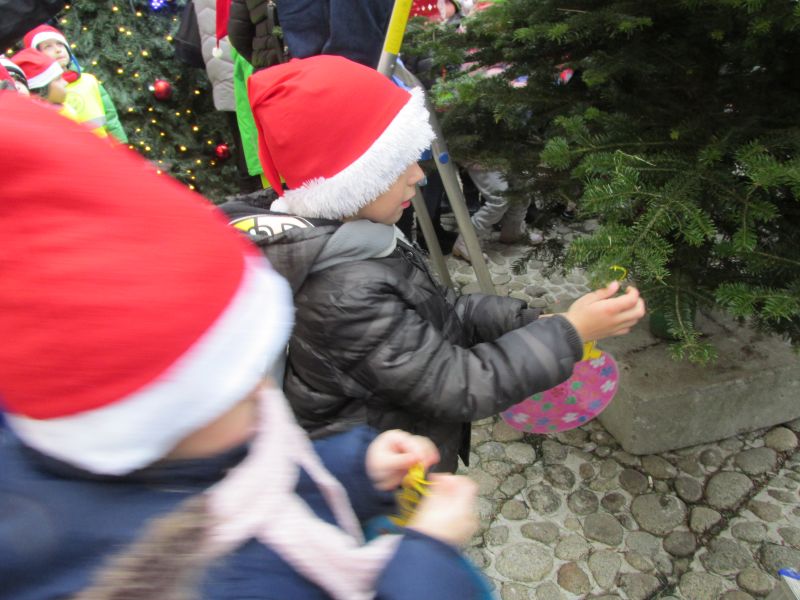 W dniu 7 grudnia 2018 r dzieci z grupy V uczestniczyły w uroczystym ubieraniu choinek na tarnowskim rynku, wspólnie z kolegami i koleżankami z tarnowskich przedszkoli. Radosną atmosferę wprowadzała obecność św. Mikołaja, aniołków i rozbrykanego diabełka. Gościem honorowym był Pan Prezydent miasta. Każde dziecko zawiesiło na choince wykonaną przez siebie kolorową bombkę. Choinki prezentowały się okazale. Było wspólne śpiewanie piosenek, tańce i świetna zabawa. Przedszkolaki na zakończenie otrzymały słodycze. W radosnych nastrojach wróciły do przedszkola, gdzie kolorowymi ozdobami przystroiły choinkę w swojej sali.