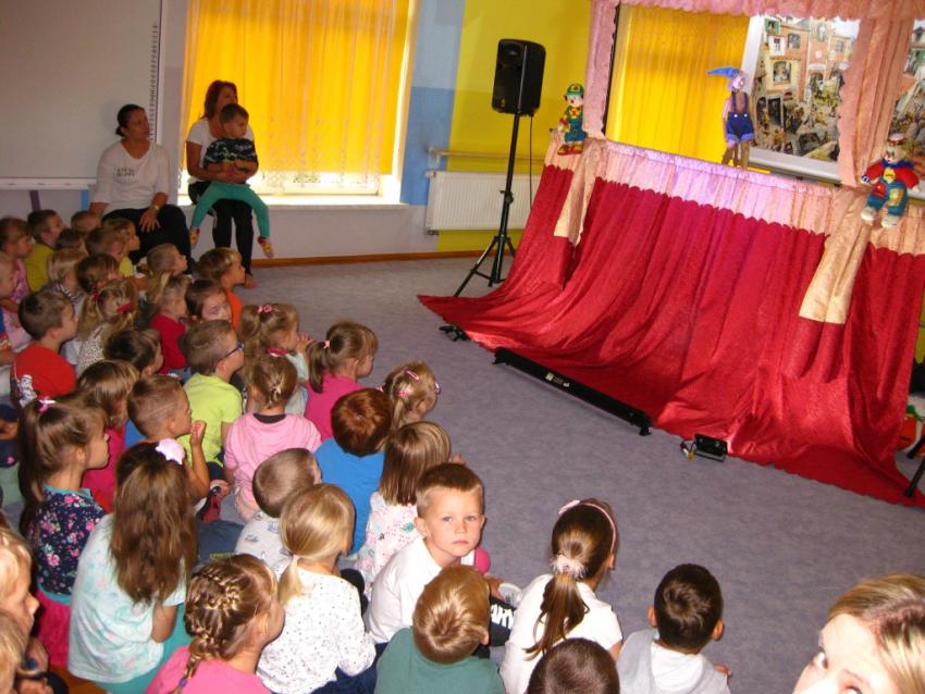 W miesiącu wrześniu do naszego przedszkola przyjechali aktorzy teatru lalek z przedstawieniem pt.-PINOKIO.Marzeniem drewnianego pajaca było zostać prawdziwym chłopcem i chodzić do szkoły. Marzenie pajacyka się spełniło,ale zanim do tego doszło, miał mnóstwo przygód z wieloma przeszkodami,które musiał pokonać.