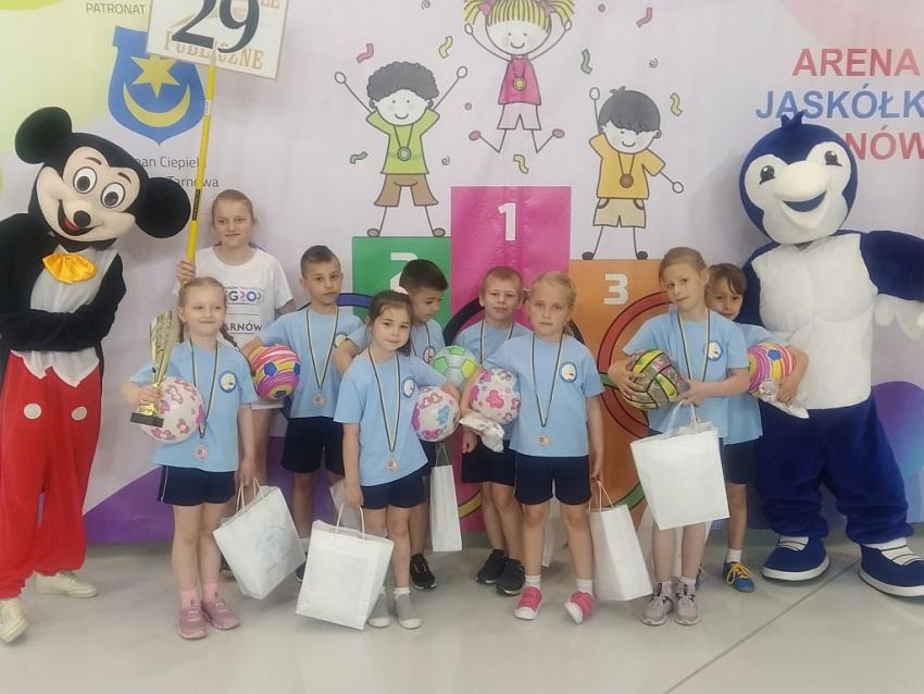 Dzieci z grupy V i VI reprezentowały nasze przedszkole w Tarnowskiej Olimpiadzie Przedszkolaków, która odbyła się na Hali Sportowej Jaskółka w Tarnowie Mościcach. Była super sportowa zabawa i rywalizacja fair play. Wszyscy otrzymali medale i nagrody - oczywiście za zajęcie pierwszego miejsca. Do przedszkola przywieźliśmy puchar!!!
