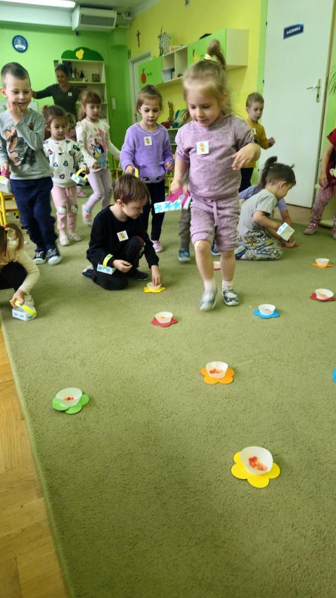 Przedszkolaki z grupy Jeżyków poprzez zabawę zapoznały się z życiem pszczół:gdzie mieszkają, jak wygląda ich dzień w ulu oraz w jaki sposób pszczółki produkują miód. Na koniec wszystkie maluszki uczestniczyły w degustacji prawdziwego, pszczelego miodu.