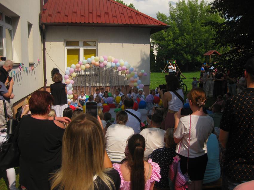 5 czerwca 2025r w naszym przedszkolu odbył się Piknik Rodzinny zorganizowany przez społeczność przedszkolną z okazji Dnia Rodziny.Impreza rozpoczęła się od występów artystycznych przedszkolaków dla swoich rodziców. Na piknik przybyły całe rodziny, na które czekało moc atrakcji: dmuchańce,brokatowe naklejki,fotobudka, konkursy, konkurencje sportowe i zabawy ruchowe pod okiem animatorów "Ani-Mani", którzy umilali czas dzieciom.Wielkim zainteresowaniem cieszyły się także pogawędki edukacyjne przeprowadzane przez panów Policjantów,którzy przybyli do nas na motorach,jak również panów Strażaków ,którzy przy prawdziwym wozie strażackim opowiadali do czego służy znajdujące się na nim wyposażenie. Na pikniku nie zabrakło również dobrego jedzenia: kiełbasek z grila, gofrów, pysznych ciast upieczonych przez rodziców,orzeźwiającej lemoniady i wzmacniającej kawy. Celem imprezy było zachęcanie rodziców do wspólnych zabaw ze swoimi dziećmi, a także dostarczenie uczestnikom pikniku wielu okazji do radości.Wszystkim uczestnikom pikniku dziękujemy za miło spędzony czas!