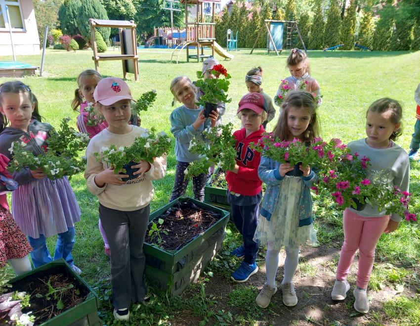 Grupa „Skrzaty” wzięła udział w upiększaniu naszego ogrodu przedszkolnego poprzez wysadzanie do skrzynek różnorodnych kwiatów, które otrzymaliśmy od rodziców naszej wychowanki Ani. Dzieci chętnie i zgodnie współpracowały tworząc kwiatowe kompozycje. Na zakończenie podlewały zasadzone kwiaty.