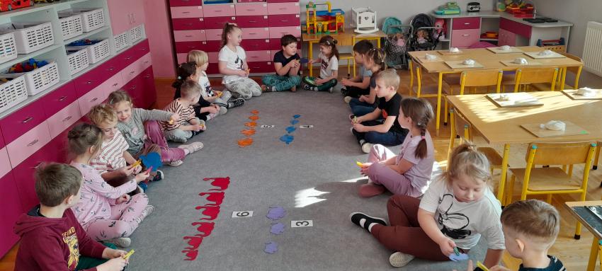 Dzień Dinozaura w grupie "Skrzaty" był pełen ekscytujących i edukacyjnych zabaw. Dzieci brały udział w segregacji dinozaurów, ucząc się o różnych gatunkach i ich cechach. Starszaki miały także okazję ćwiczyć liczenie, porównując liczbę dinozaurów w różnych grupach. Kolejną atrakcją było szukanie "kości dinozaurów" zakopanych w ziemi, co sprawiło dzieciom ogromną radość i pozwoliło na rozwijanie umiejętności poszukiwania. Na koniec, przedszkolaki odbijały skamieliny w masie solnej, tworząc własne "dinozaury". Dzień pełen kreatywnych aktywności pozwolił przedszkolakom na naukę przez zabawę, rozwijając ich wyobraźnię oraz zainteresowanie prehistorią.