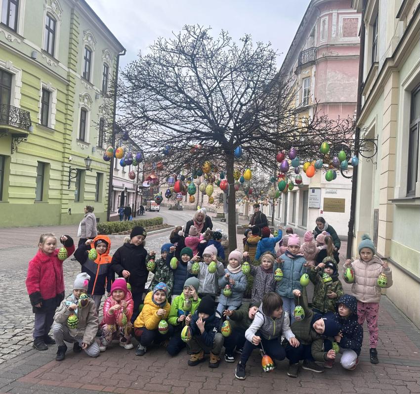 Przedszkolaki z grup V i VI własnoręcznie dekorowały styropianowe pisanki, którymi wystroiły drzewka rosnące przy ulicy Wałowej w Tarnowie. Do udziału w corocznym, przedświątecznym wydarzeniu, które stało się  wizytówką Tarnowa, zaproszone zostały dzieci ze wszystkich tarnowskich przedszkoli oraz uczniowie klas pierwszych, drugich i trzecich szkół podstawowych.