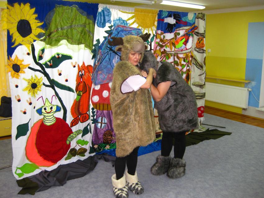 11 października nasze przedszkole odwiedzili aktorzy teatru Kanon z Krakowa z przedstawieniem -Jesień na polanie. Dzieci poznały między innymi wiewiórkę Basię, dzika Władeczka, łosiową Krystynę oraz koziołka Mietka. Podczas spotkania dzieci przypomniały sobie sposoby przygotowywania się zwierząt do zimy. Z zainteresowaniem słuchały opowieści i piosenek.