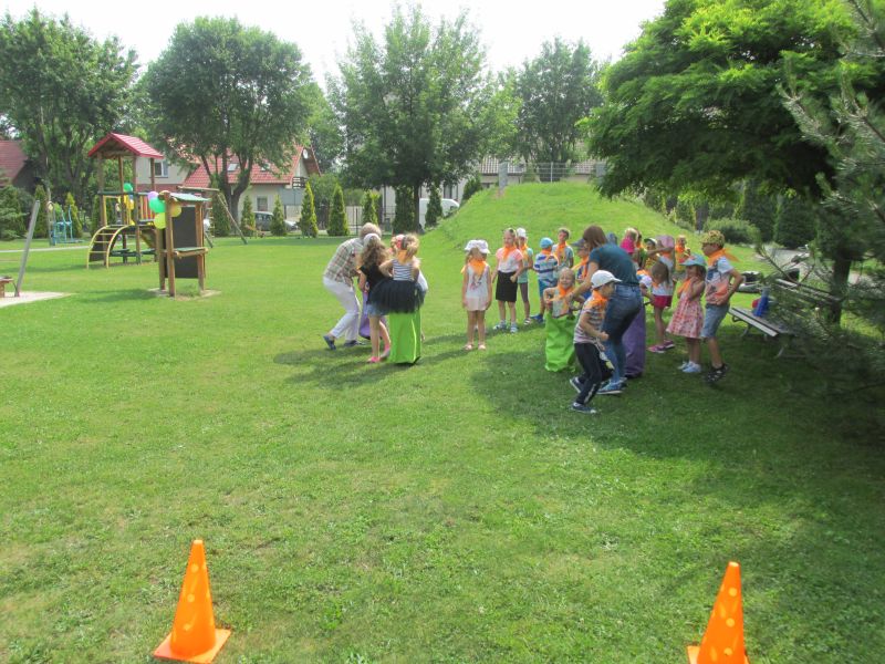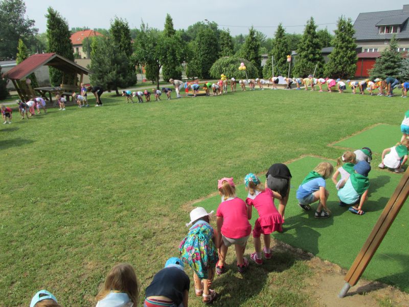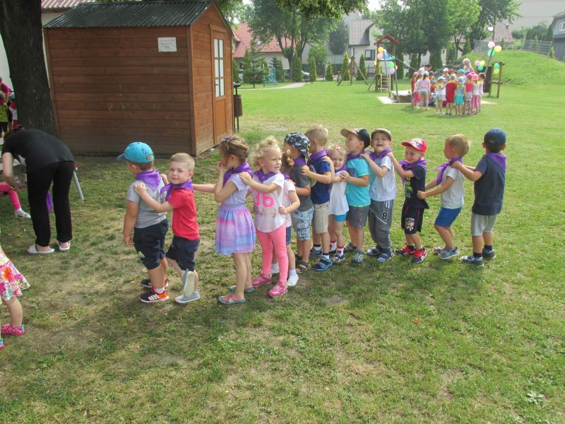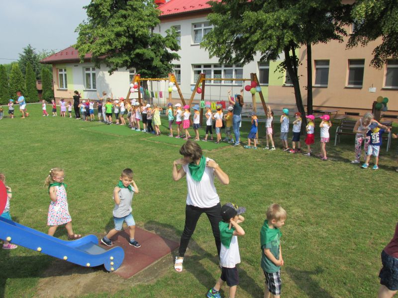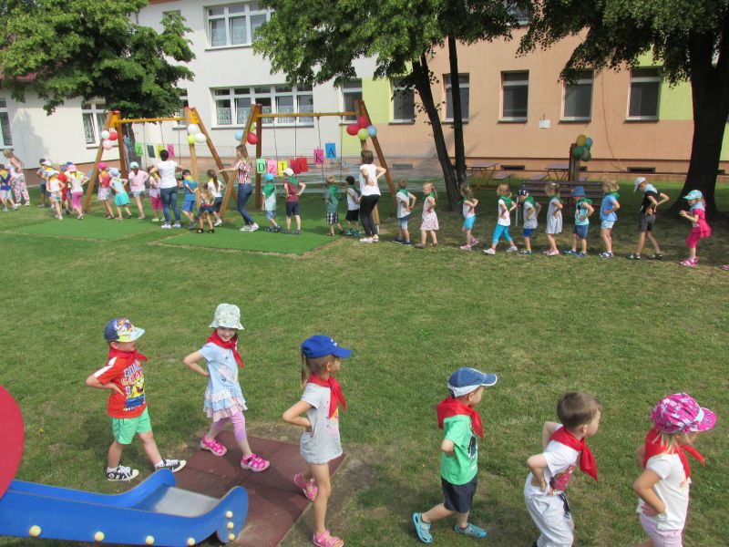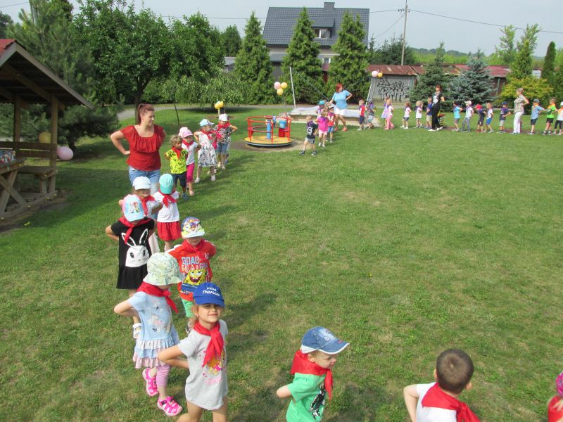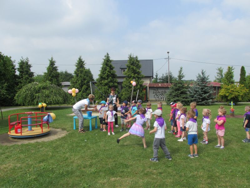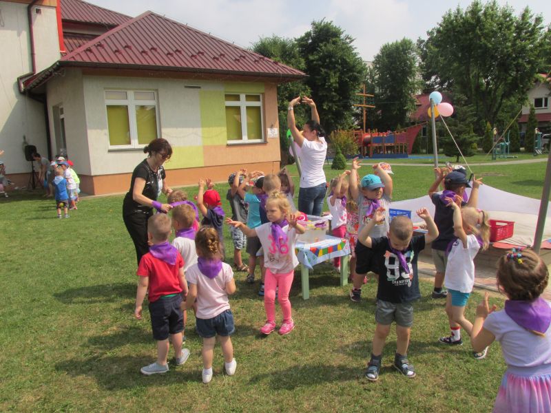 Dzień Dziecka to wspaniała okazja do super zabawy. I tak było tym razem. Przedszkolaki przywitały się wspólnym tańcem "Labada", następnie wyruszyły w podróż po stacjach, gdzie czekały je różne zabawy sportowe, tańce, quizy, doświadczenia, a także wesołe atrakcje. Zabawy cieszyły się dużym zainteresowaniem dzieci, zarówno starszych jak i młodszych. Na koniec dzieci otrzymały wspaniałe upominki z okazji Ich święta.