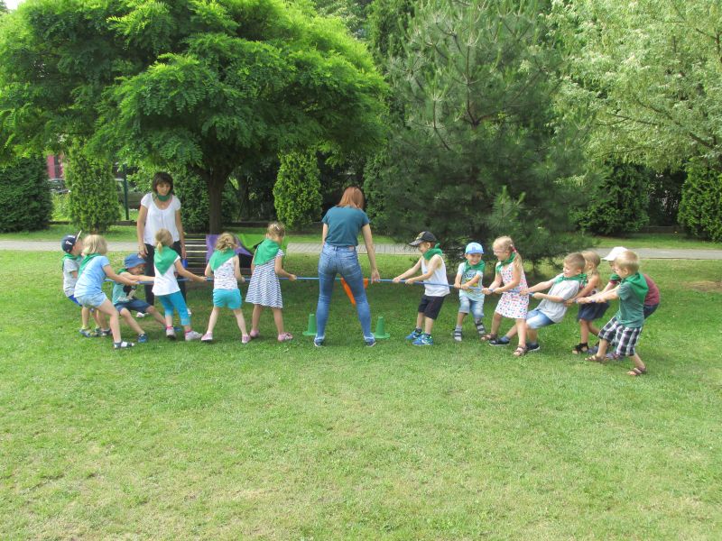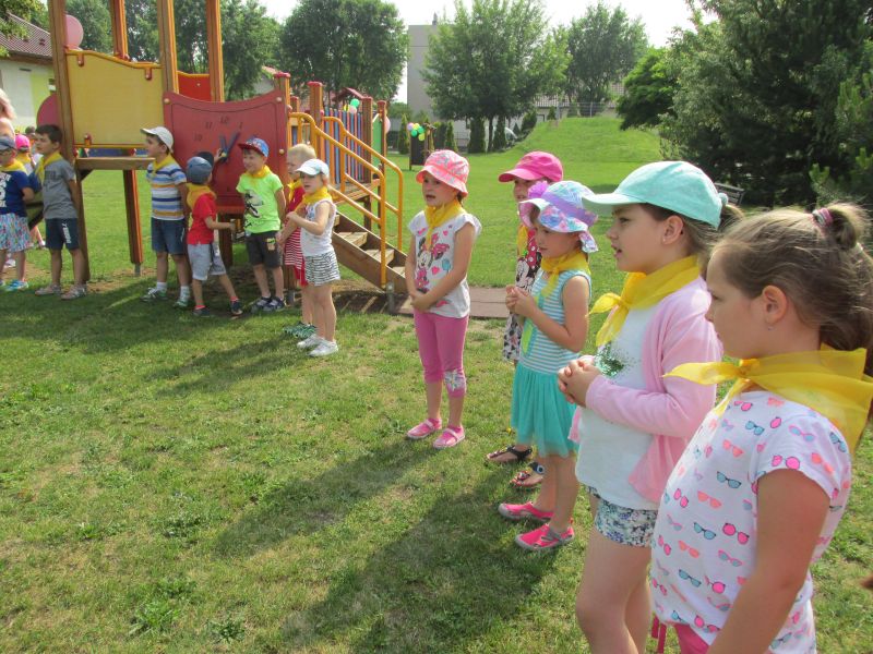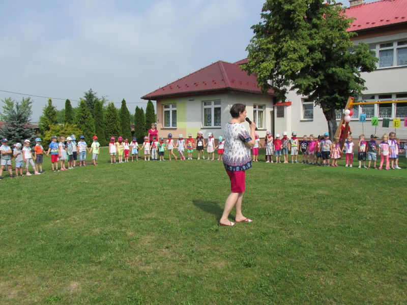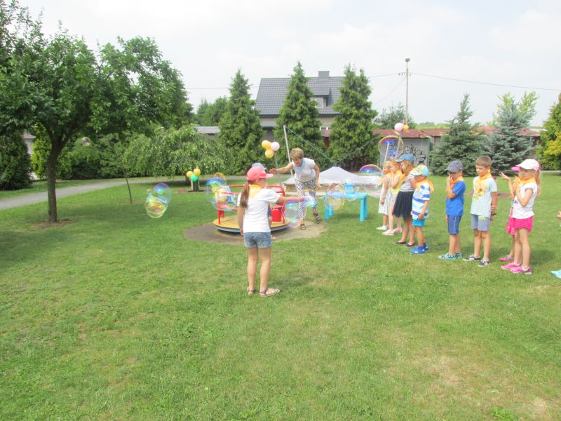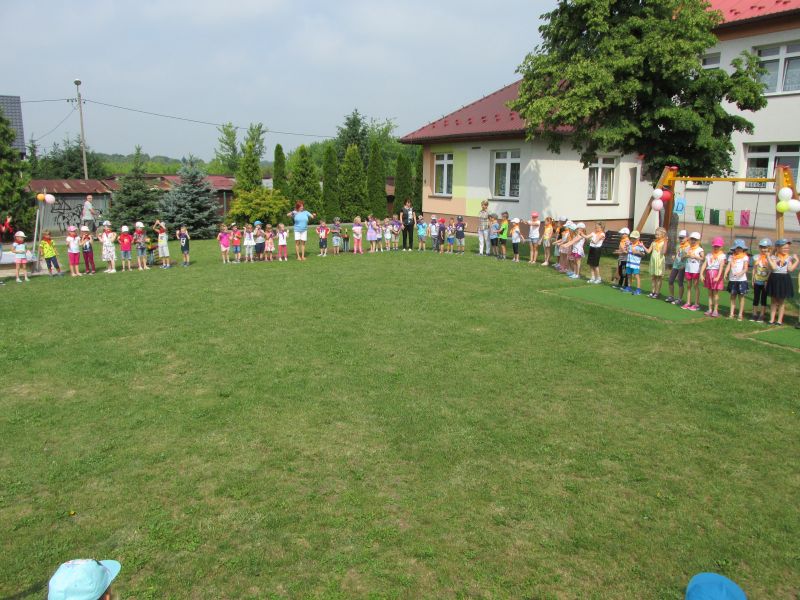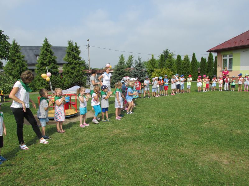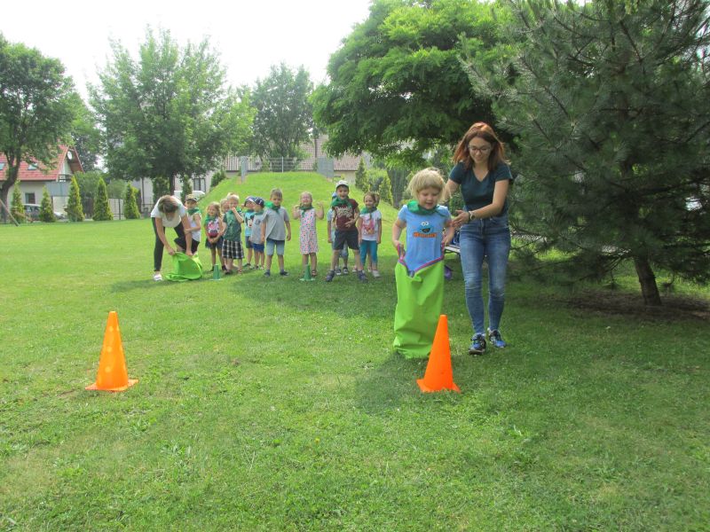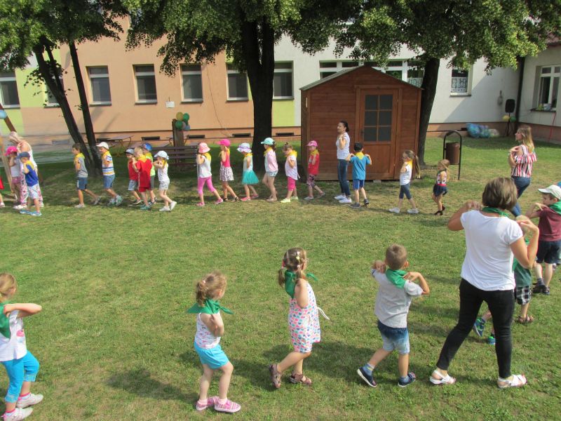 Dzień Dziecka to wspaniała okazja do super zabawy. I tak było tym razem. Przedszkolaki przywitały się wspólnym tańcem "Labada", następnie wyruszyły w podróż po stacjach, gdzie czekały je różne zabawy sportowe, tańce, quizy, doświadczenia, a także wesołe atrakcje. Zabawy cieszyły się dużym zainteresowaniem dzieci, zarówno starszych jak i młodszych. Na koniec dzieci otrzymały wspaniałe upominki z okazji Ich święta.