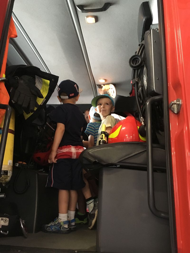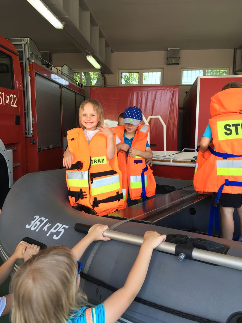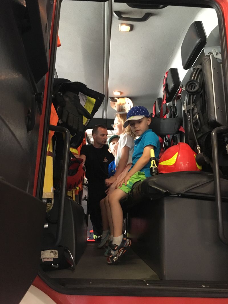do wozu strażackiego a ogromnym przeżyciem były bardzo głośne syreny, które włączyli Strażacy. Zwiedzanie remizy strażackiej
