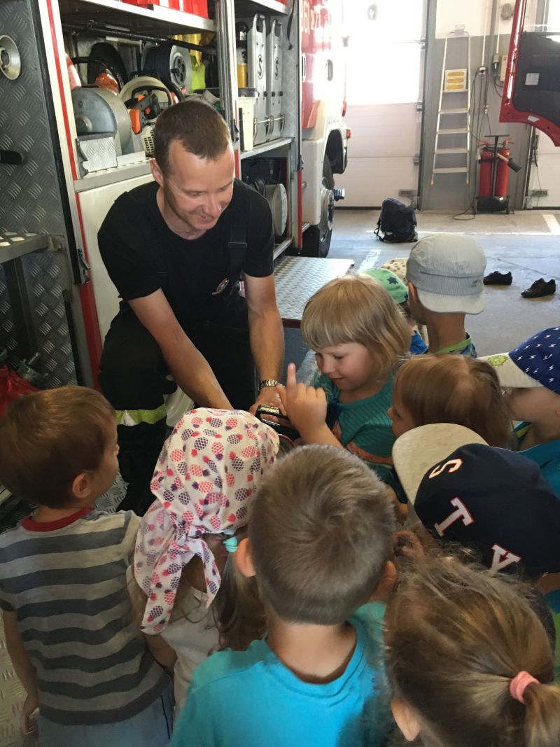 Panowie Strażacy, a tata jednego z przedszkolaków chętnie oprowadził i zapoznał naszych małych